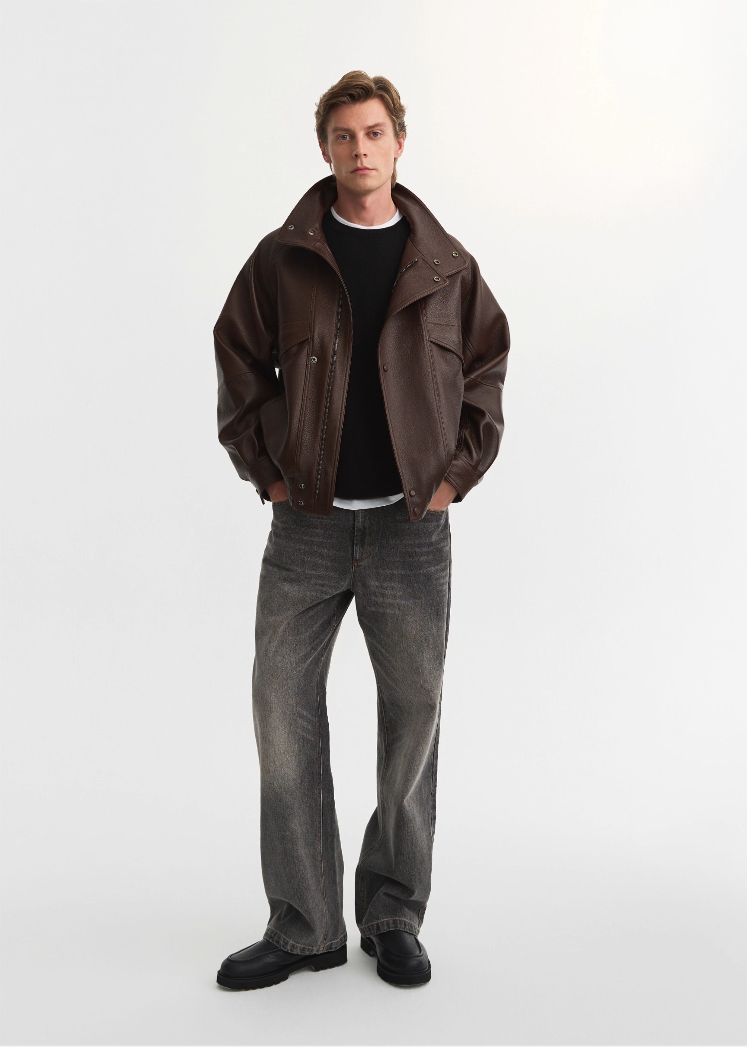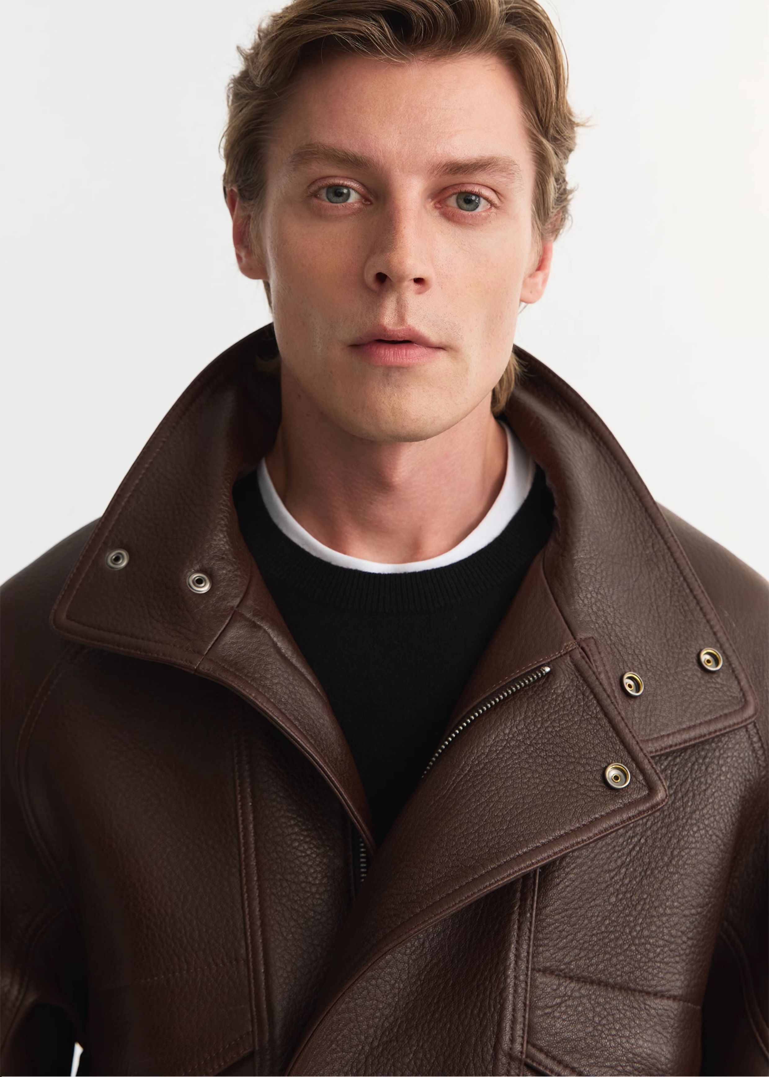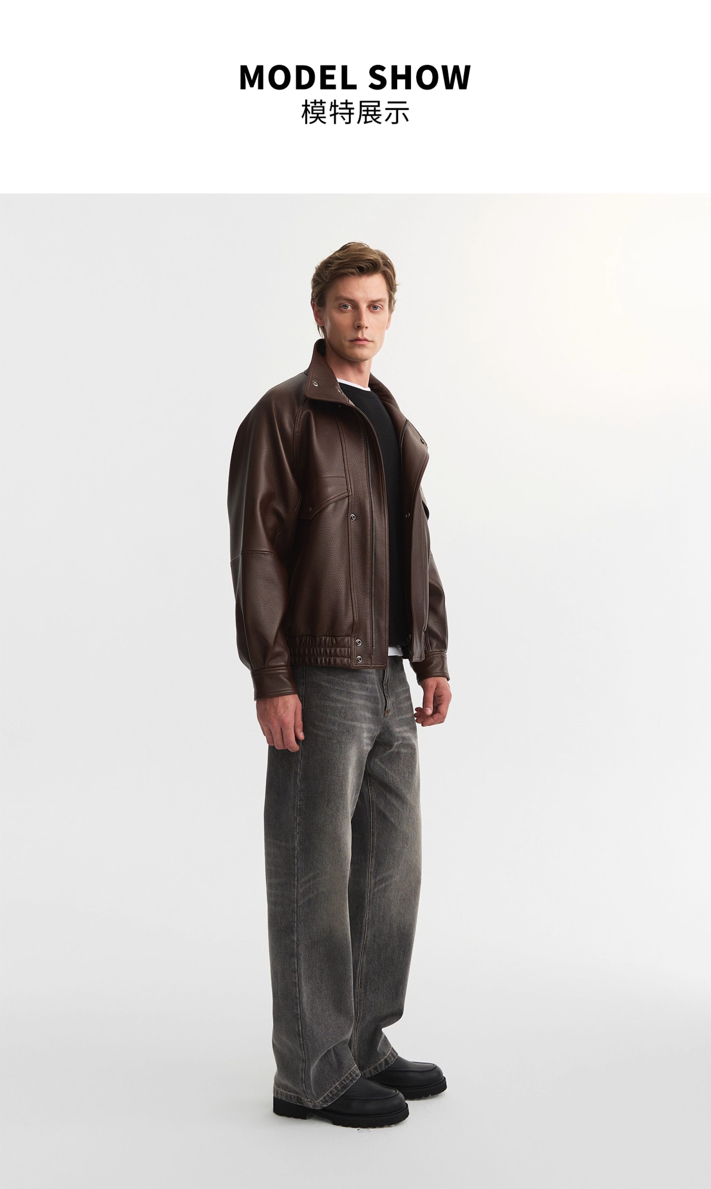 Andrea Moore/Andre Moore Men's New Short Genuine Leather Jacket with Lapel Sheepskin Jacket