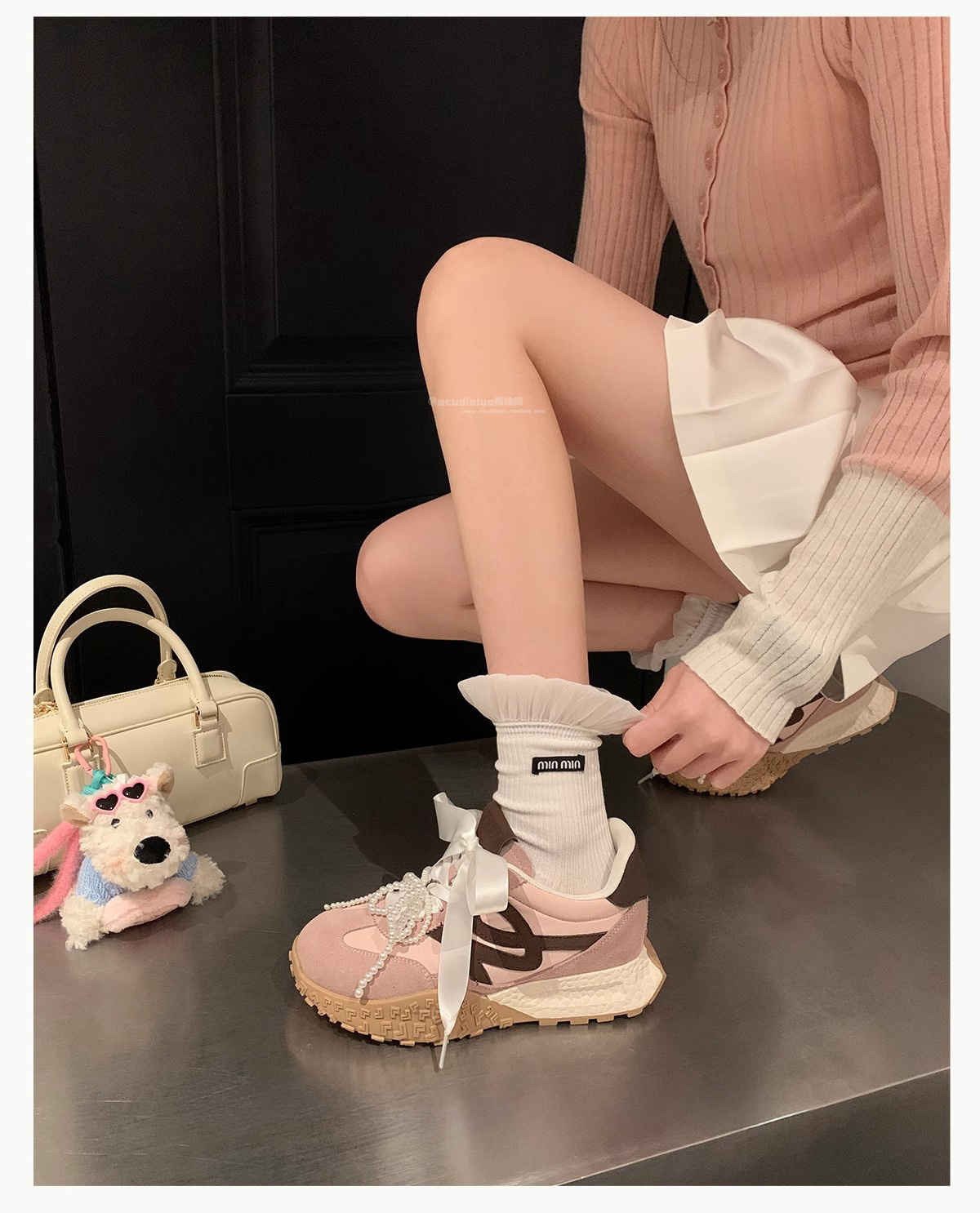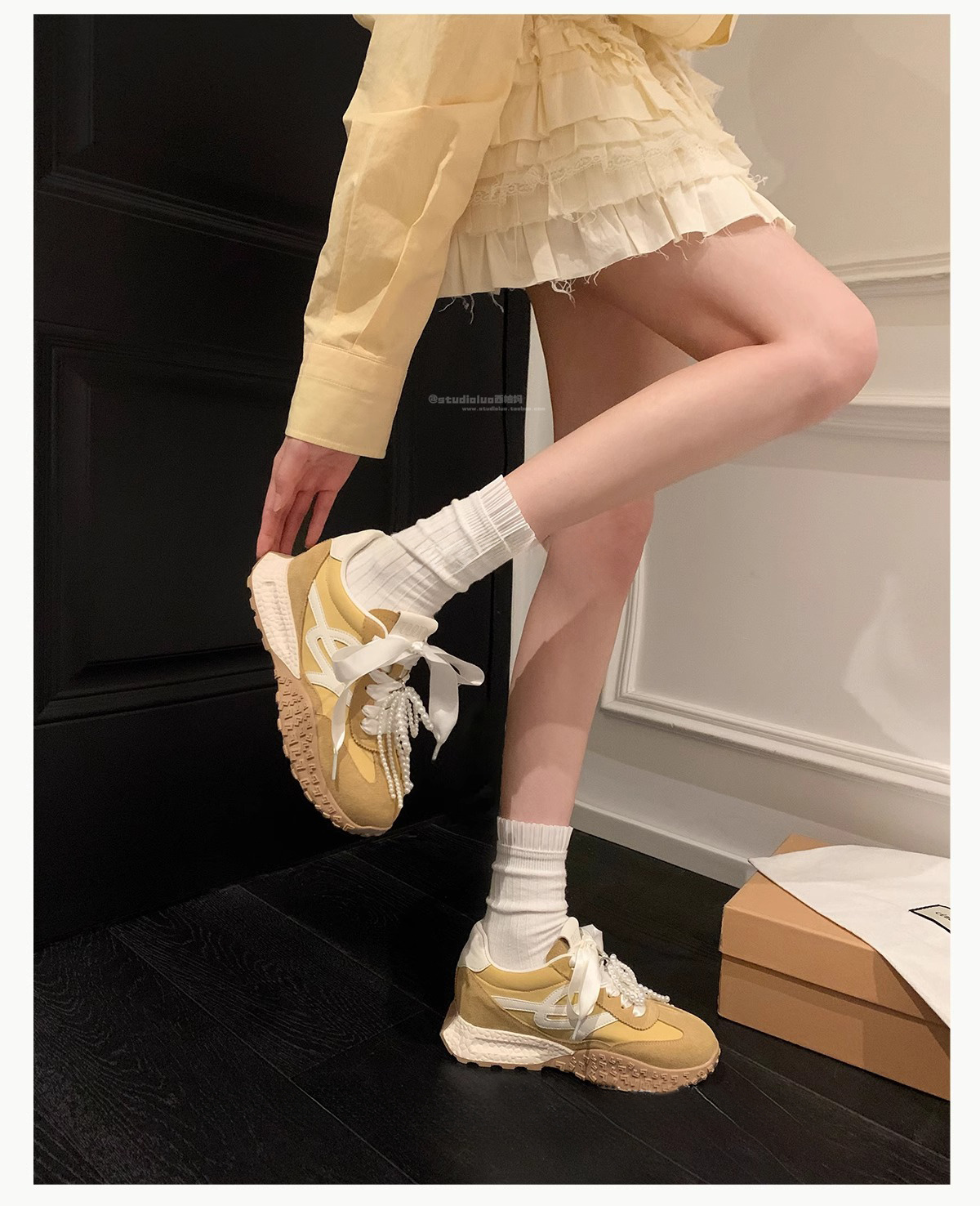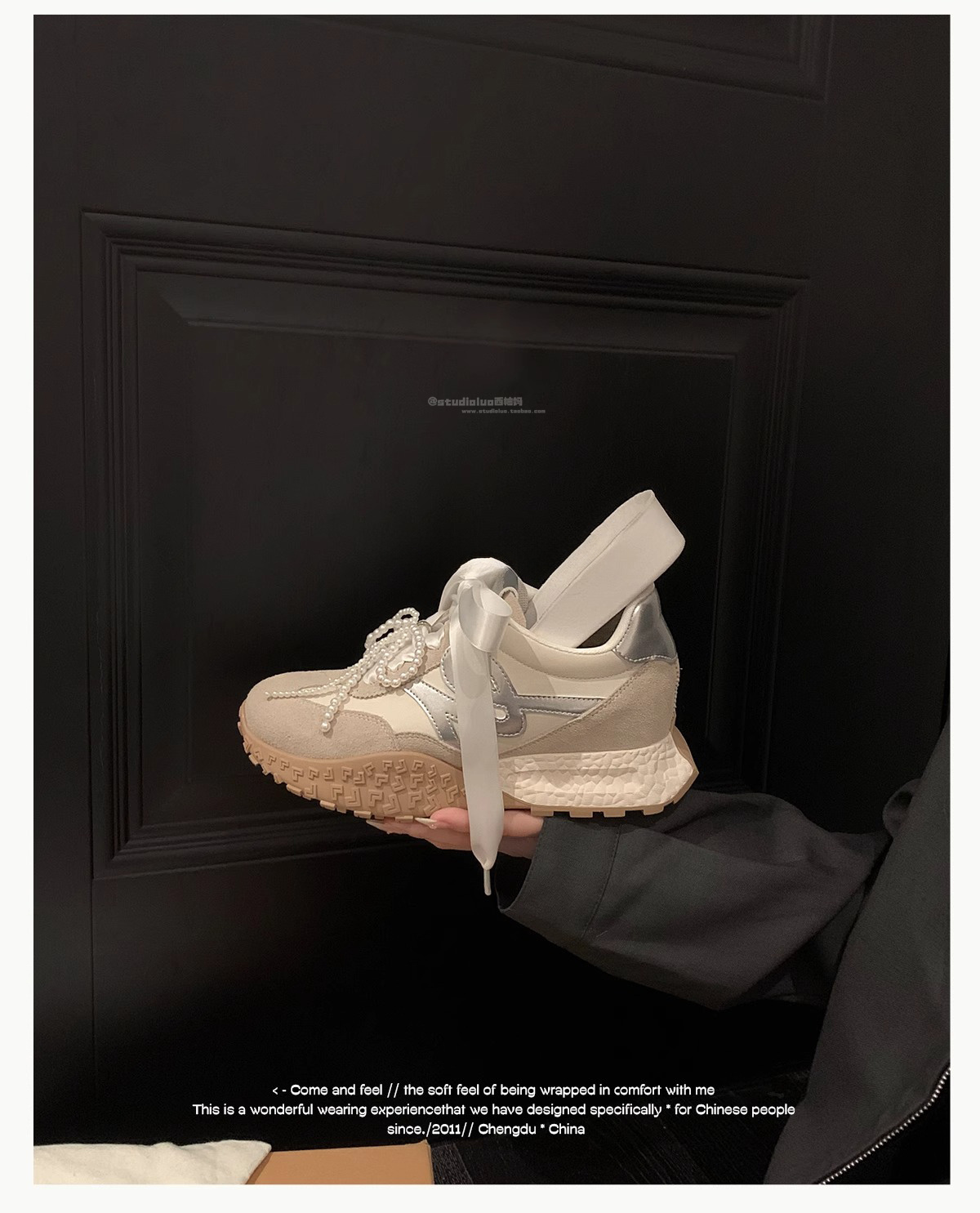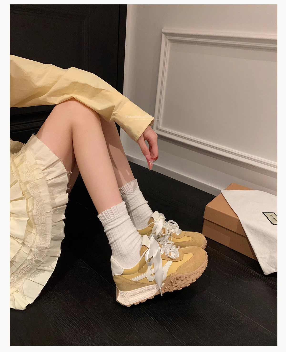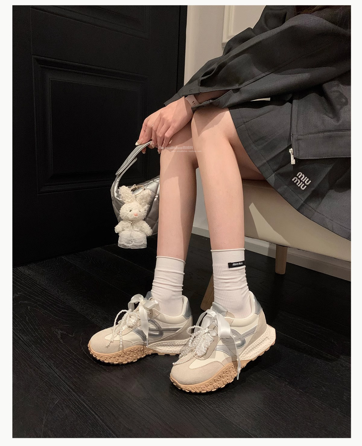 Hong Kong Retro Thick-Soled German Training Shoes for Women, 2025 Spring New Versatile Breathable Height-Increasing Casual Sneakers for Petite Individuals