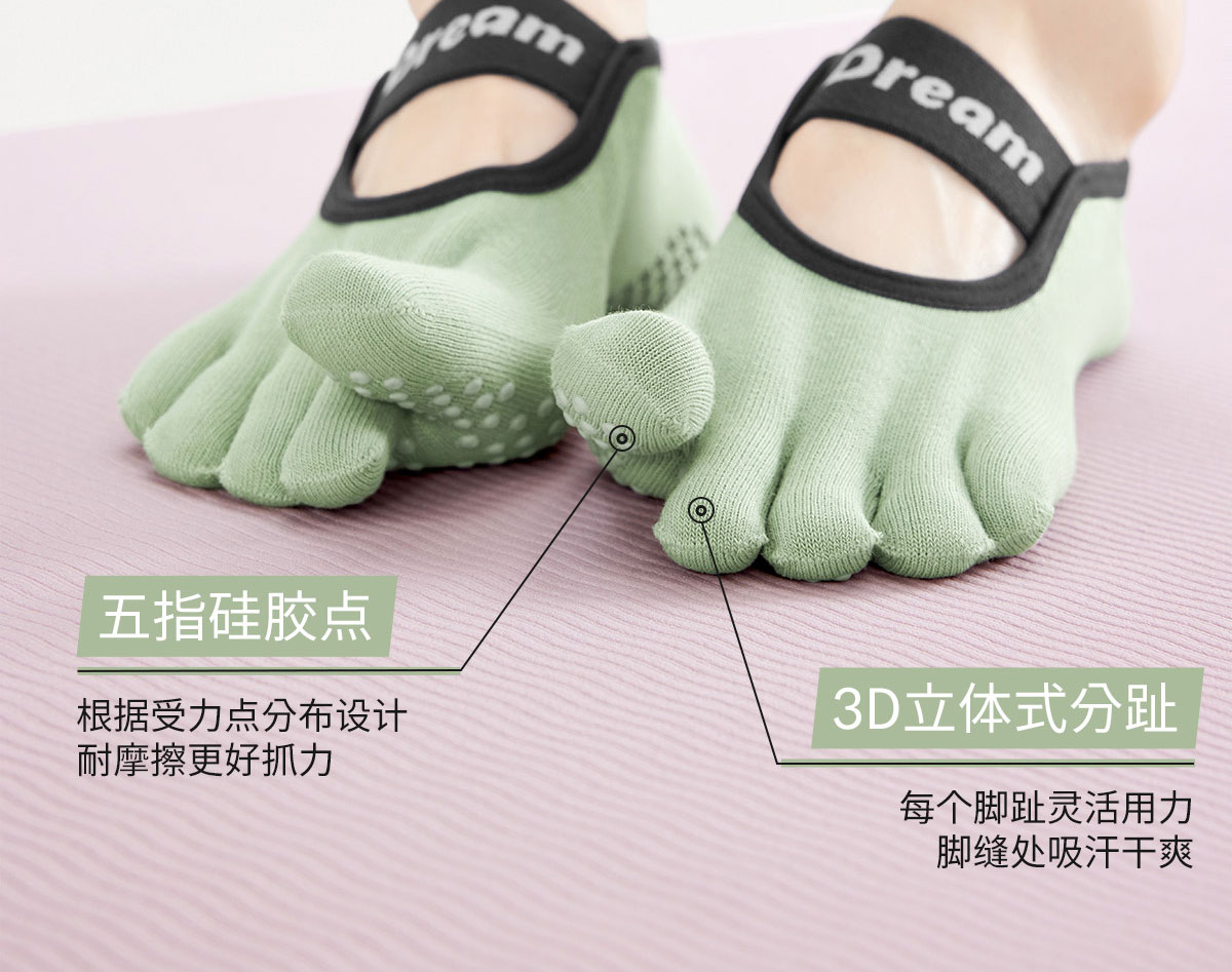 Yoga Socks for Women, Pilates Five-Toe Socks, Split-Toe Spring and Autumn Dance Sports Fitness Non-Slip Professional Boat Socks