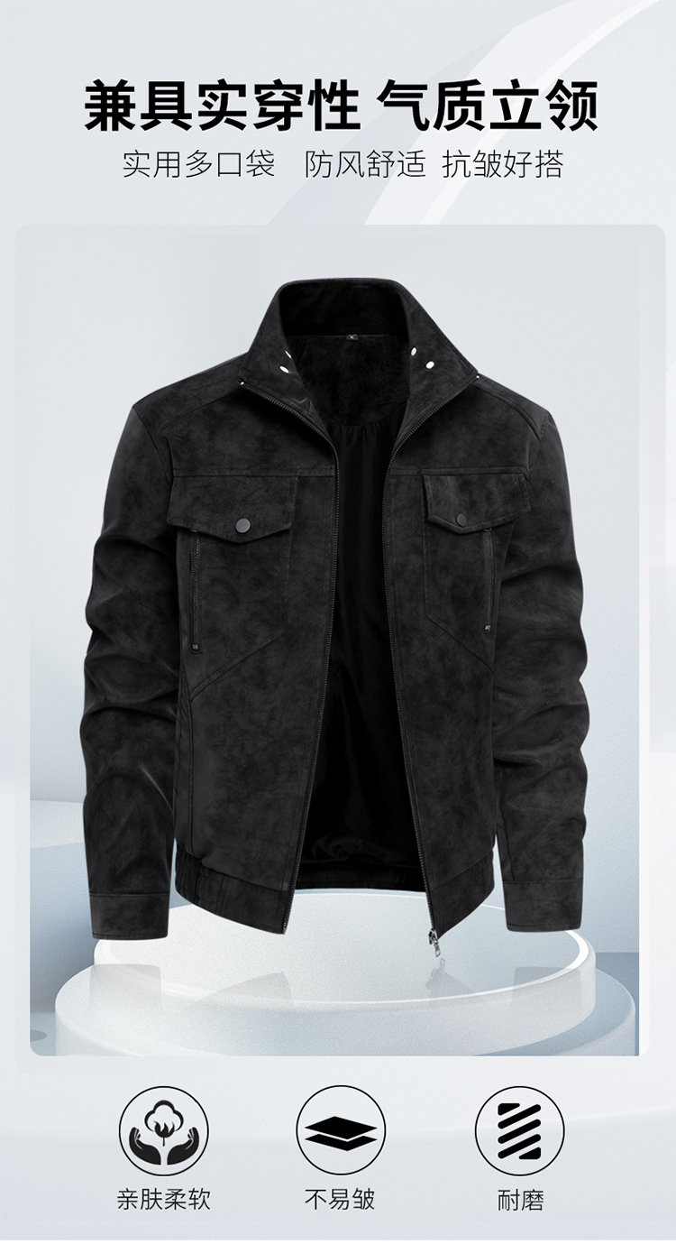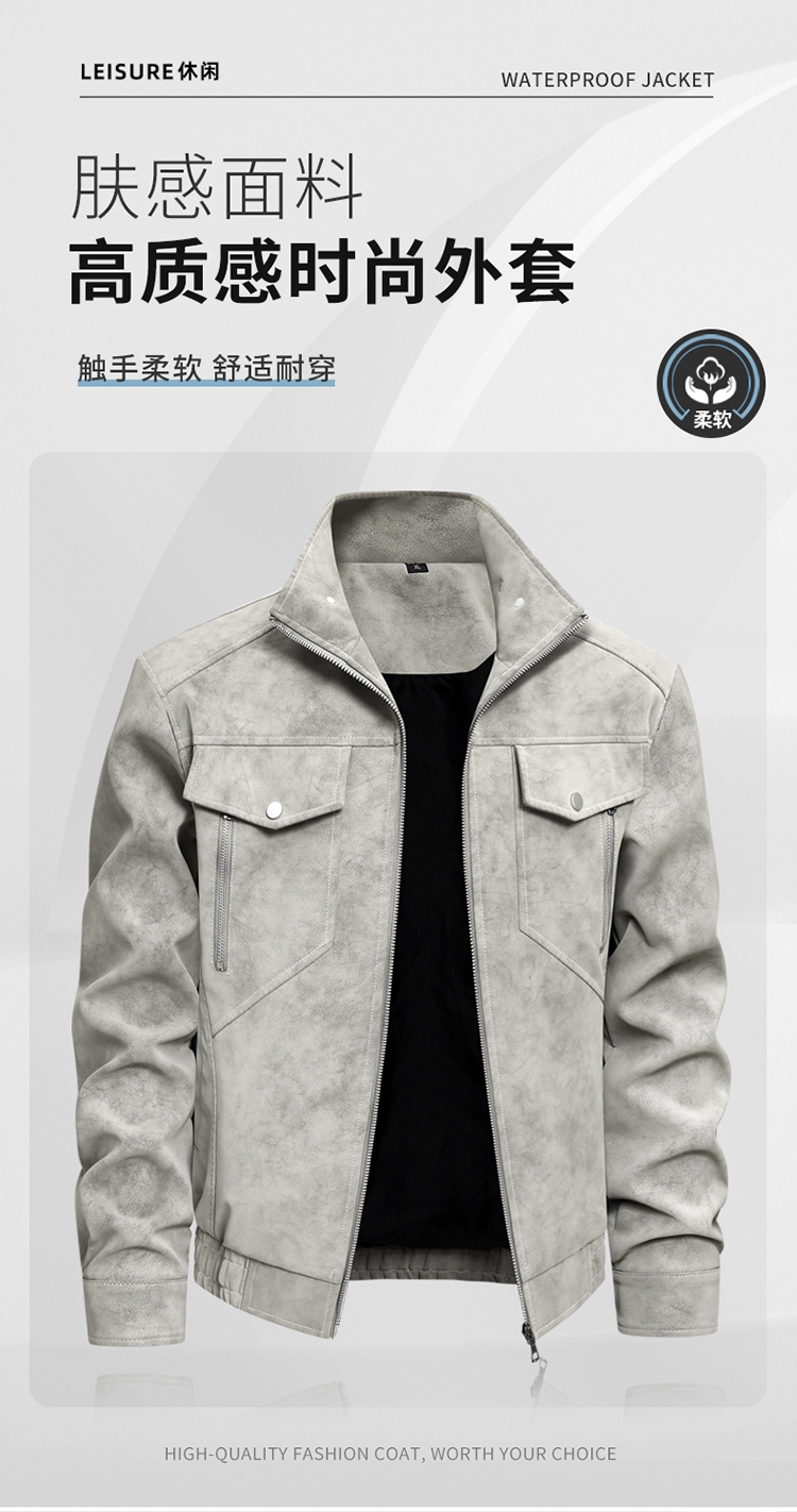 Haining New Genuine Leather Jacket for Men, Stand Collar, Business Casual, Versatile, Trendy, Stylish Leather Jacket, Motorcycle Jacket, Outerwear