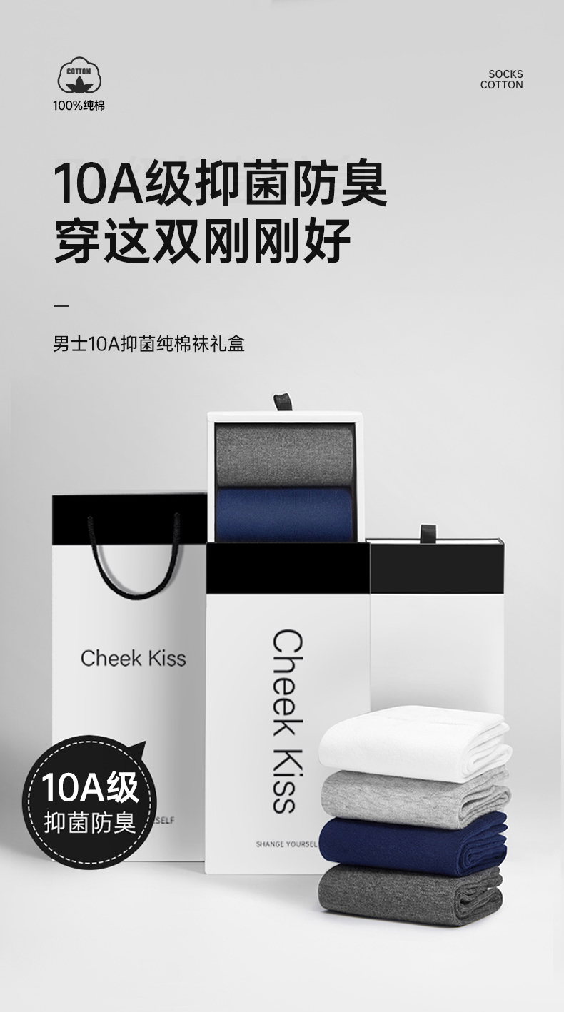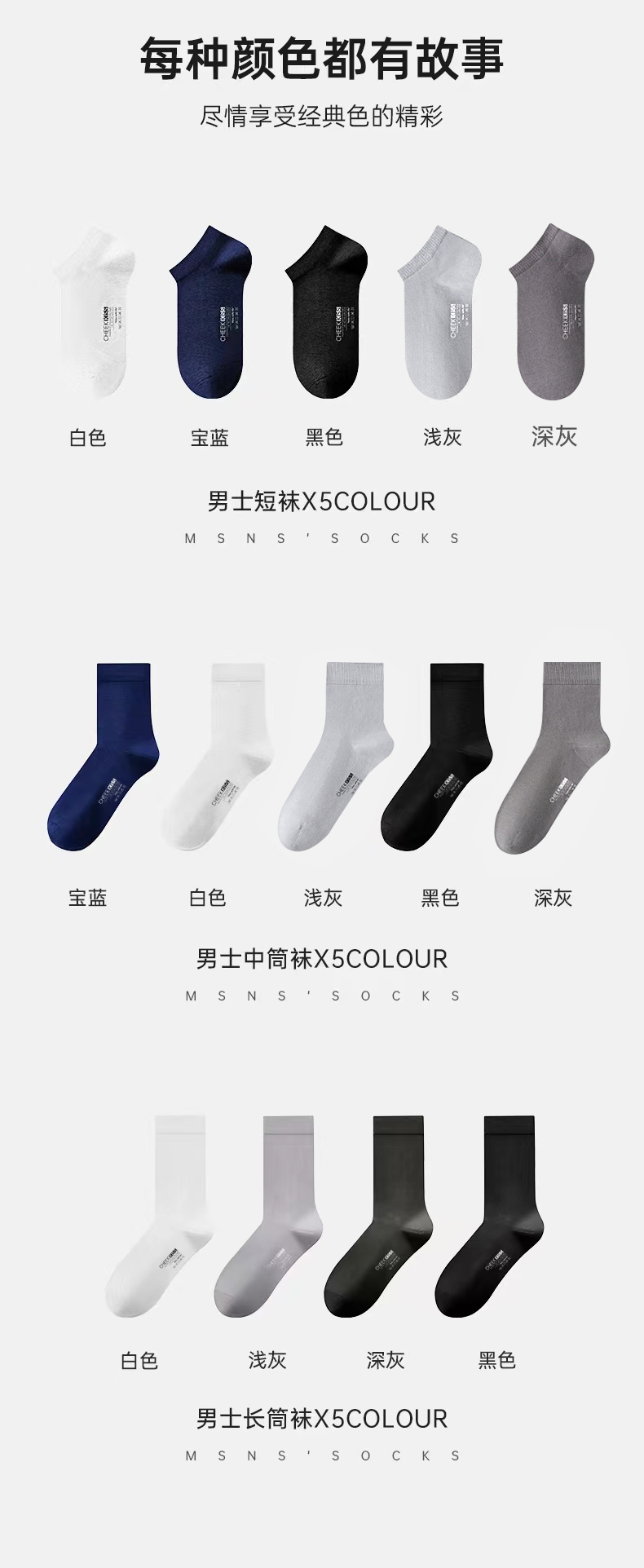 Cheekkiss Men's Socks Mid-Calf Socks Long Socks Spring and Summer Pure Cotton 10A Grade Deodorant Sweat-Absorbent Cotton Socks Sports Socks