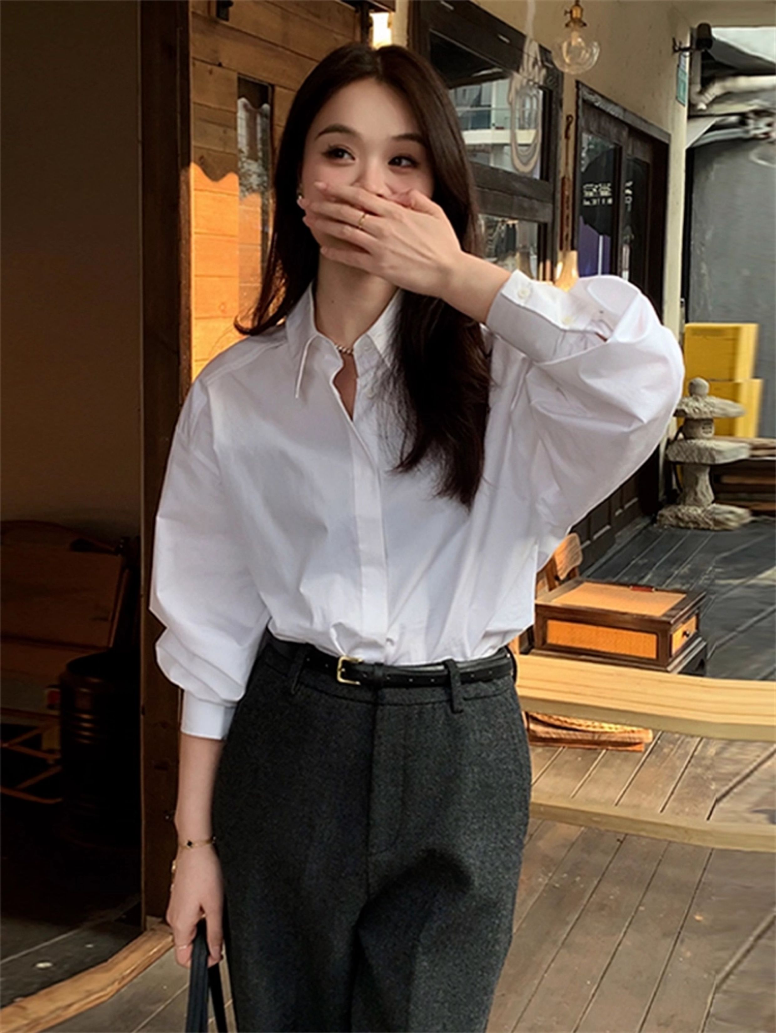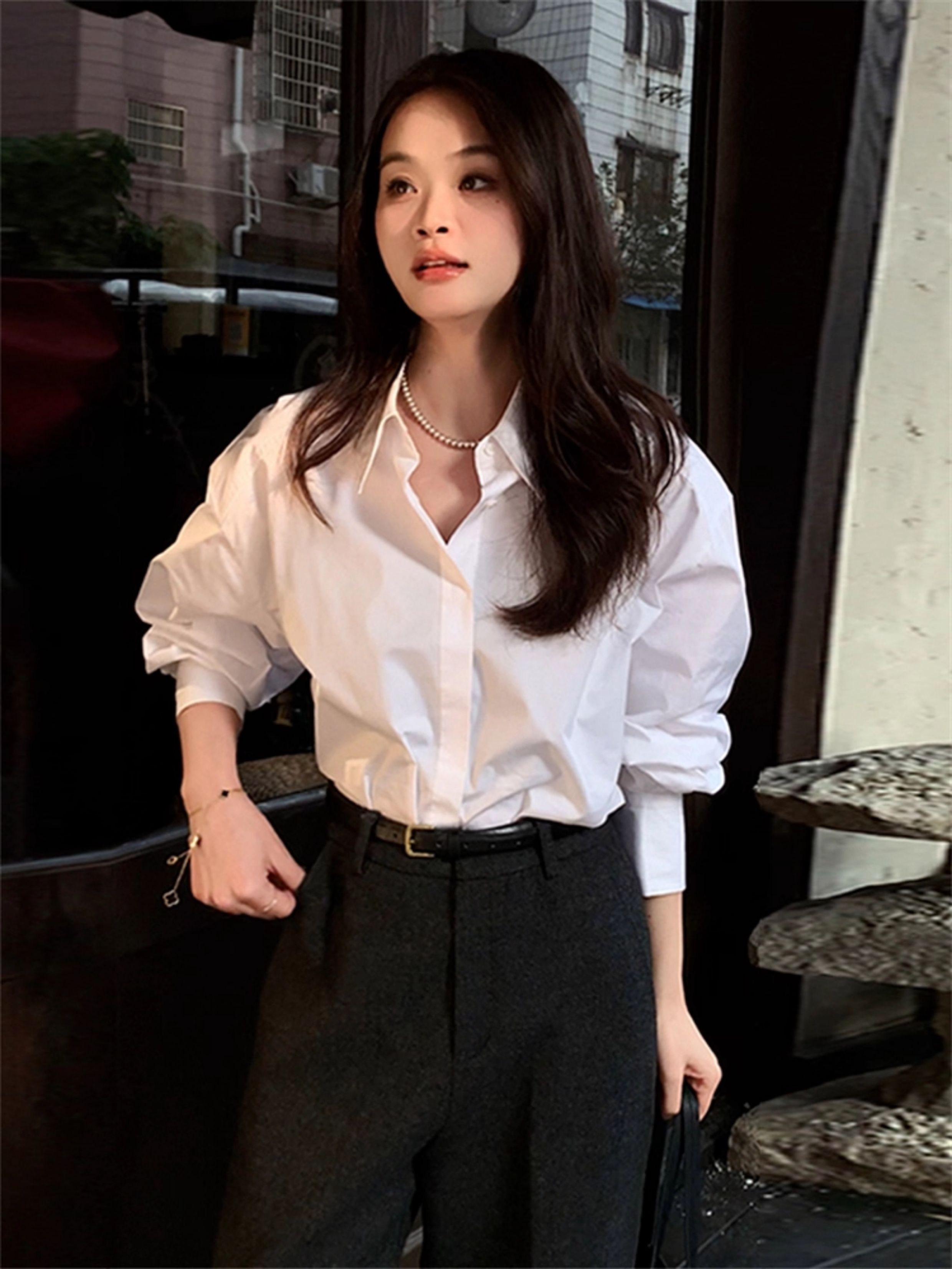 French Design Niche White Shirt Women's Autumn Outfit High-End Top 2025 New Long-Sleeved Shirt