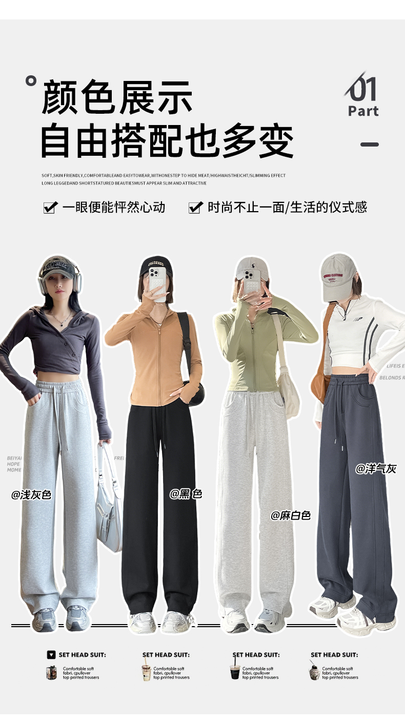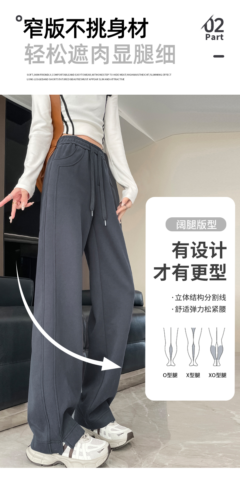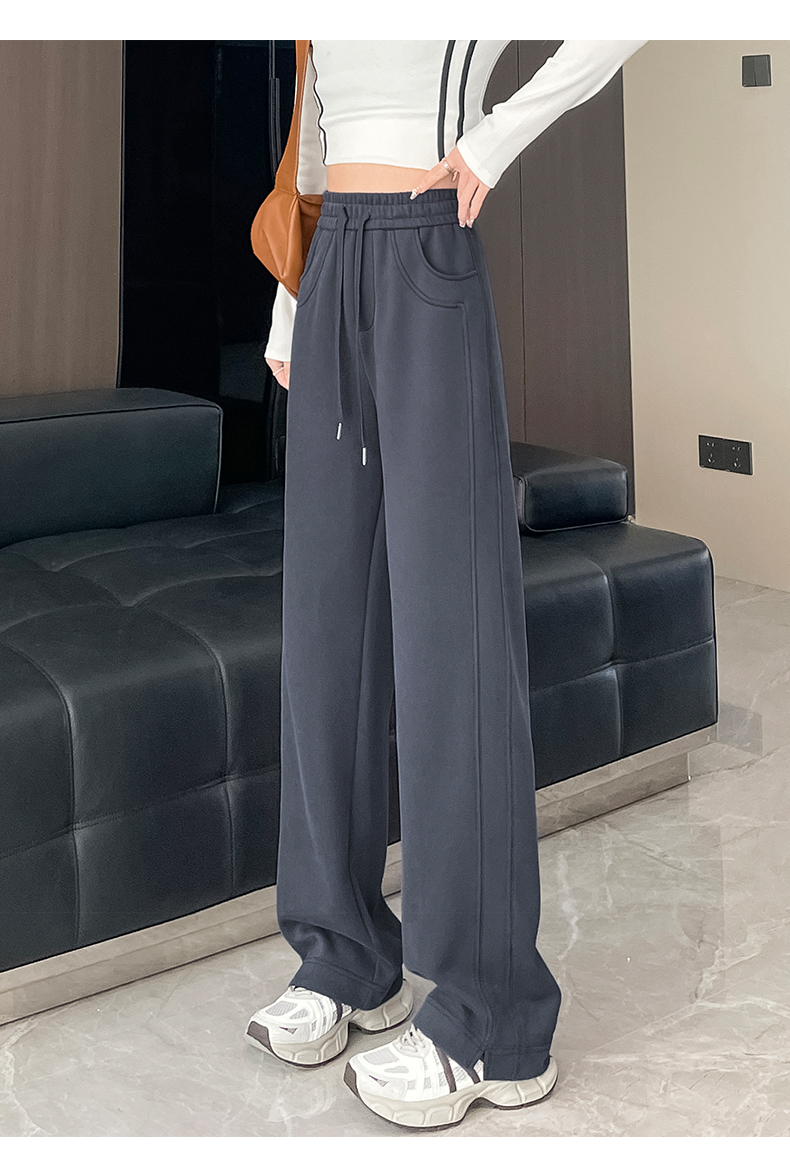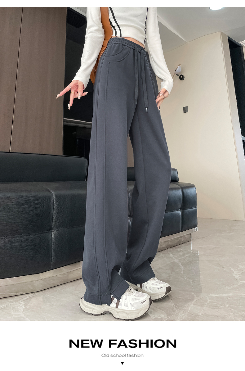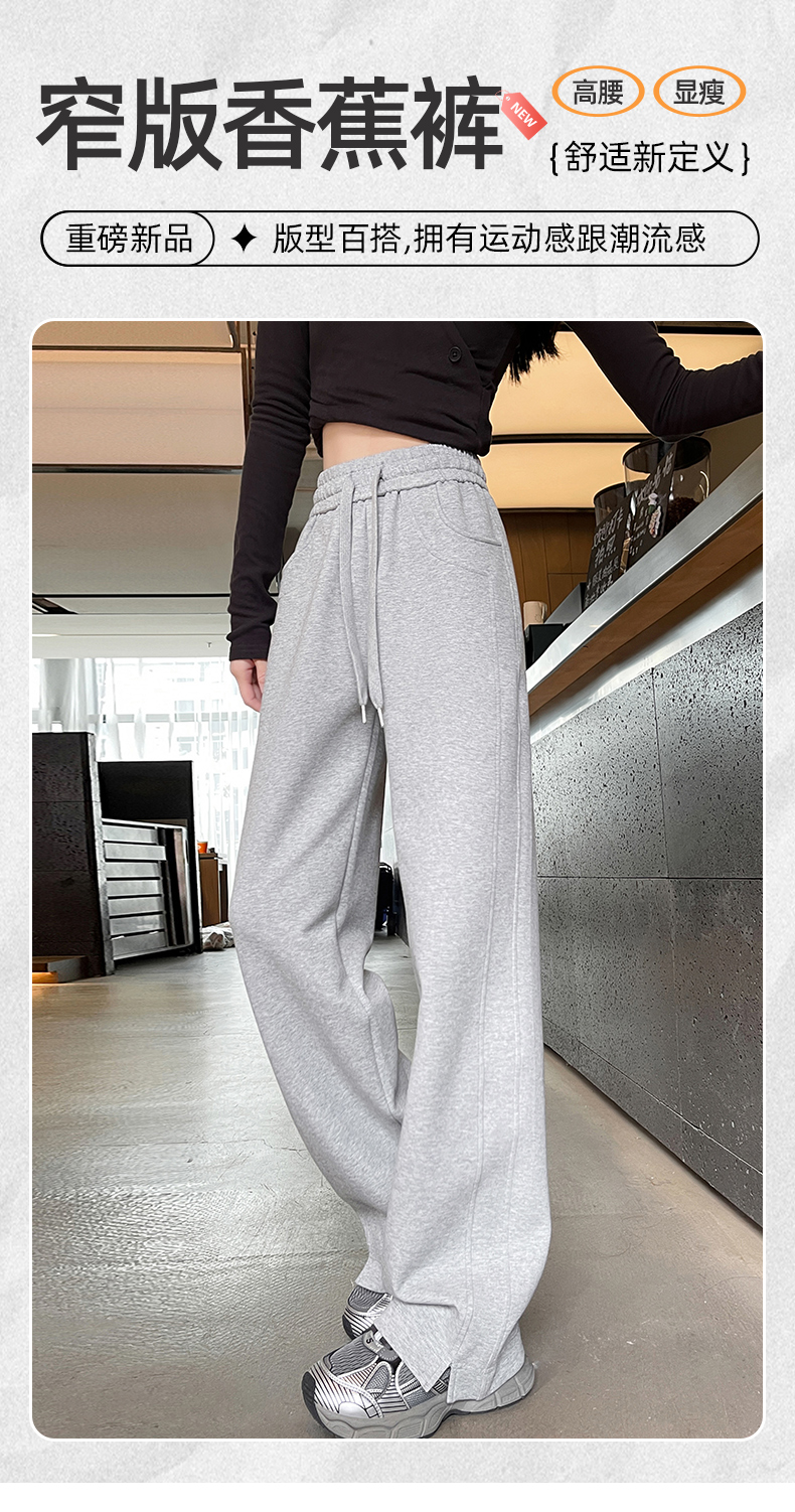 Narrow Wide-Leg Pants for Women, Autumn and Winter, Fleece-Lined, 2025 New Style, Casual Straight-Leg, Spring, Petite, Sweatpants, Banana-Style Sweatpants