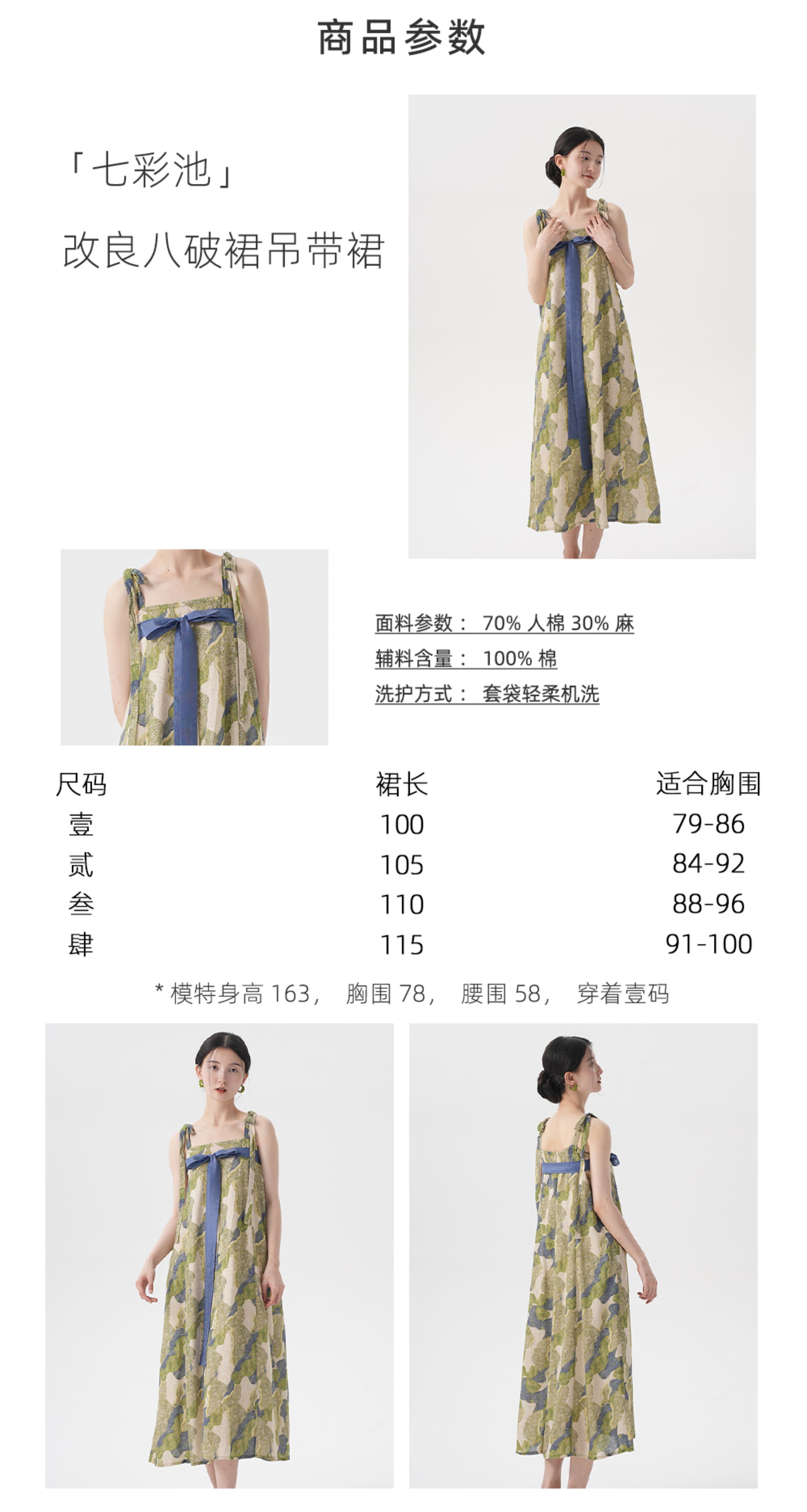 Beautiful Collection's "Colorful Pool" Improved Hanfu Eight-Panel Suspender Dress, Daily Wear with Han Elements for Women