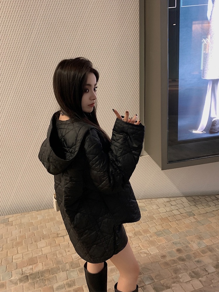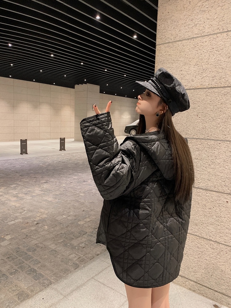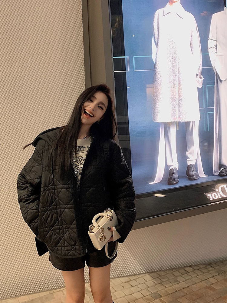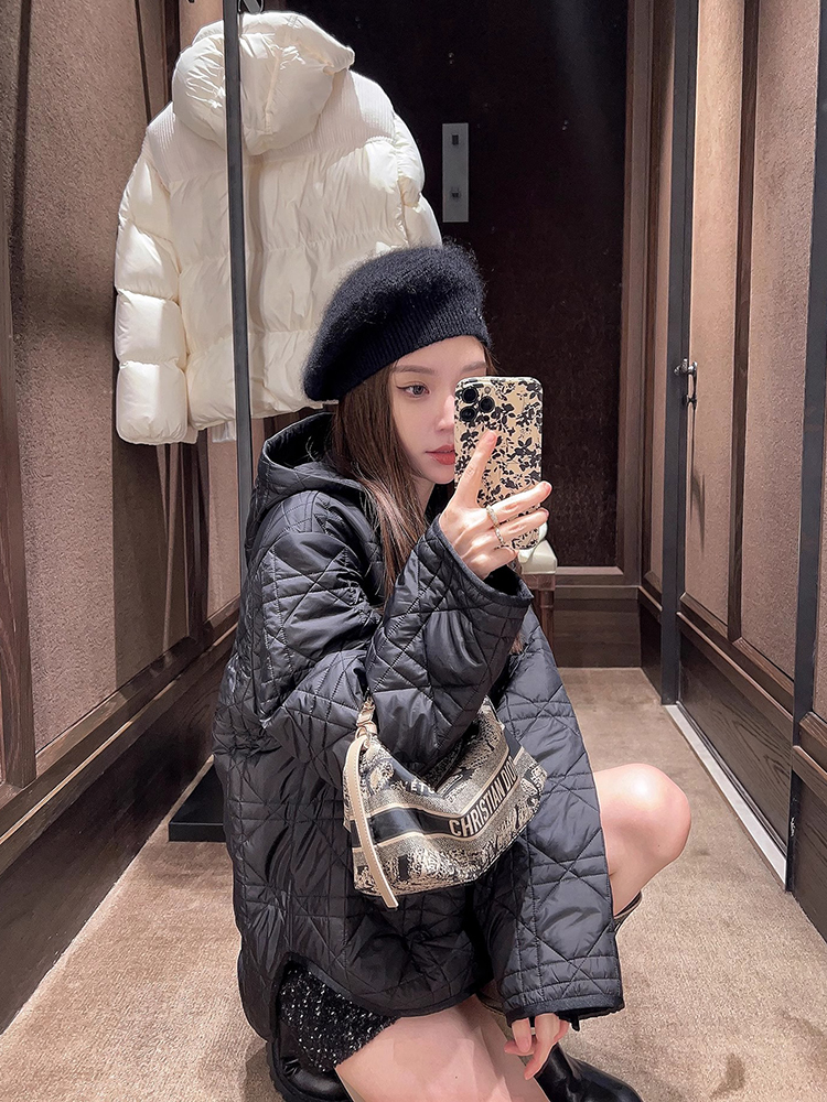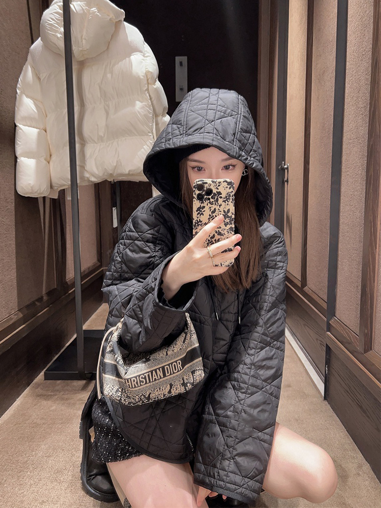 Di*r风戴妃格棉服,这件菱格棉服真的贼好穿 轻薄洋气,氛围感拿捏!(是5月份在澳门买的私服哦) 按照羽绒棉一比一做的,这期给你们安排上了 经典Di*r戴妃格绗棉轻且薄,但品质感很足 自带内发的篙级慵懒感,轻轻松松提升气质感 优势轻便保暖、不臃肿,版型时髦年轻又很是减龄 宽松版型胖瘦都能驾驭,连帽兼顾了造型感和防风御寒的点 下摆造型前短后长的弧形设计,很洋气,轻松修饰身形比例 门襟下摆、袖口都采用了拉筒包边,细节工艺精至 面料爽滑舒适,硬挺有型,帽绳设计增加了年轻的运动感 衣服好打理,廓形时尚,初秋时髦穿搭单品 夸一下这件超級好的轻便性,不是那种加厚的羽绒 而是选用的是品质仿丝棉材质,更加绵密稳固 保暖度足、延展性佳,热压绗棉工艺处理,不会露棉 菱格均匀饱满,轻阔有型,普通泡泡圆圆的菱格非常显臃肿 但是戴妃格特有的绗线工艺,稳固穿插在菱格中 呈现出饱满但不发泡的状态,所以即使有克重也狠显瘦 上装整件版型松弛但不肥大,小廓形拿捏的很准
