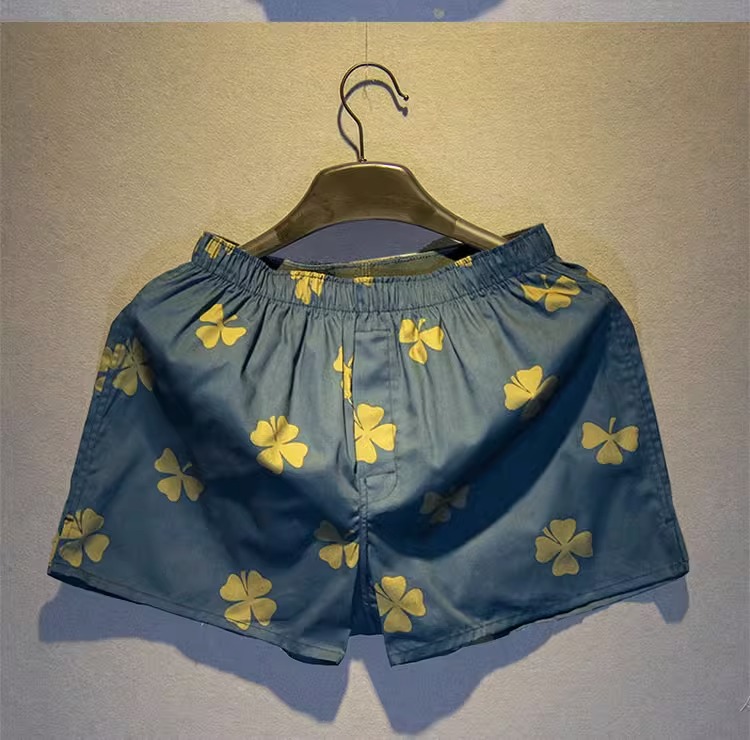 Japanese Men's Boxer Briefs, Pure Cotton Printed Home Wear, Loose Fit, Large Size for Teenagers, Men's Shorts