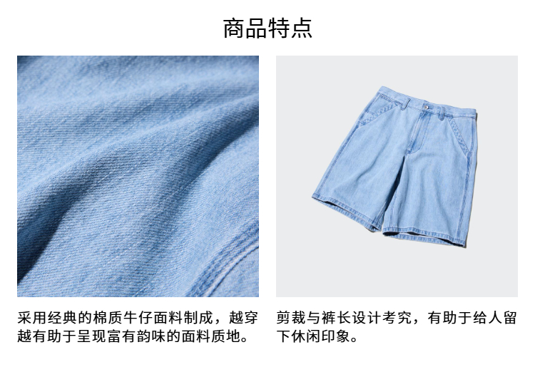 Uniqlo Men's and Women's Denim Cargo Shorts/Washed Product Pants Casual Loose Mid-Length Pants 477165