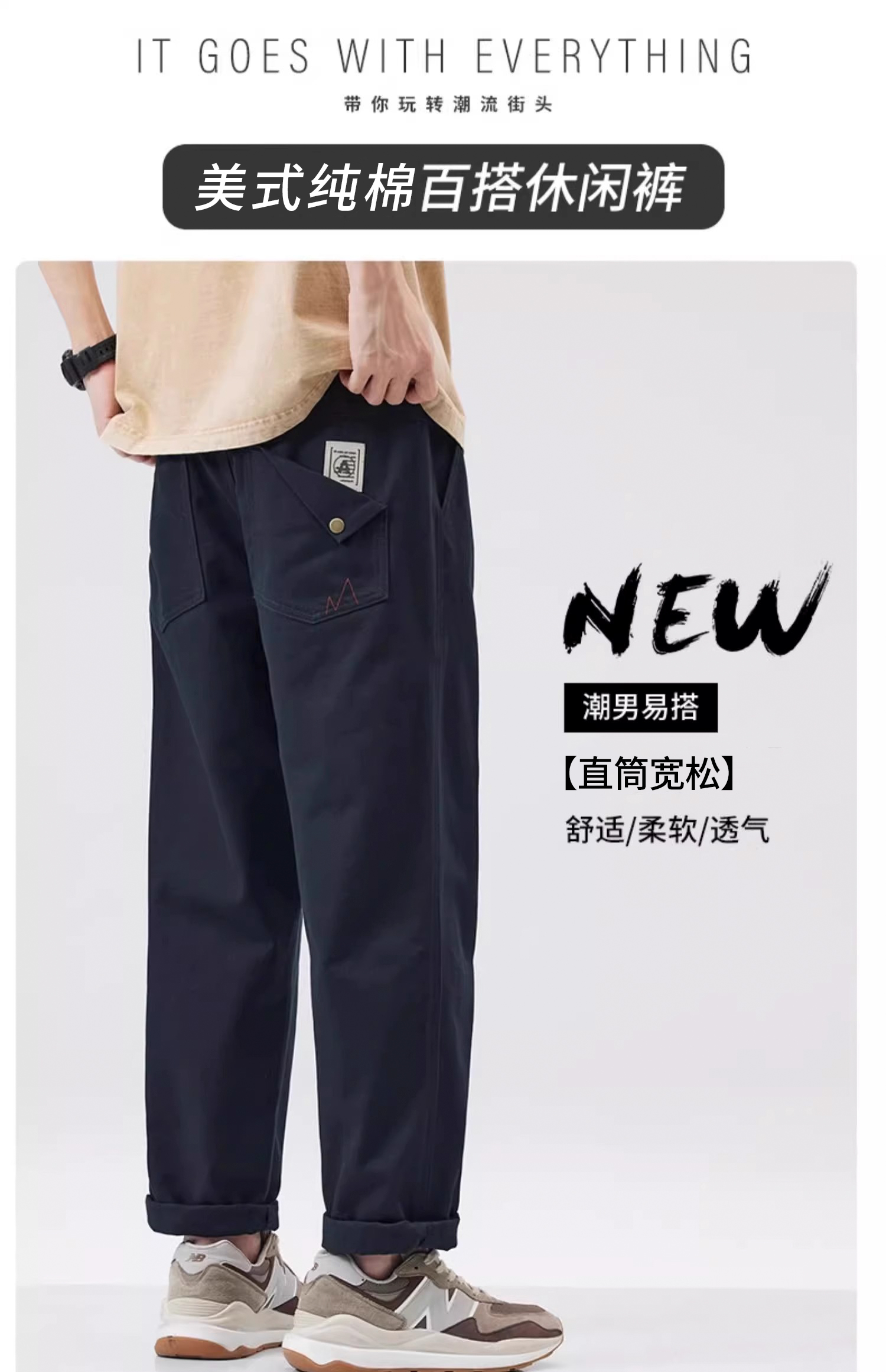 [Ao Ruipeng Endorsement] Geniolamode Fleece-Lined Pure Cotton Cargo Pants for Men, Autumn and Winter Straight-Leg Casual Trousers