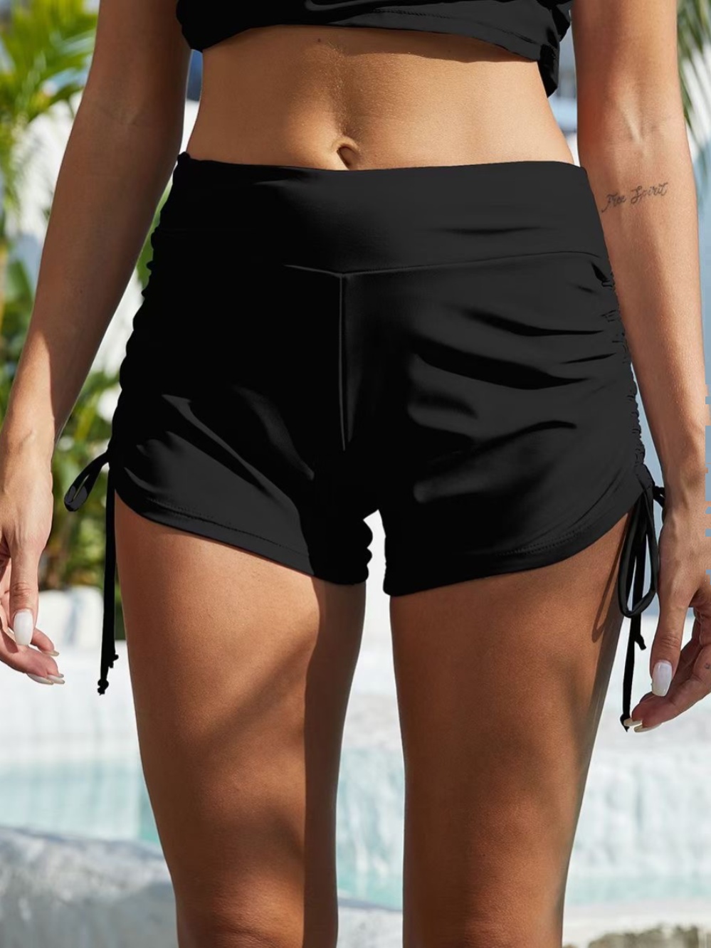 Slimming Black High-Waisted Drawstring Shorts Women's Boxer Swim Trunks Swimsuit Bottoms Women's Tummy Control Pole Dancing