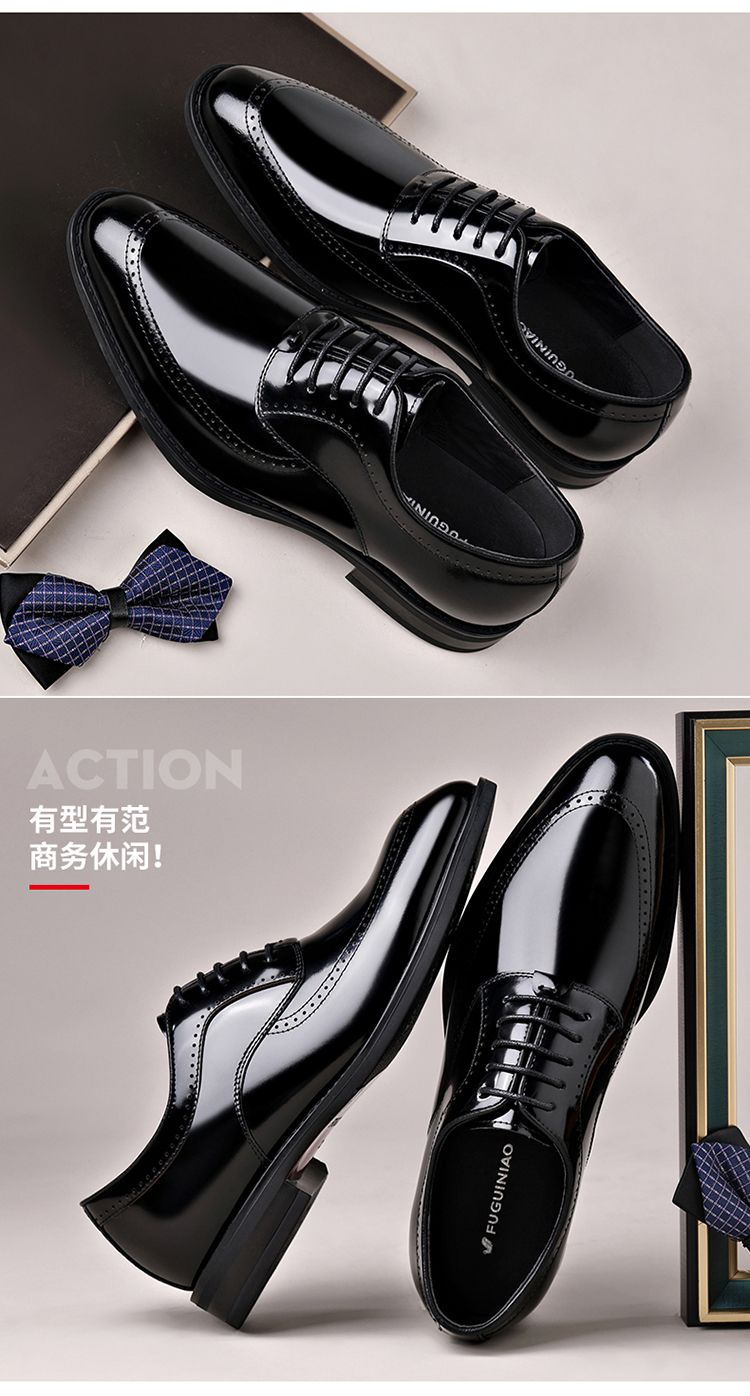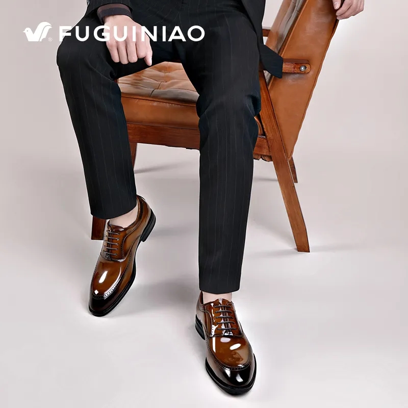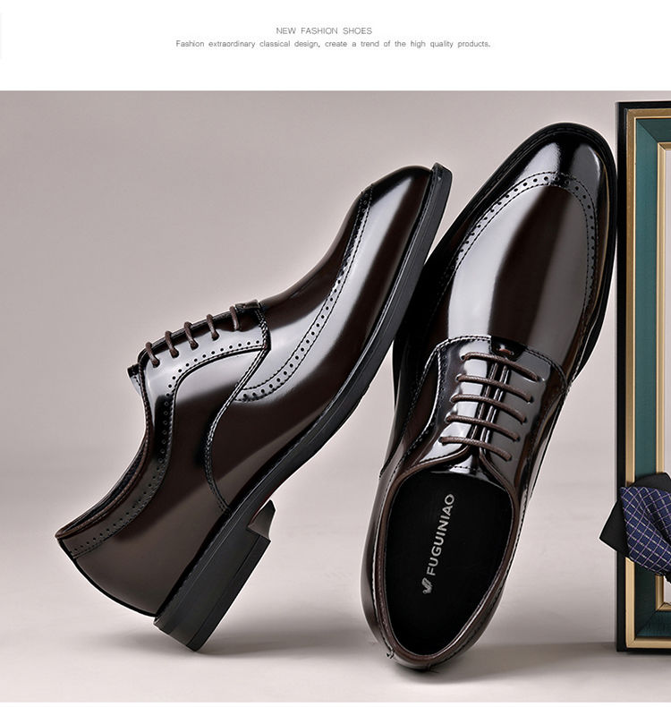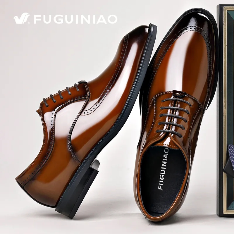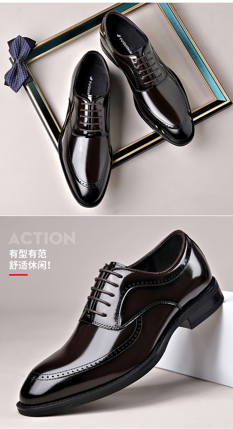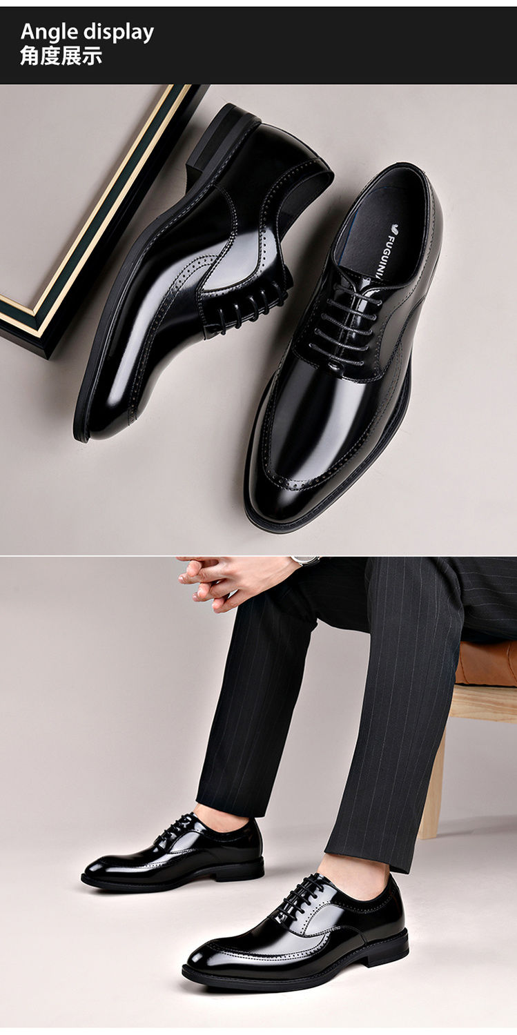 FGN Men's Shoes Genuine Leather Business Formal Leather Shoes Men's Shiny Leather Trendy Groom Wedding Shoes Pure Cowhide