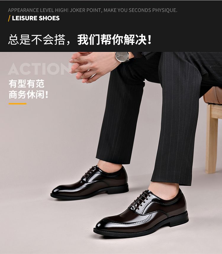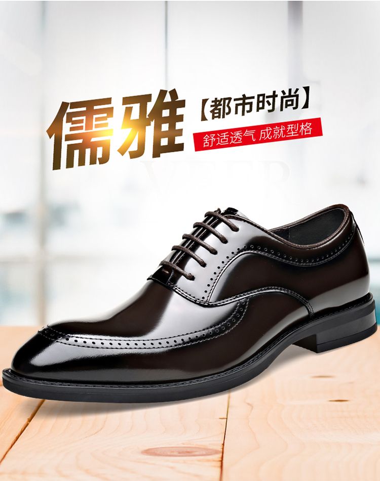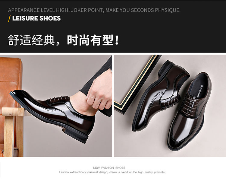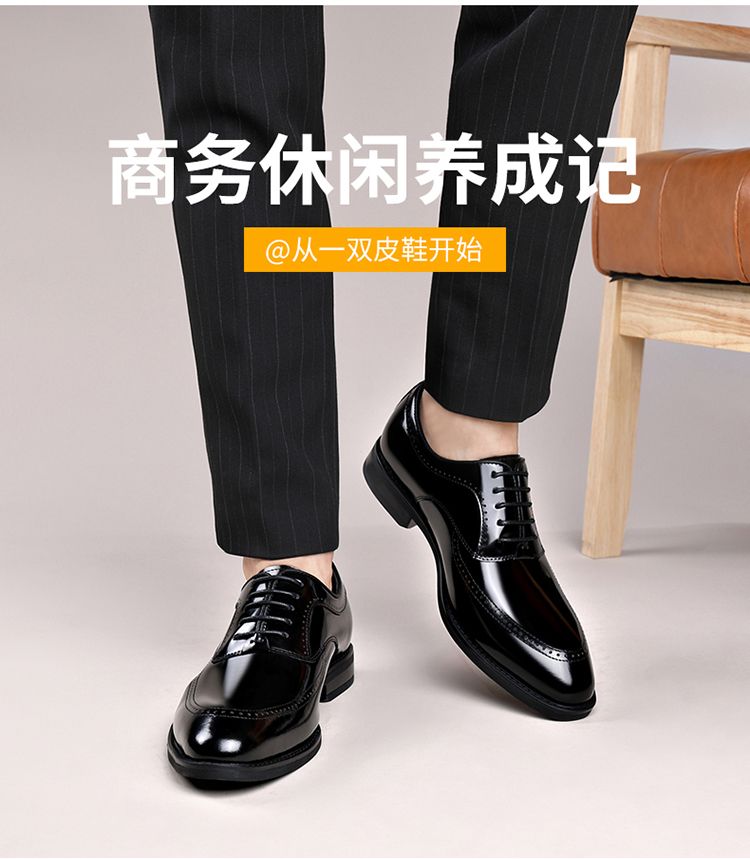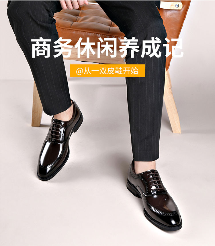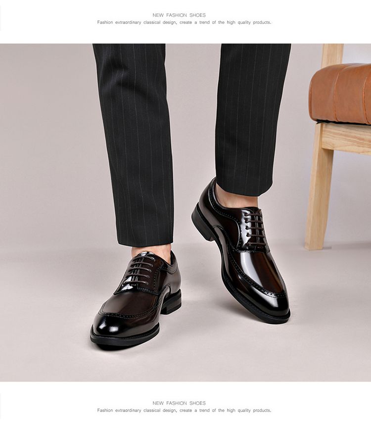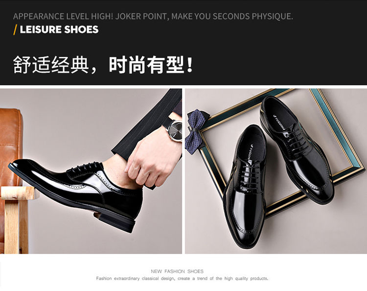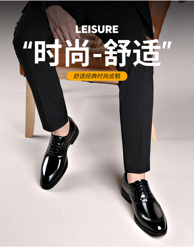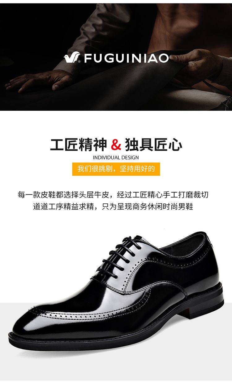 FGN Men's Shoes Genuine Leather Business Formal Leather Shoes Men's Shiny Leather Trendy Groom Wedding Shoes Pure Cowhide