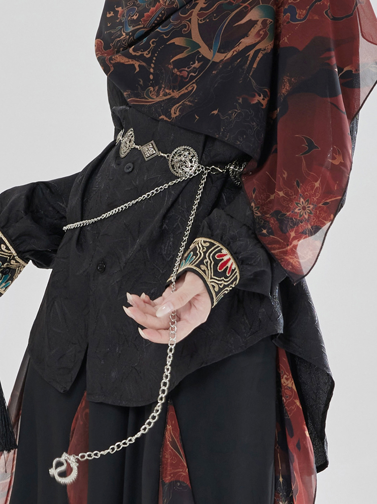 Qingtang LAOSHU - Dunhuang Belt with Versatile Leather Belt and Metal Waist Chain Decoration