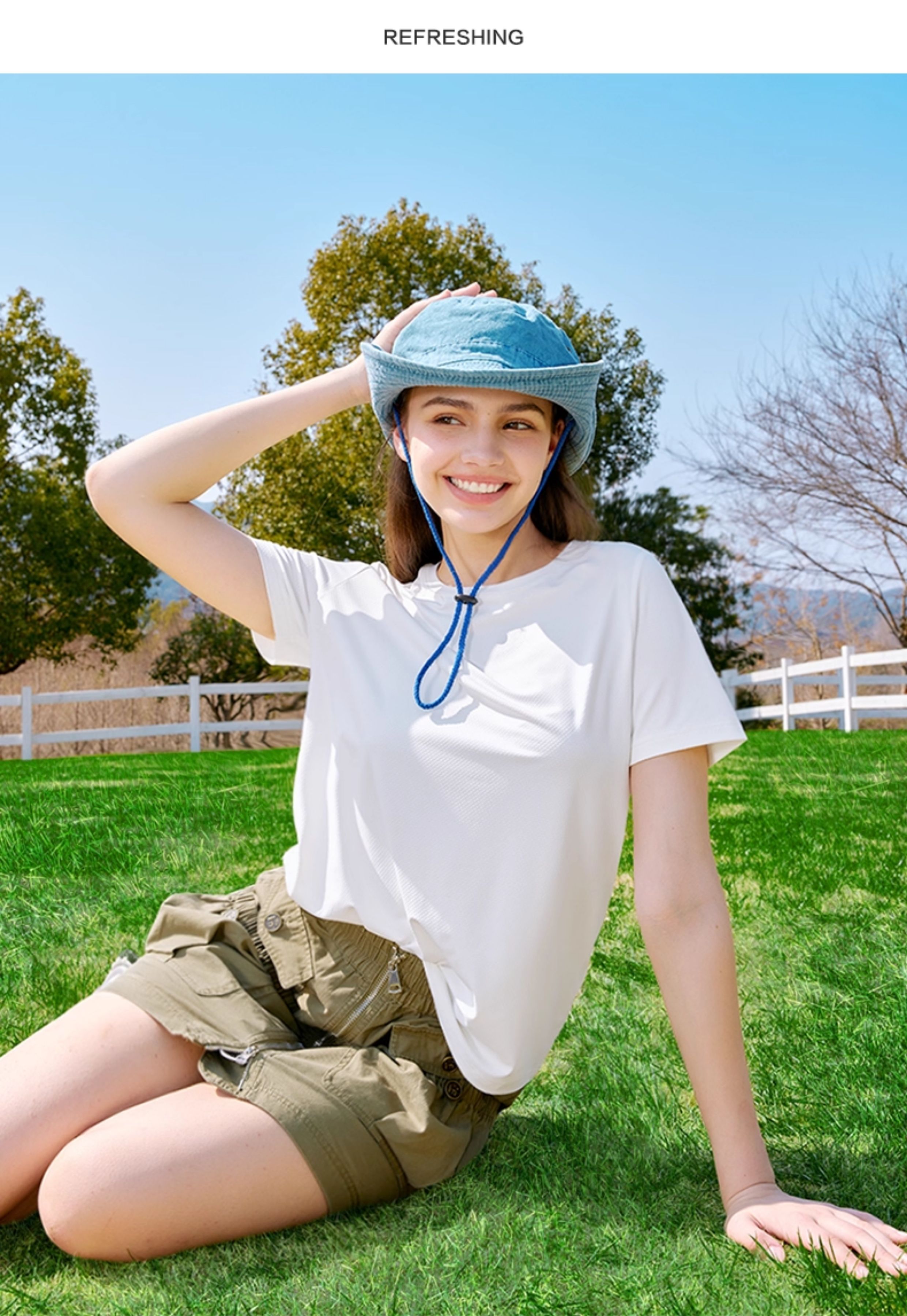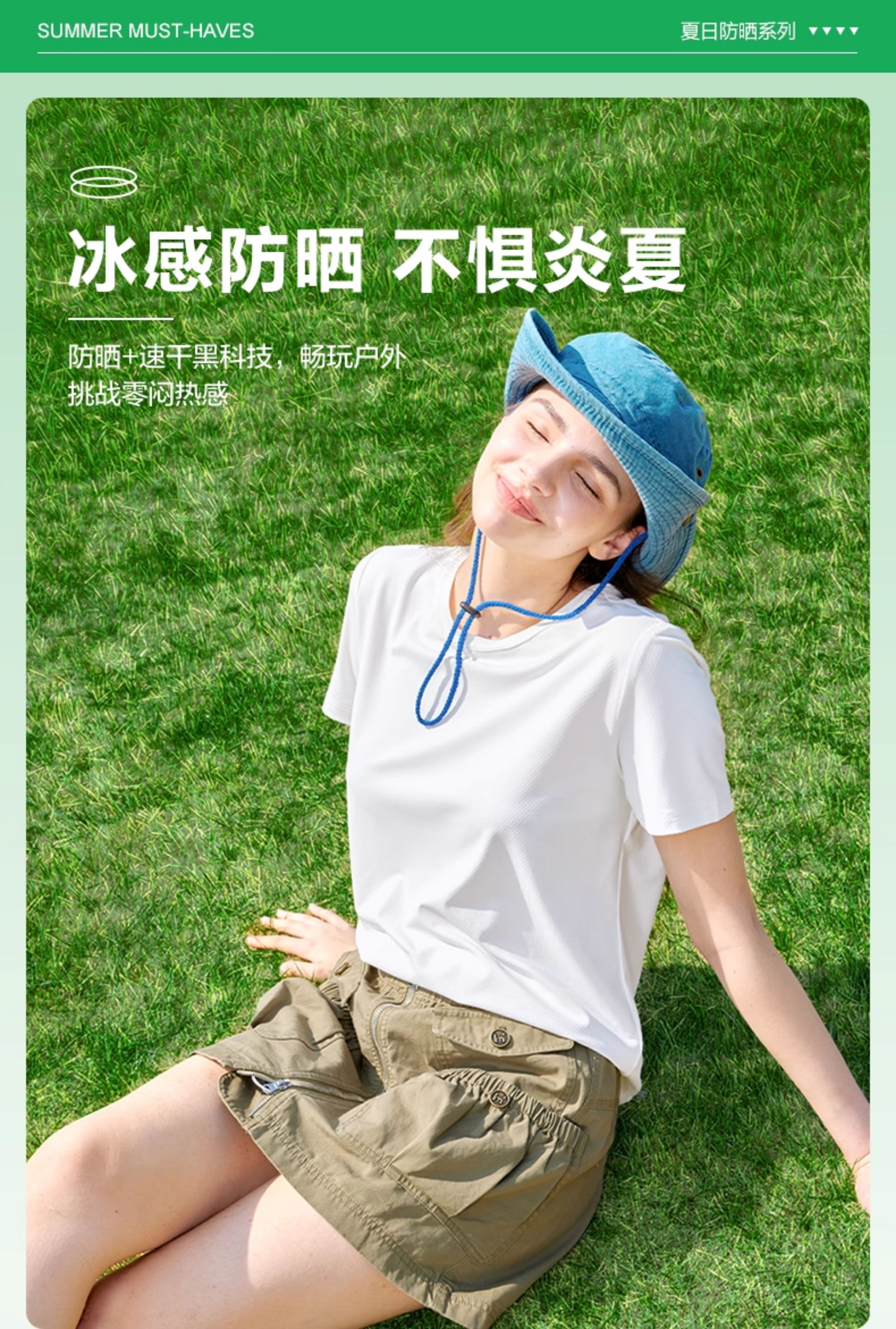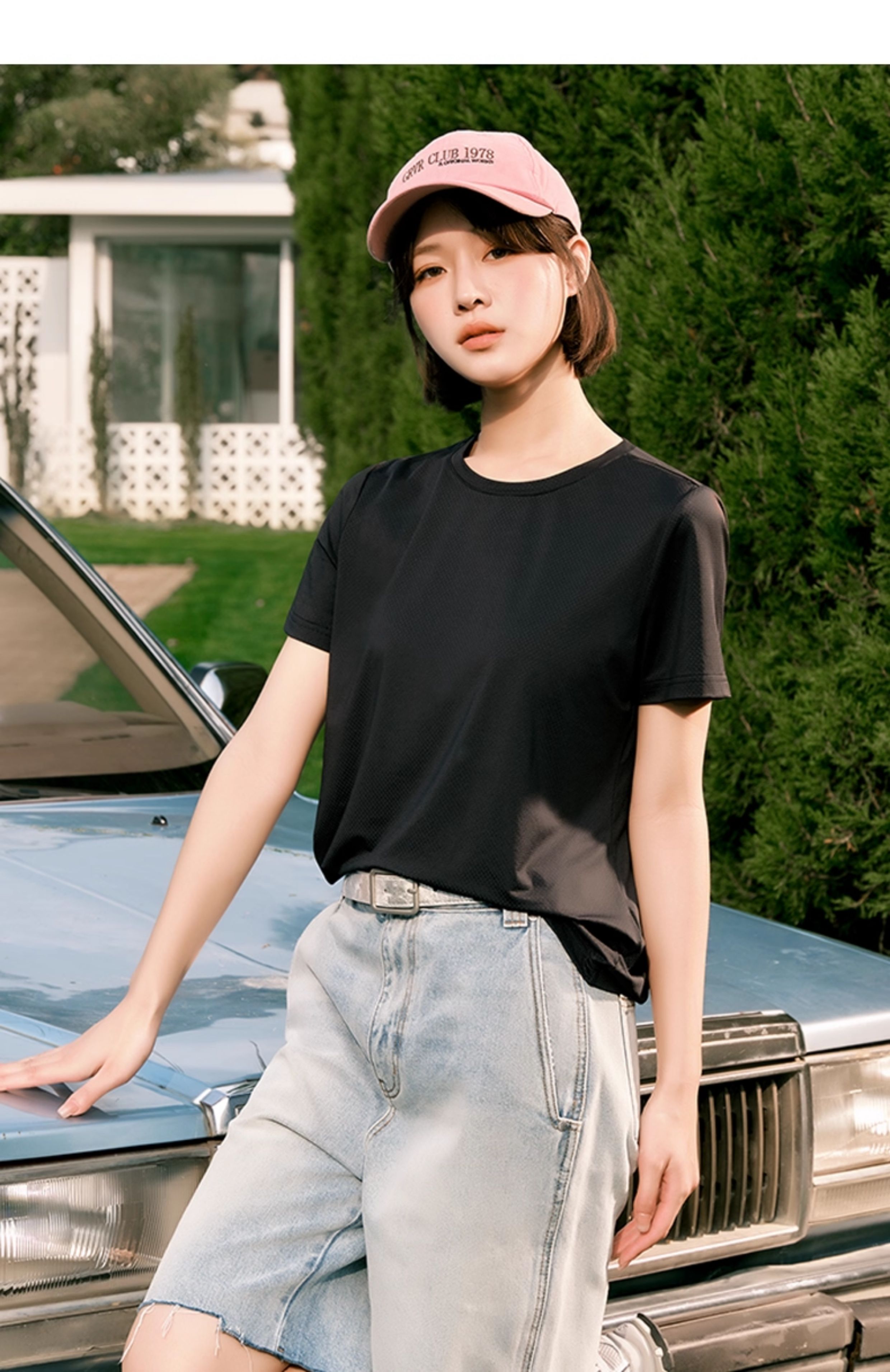 Jeanswest Ice Silk Short Sleeve Women's 2025 New Summer Sun Protection Top Cool Breathable Mesh Sports Quick-Dry T-Shirt X
