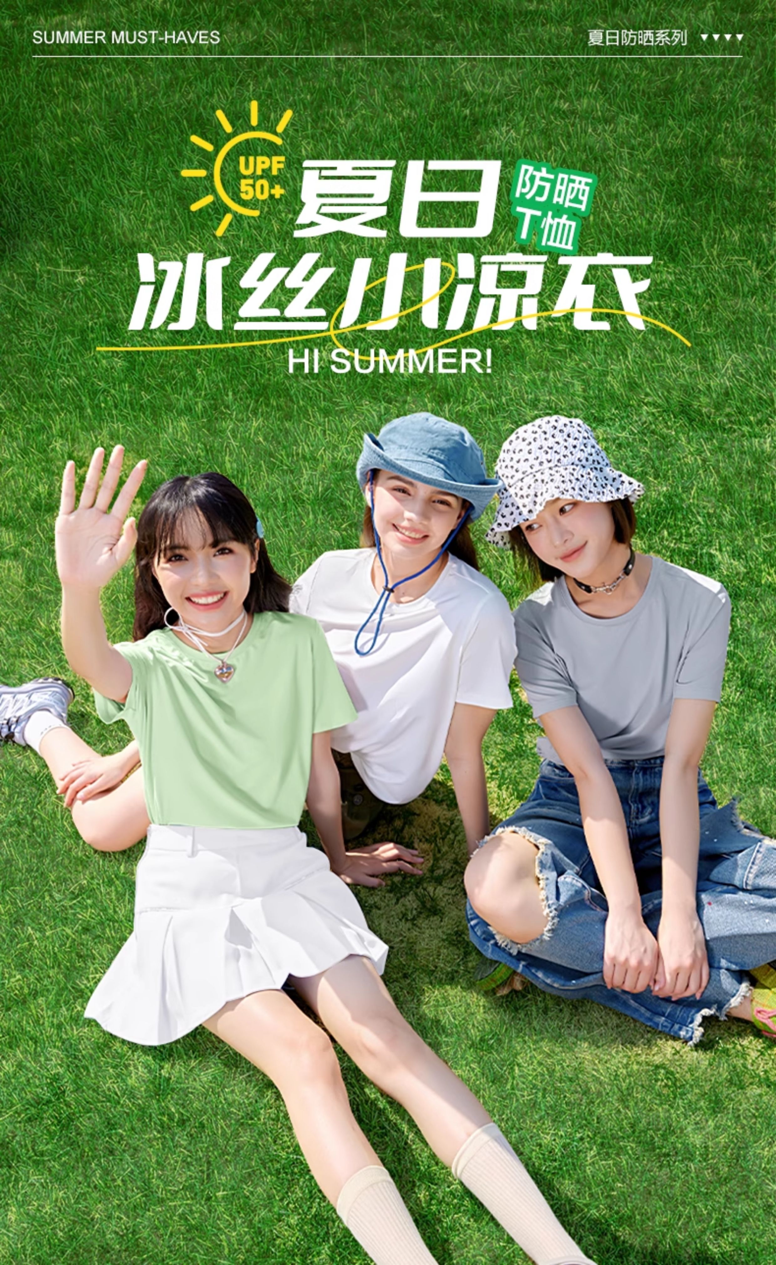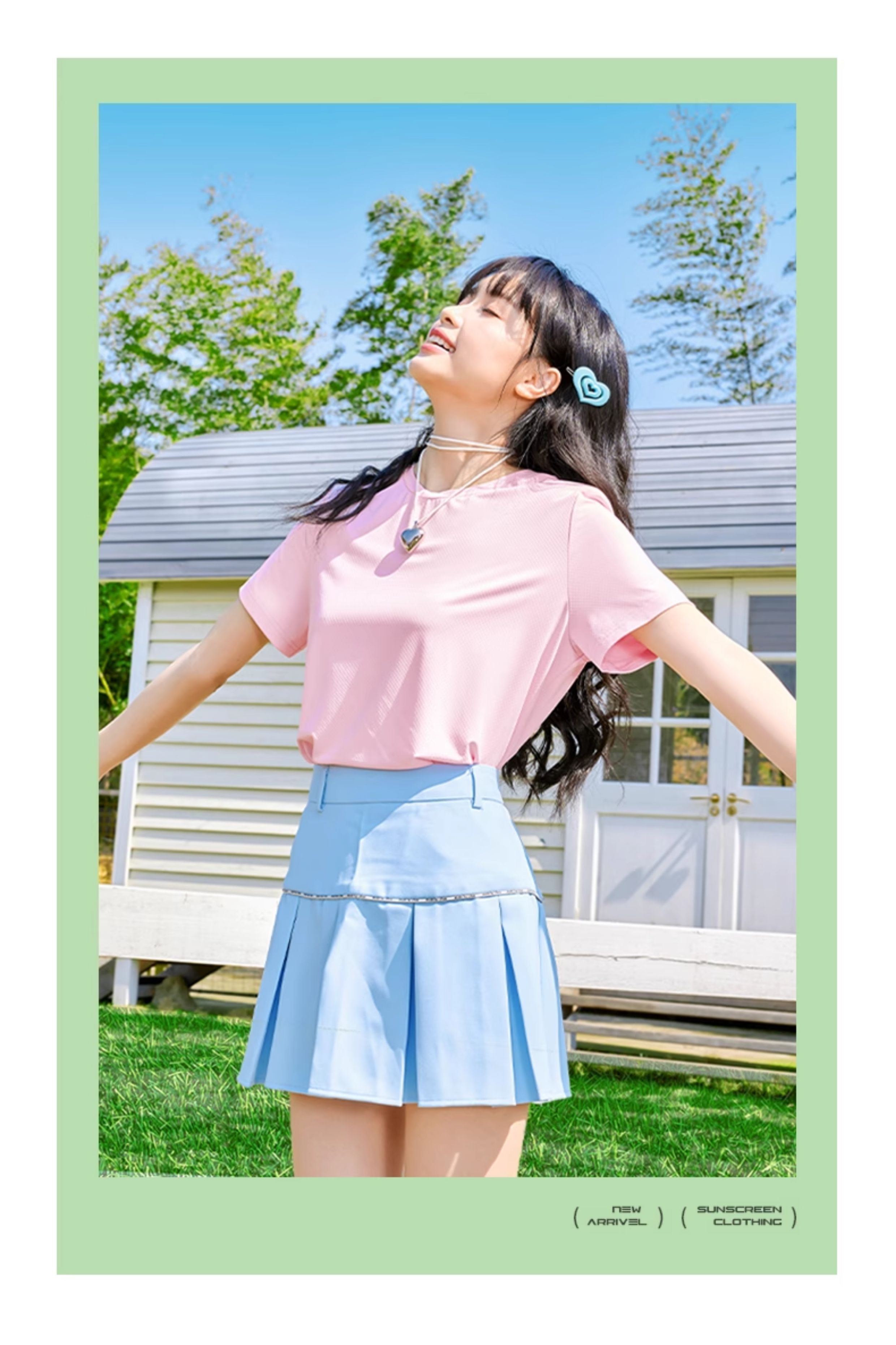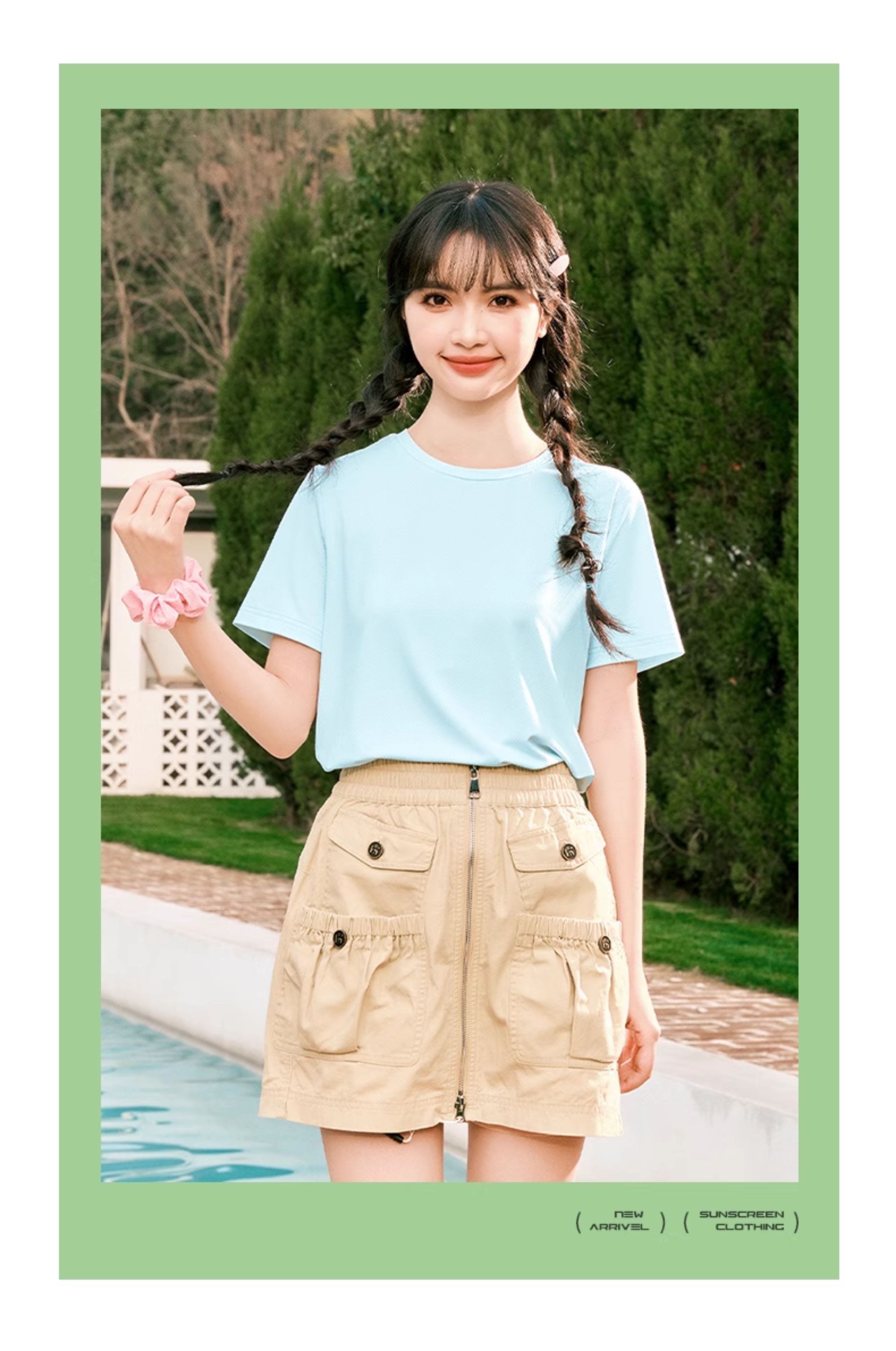 Jeanswest Ice Silk Short Sleeve Women's 2025 New Summer Sun Protection Top Cool Breathable Mesh Sports Quick-Dry T-Shirt X