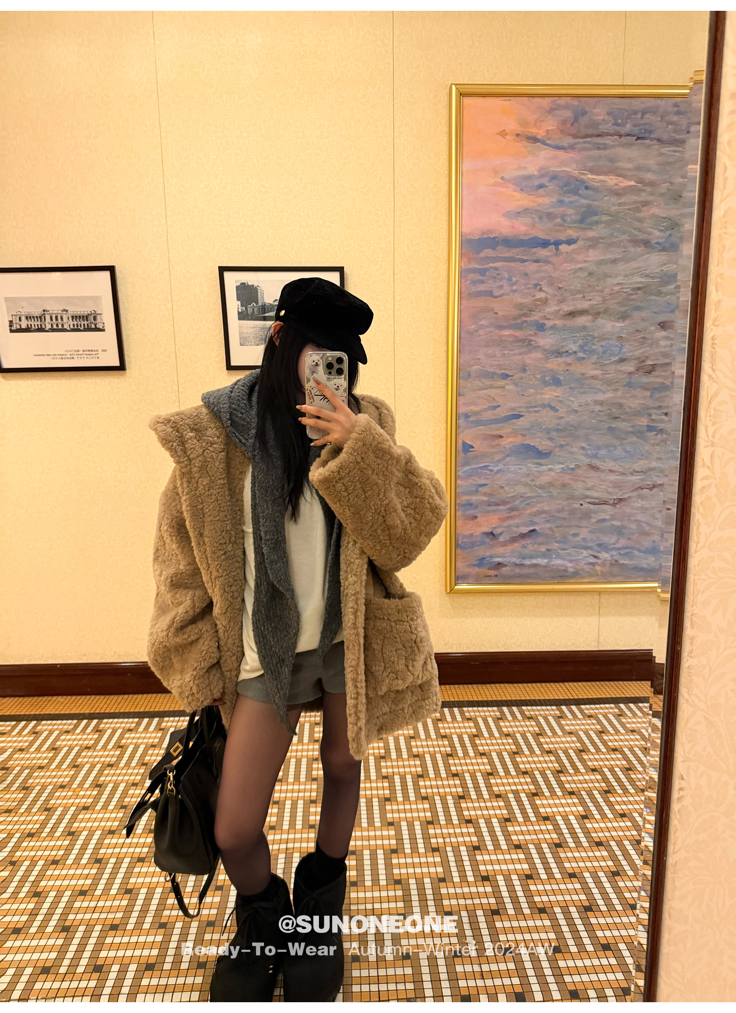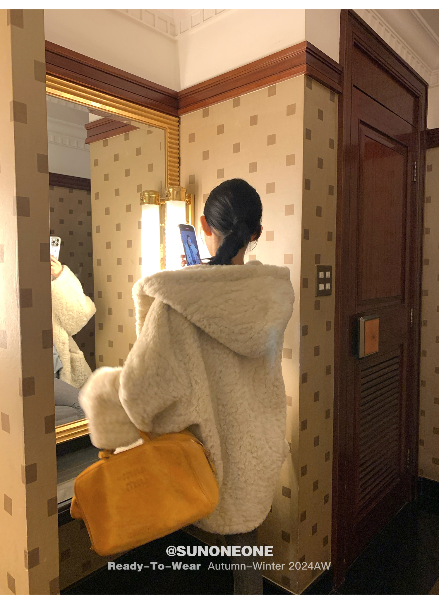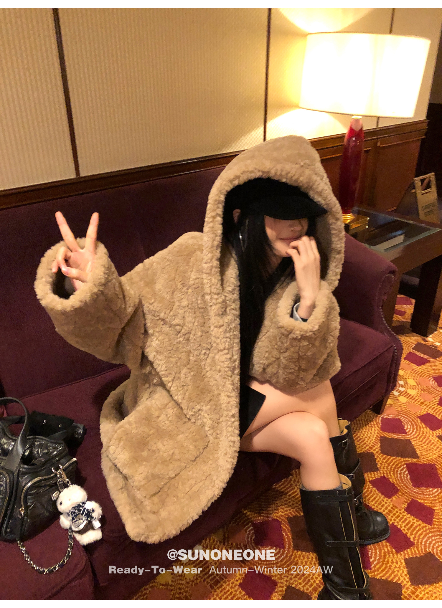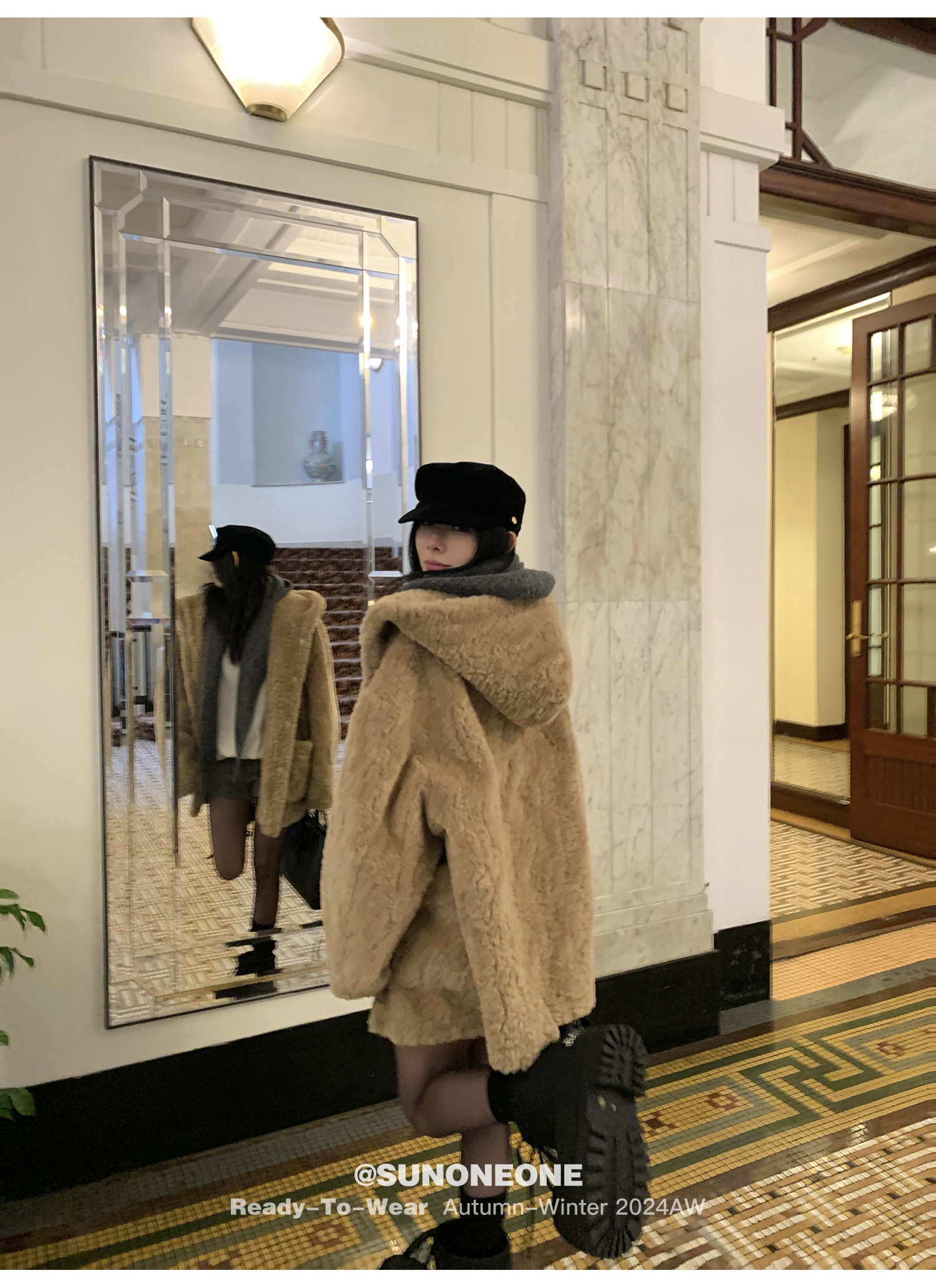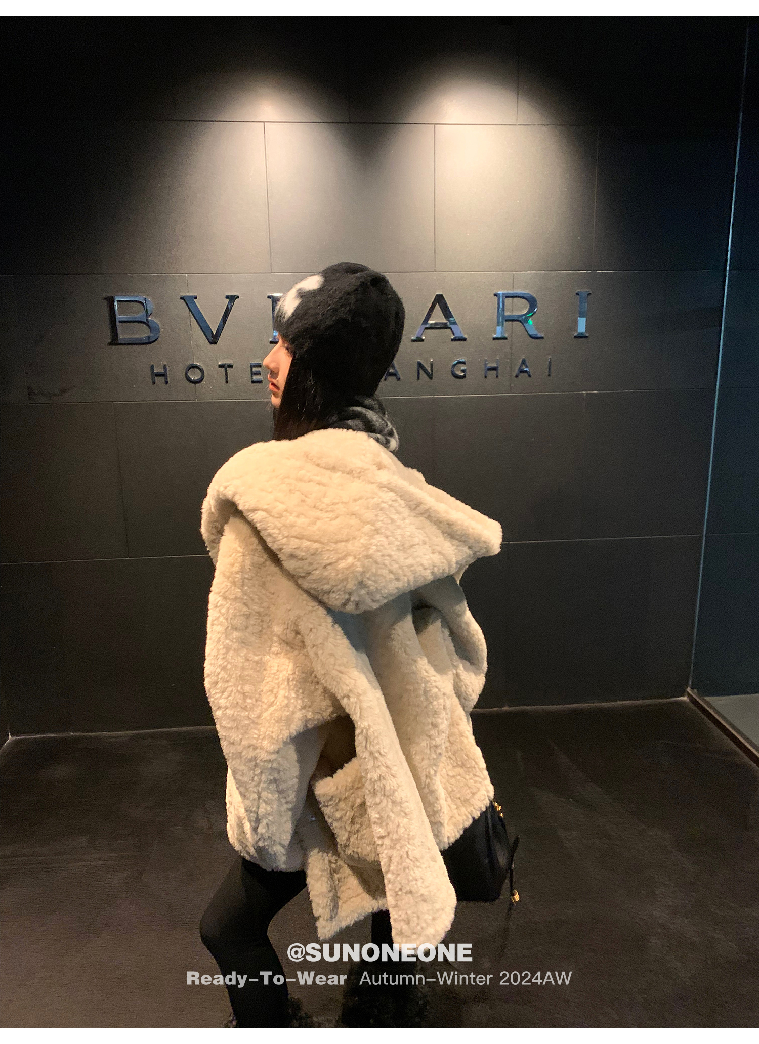 Sunoneone Teddy Velvet 2.0 Cape Short Coat Women's Autumn and Winter New Style Plush Fur Integrated Woolen Coat