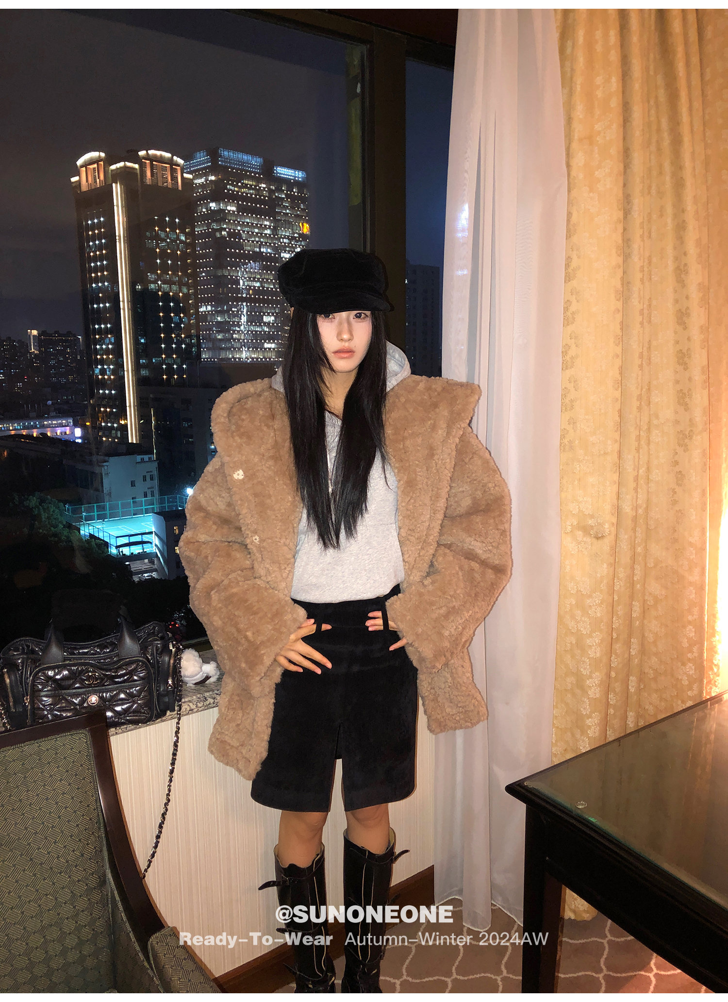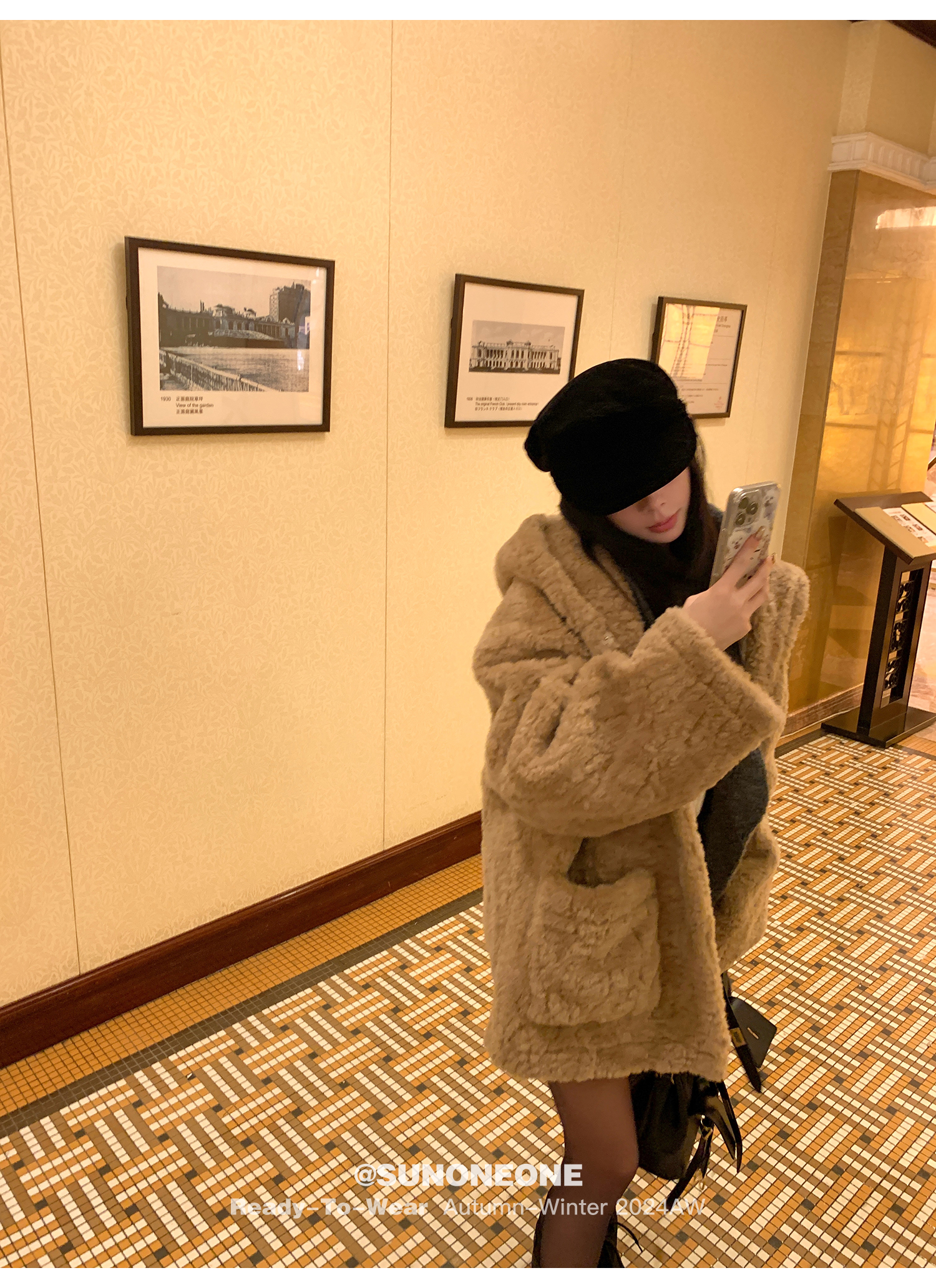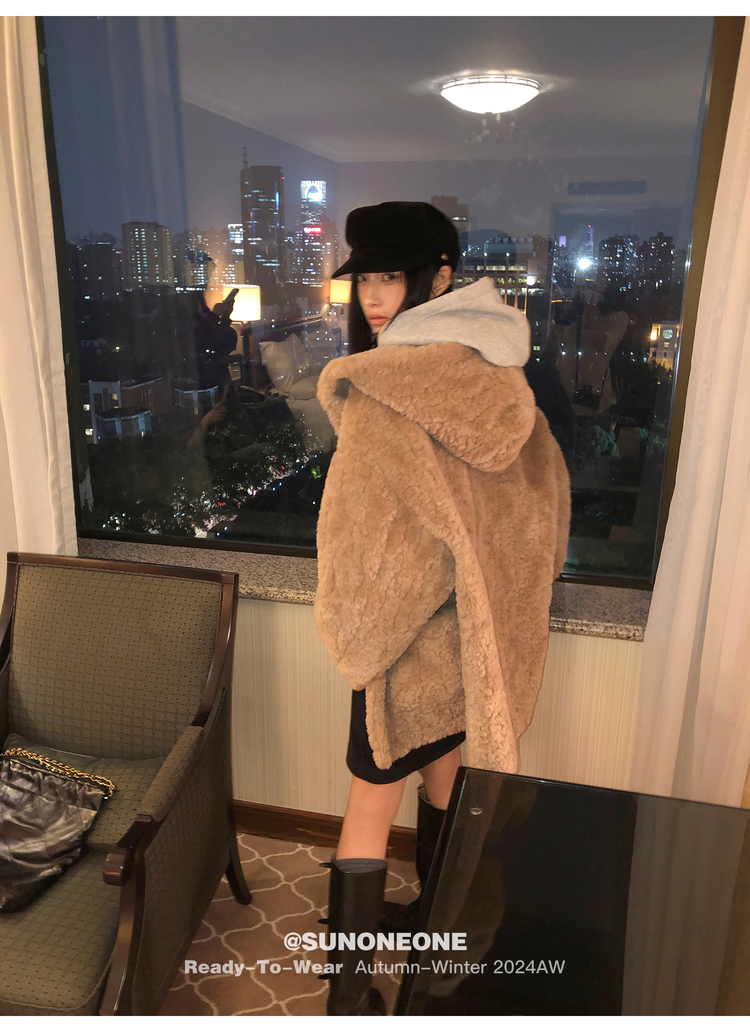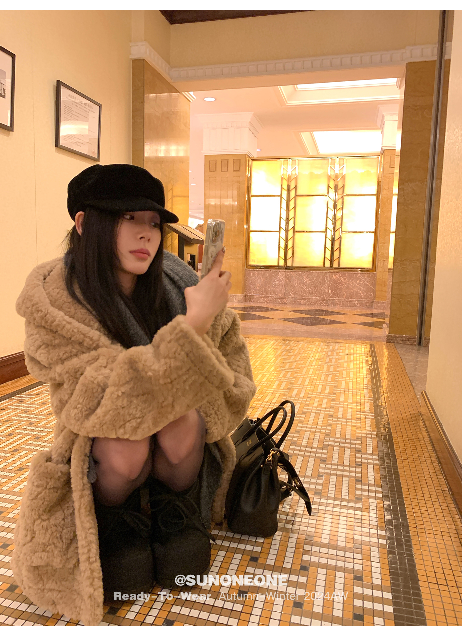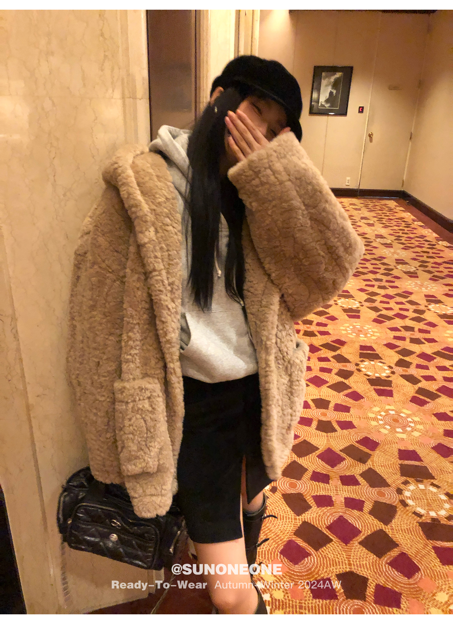 Sunoneone Teddy Velvet 2.0 Cape Short Coat Women's Autumn and Winter New Style Plush Fur Integrated Woolen Coat