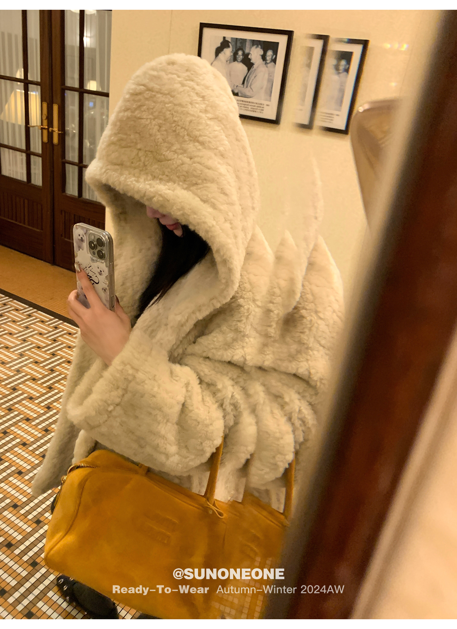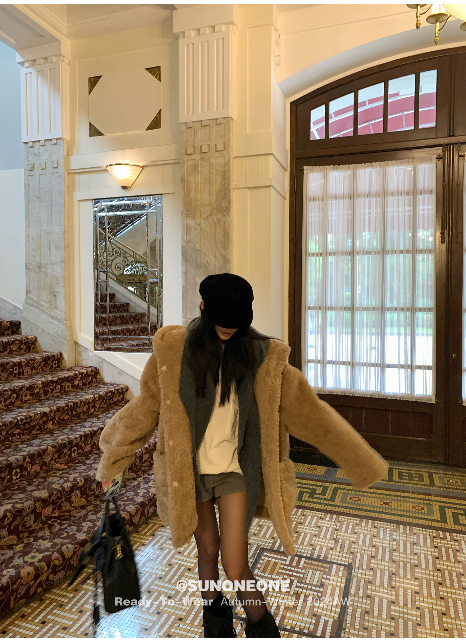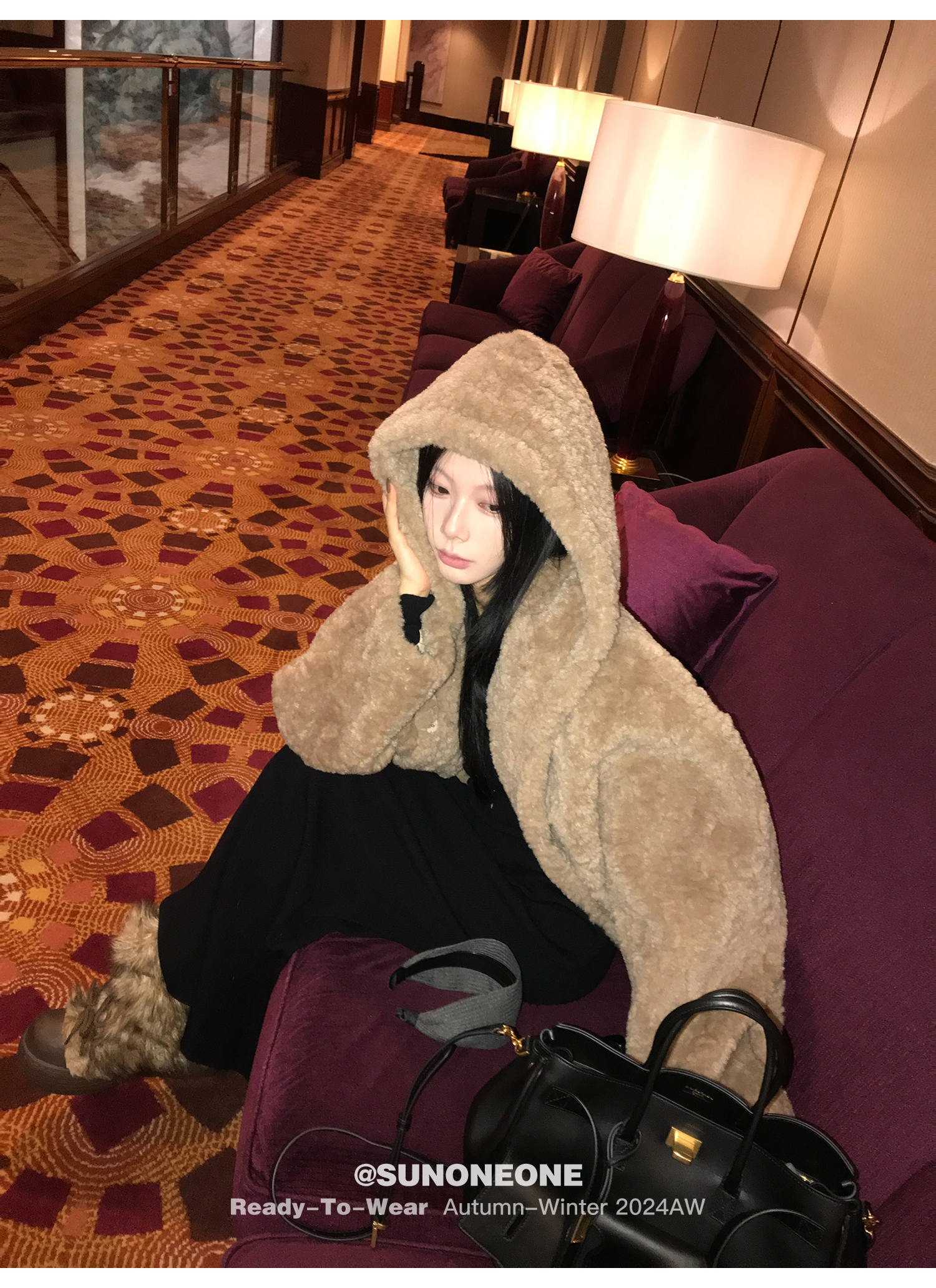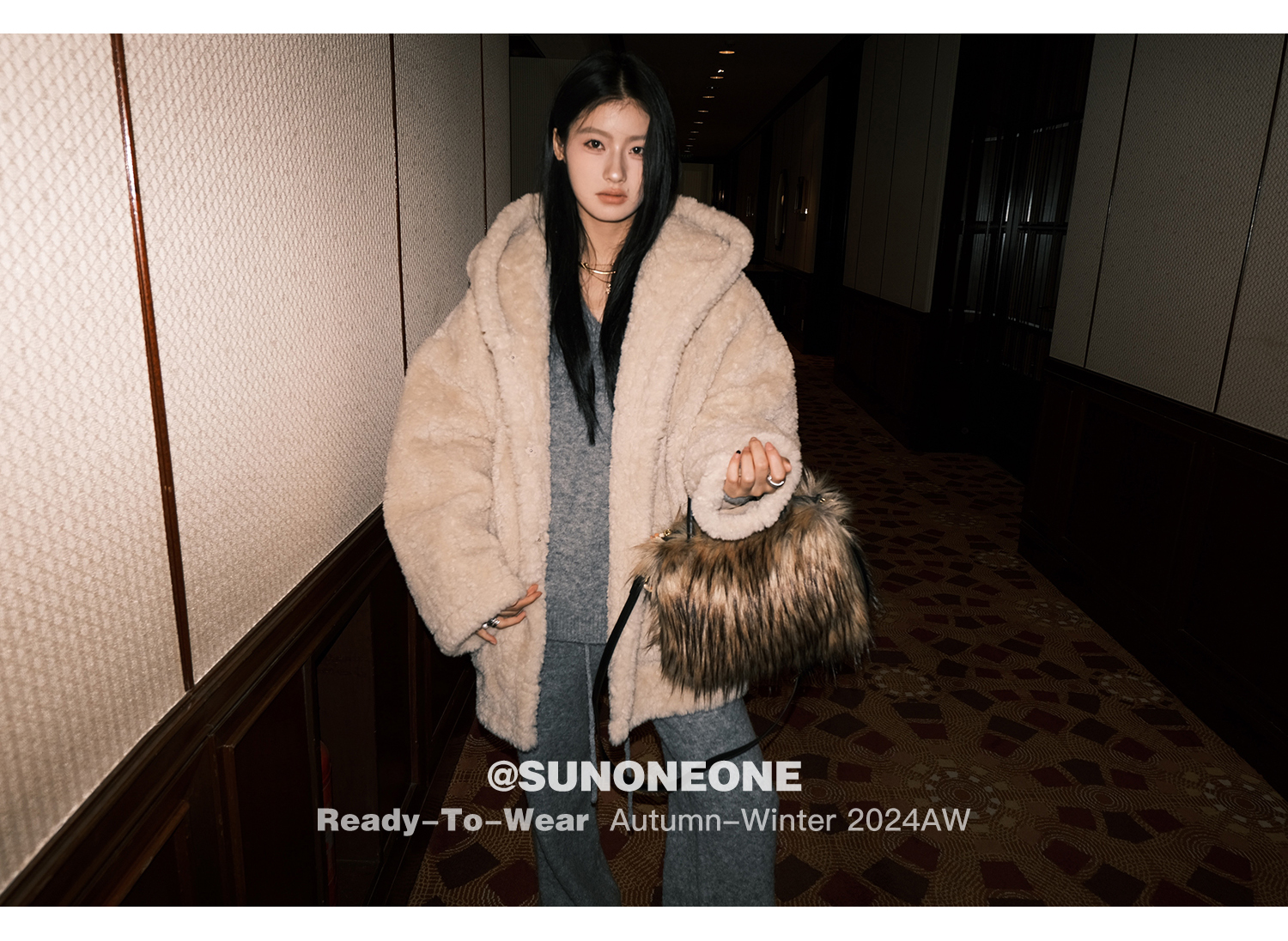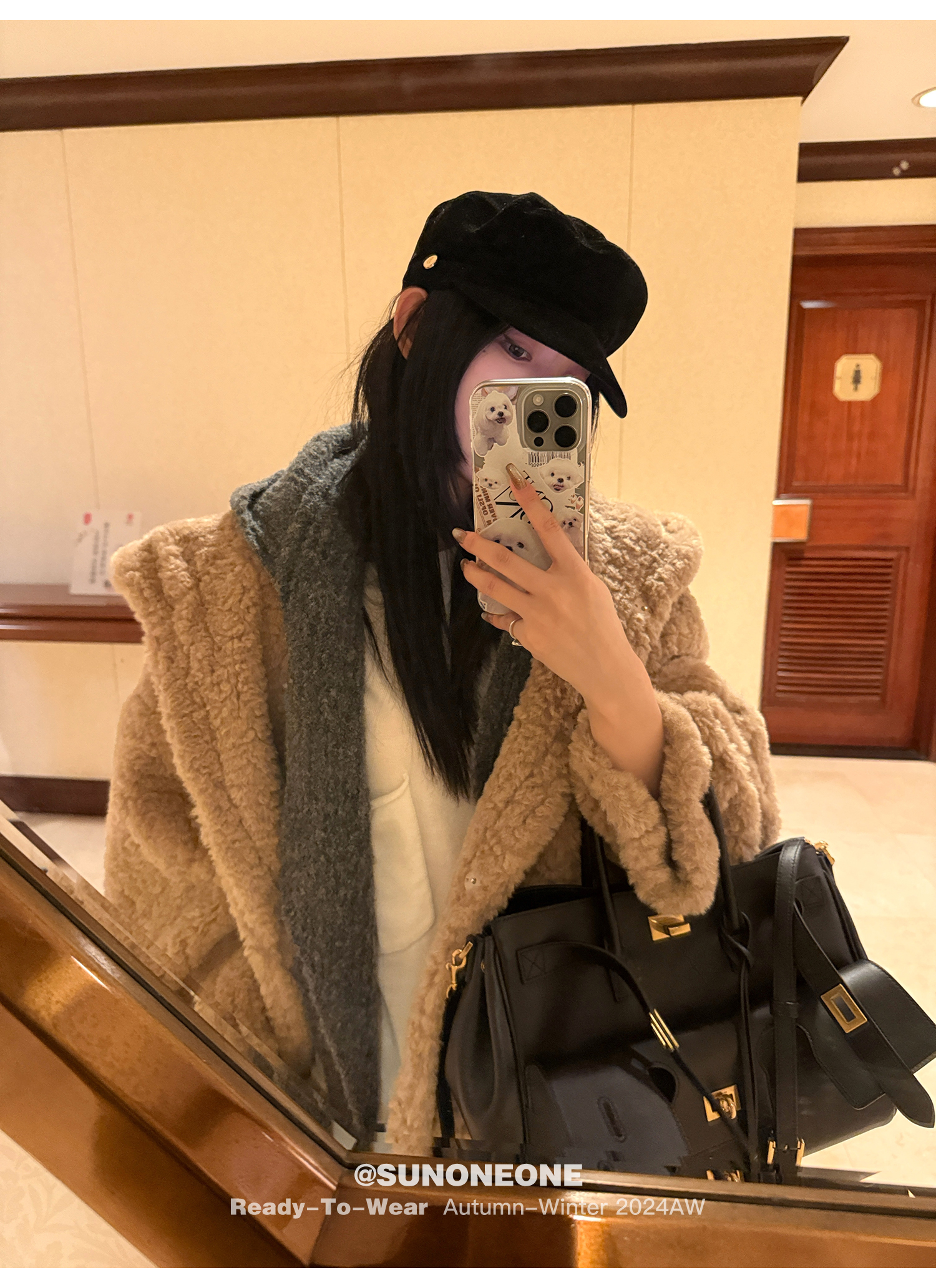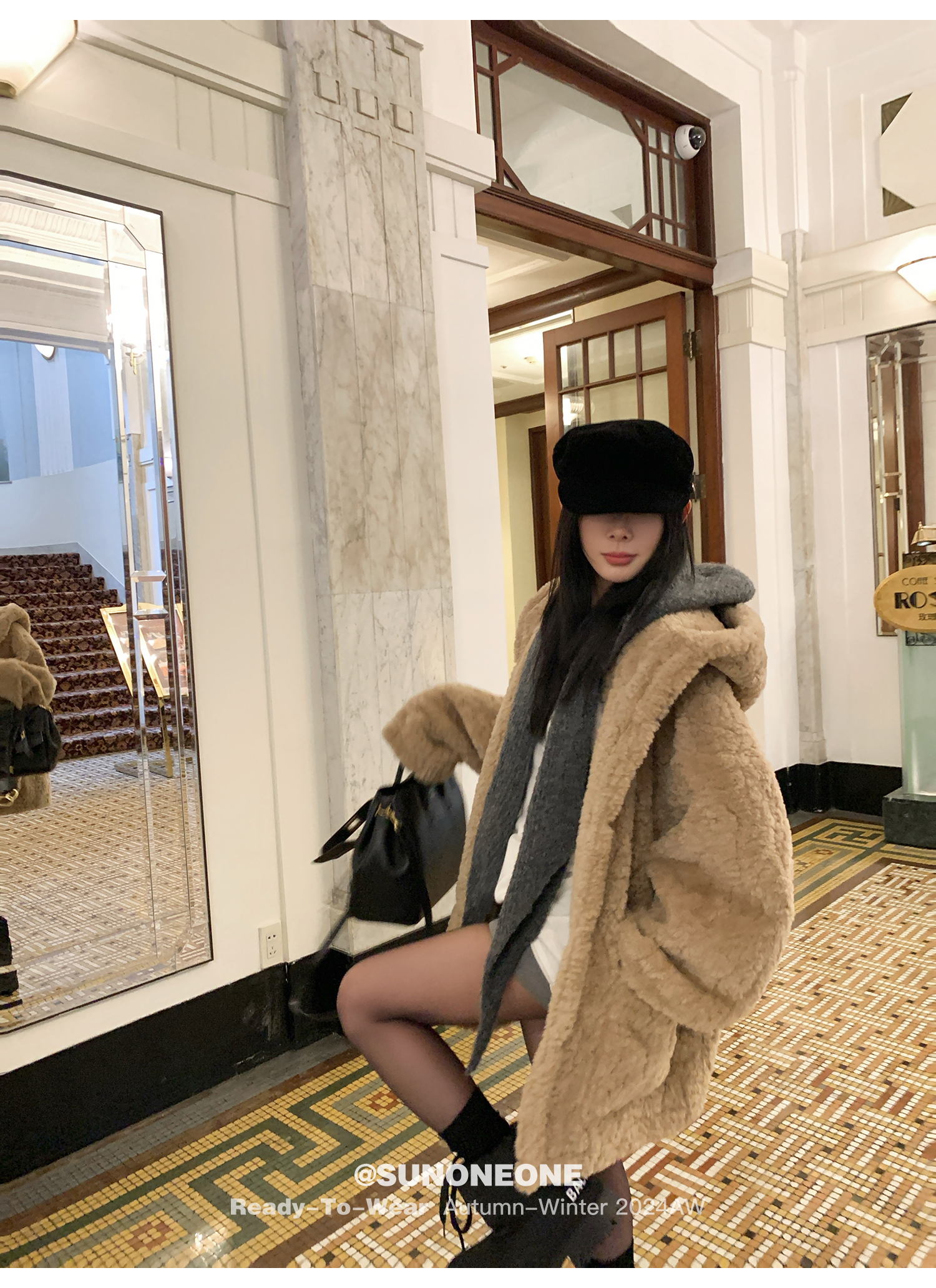 Sunoneone Teddy Velvet 2.0 Cape Short Coat Women's Autumn and Winter New Style Plush Fur Integrated Woolen Coat