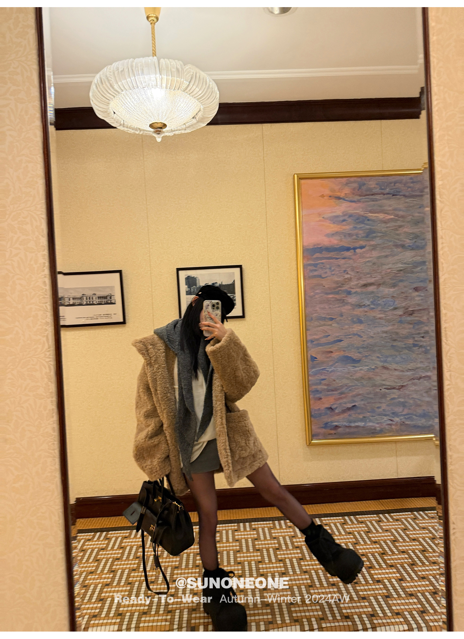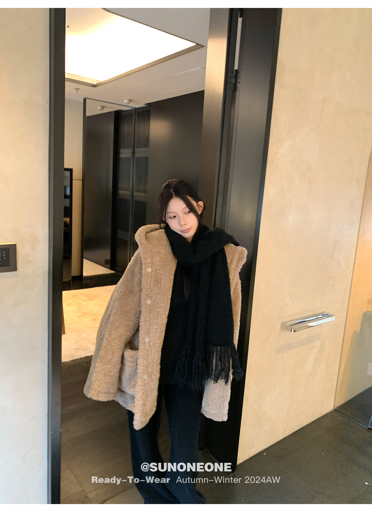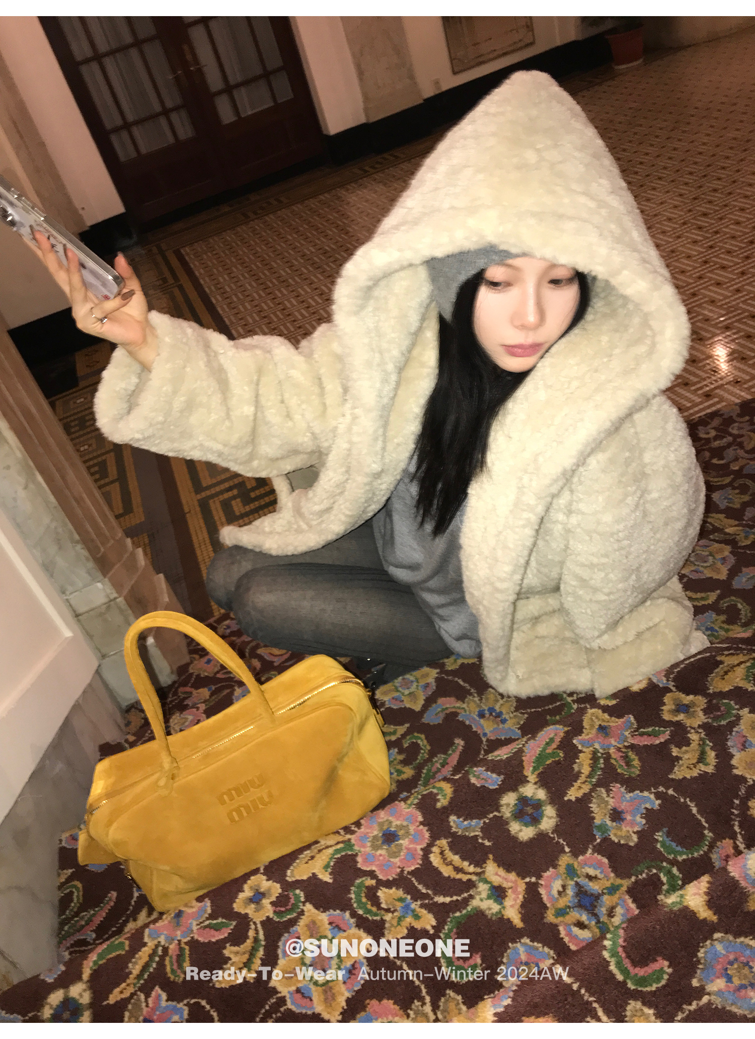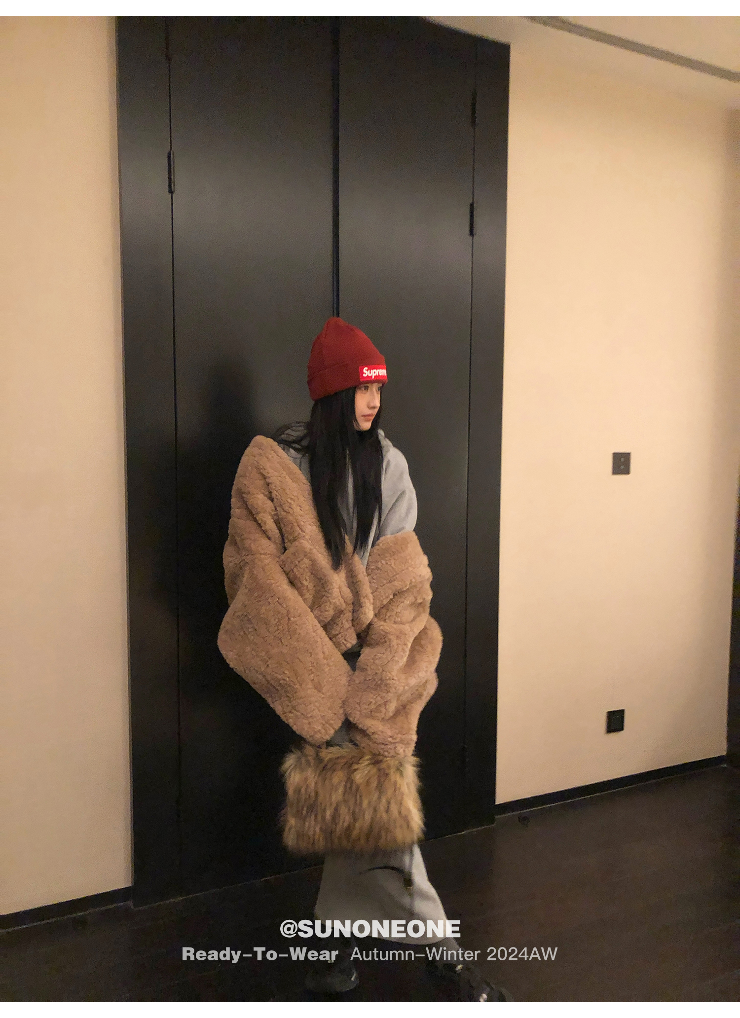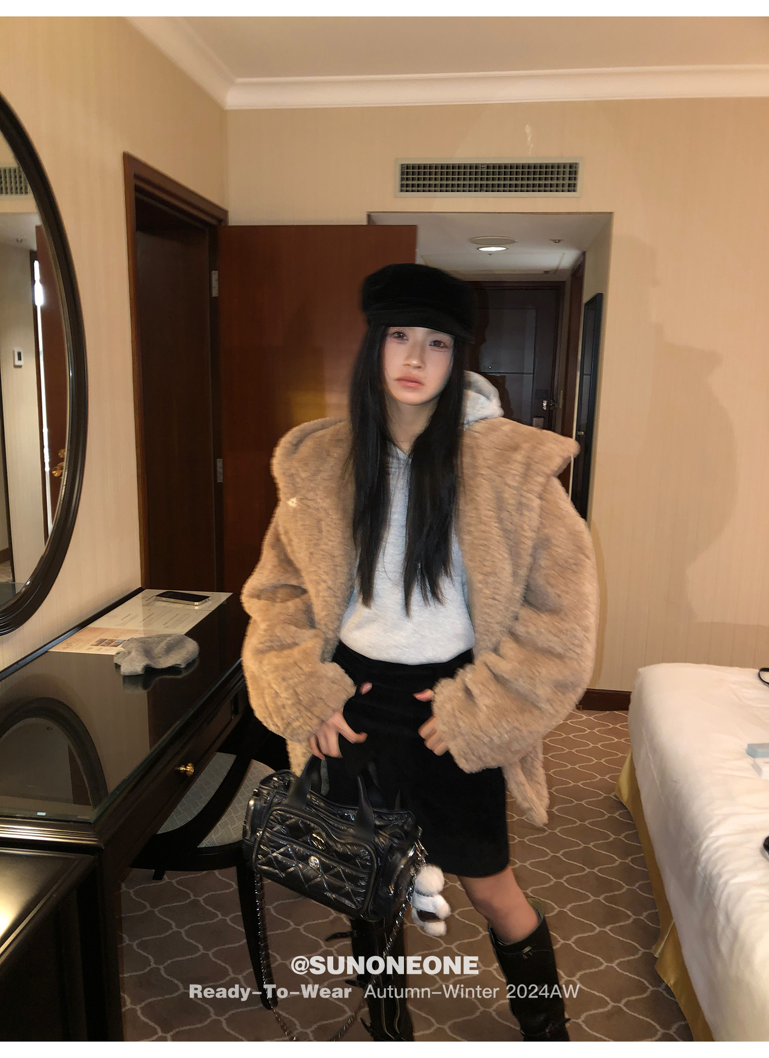 Sunoneone Teddy Velvet 2.0 Cape Short Coat Women's Autumn and Winter New Style Plush Fur Integrated Woolen Coat
