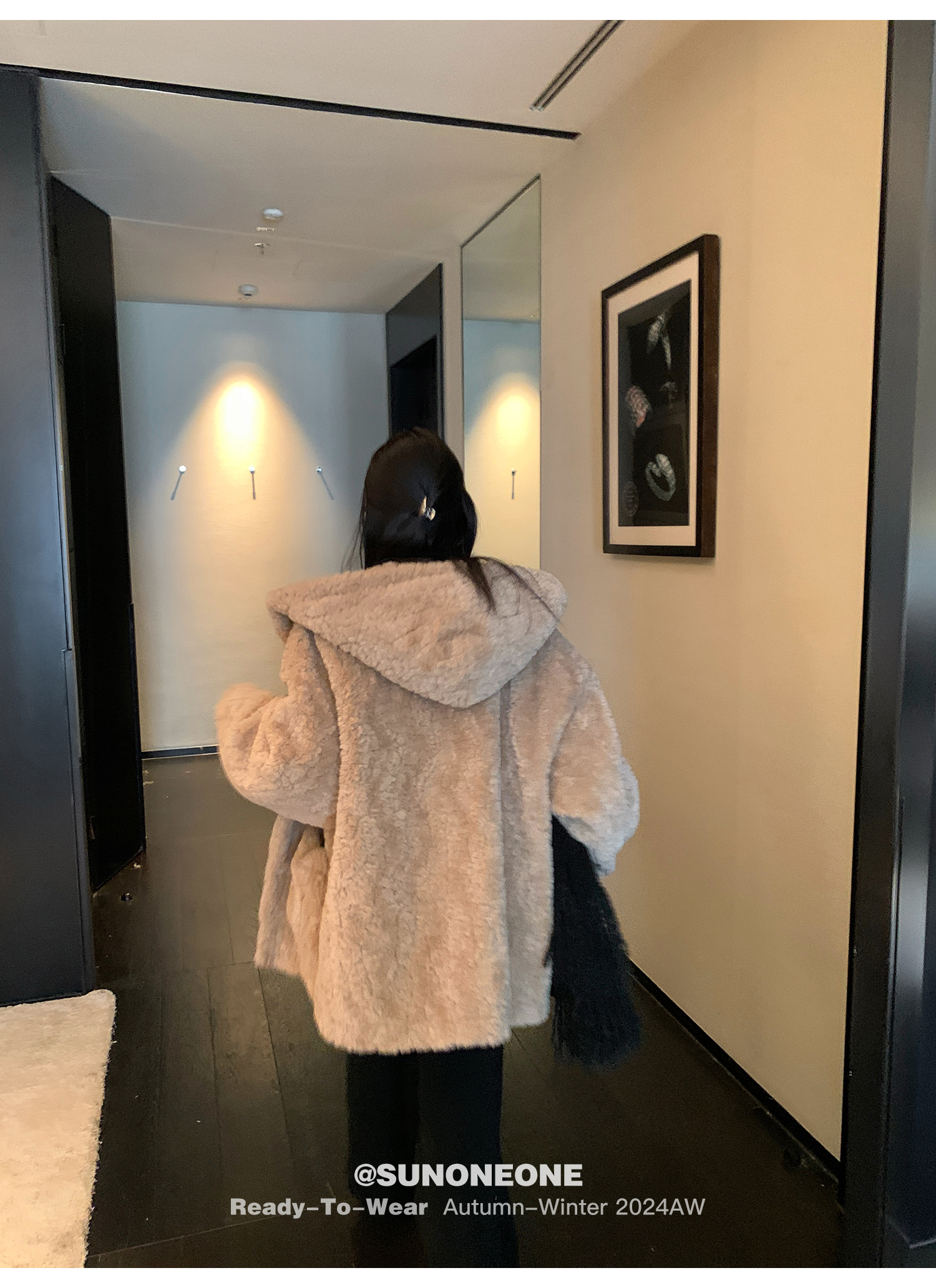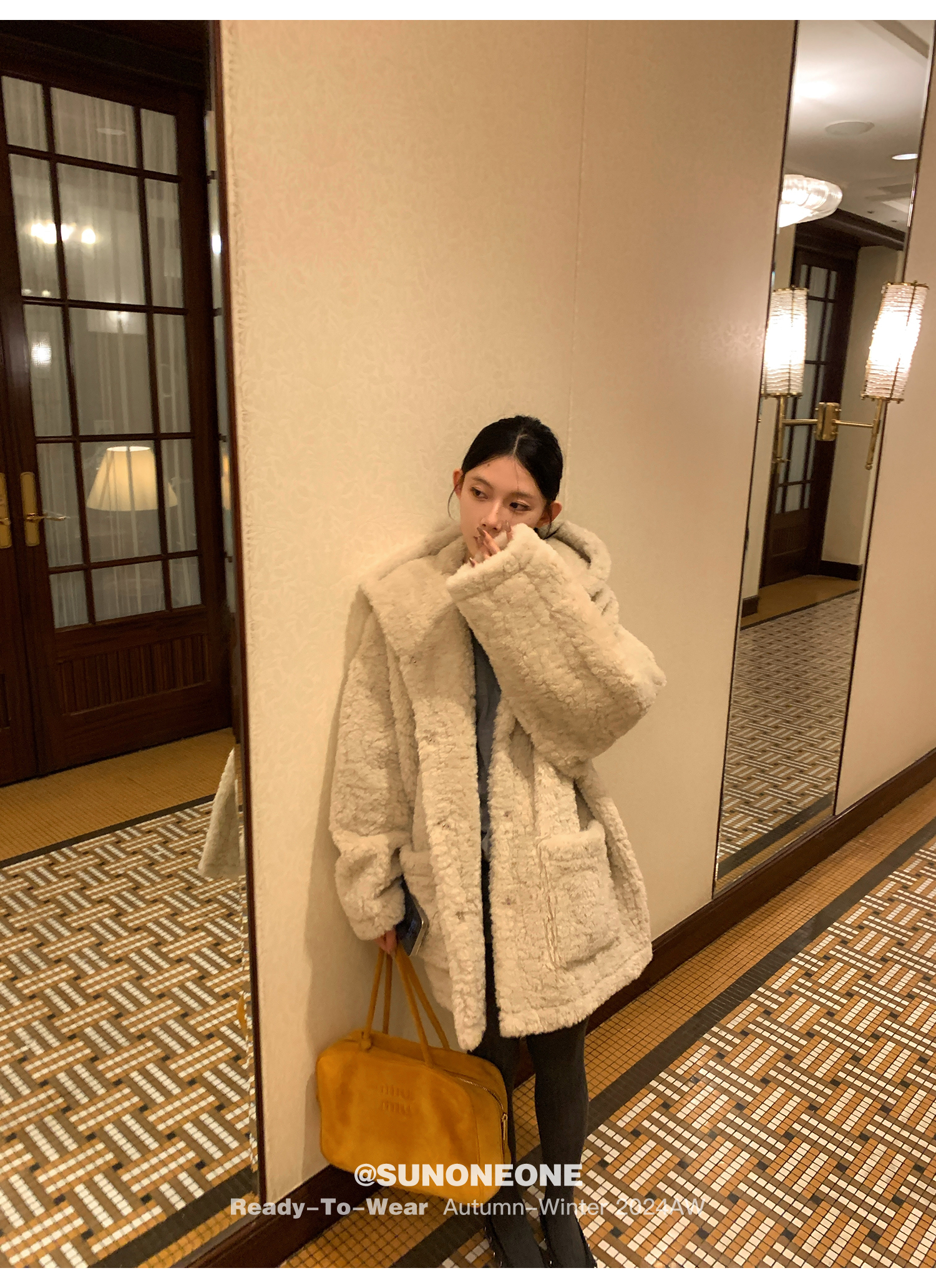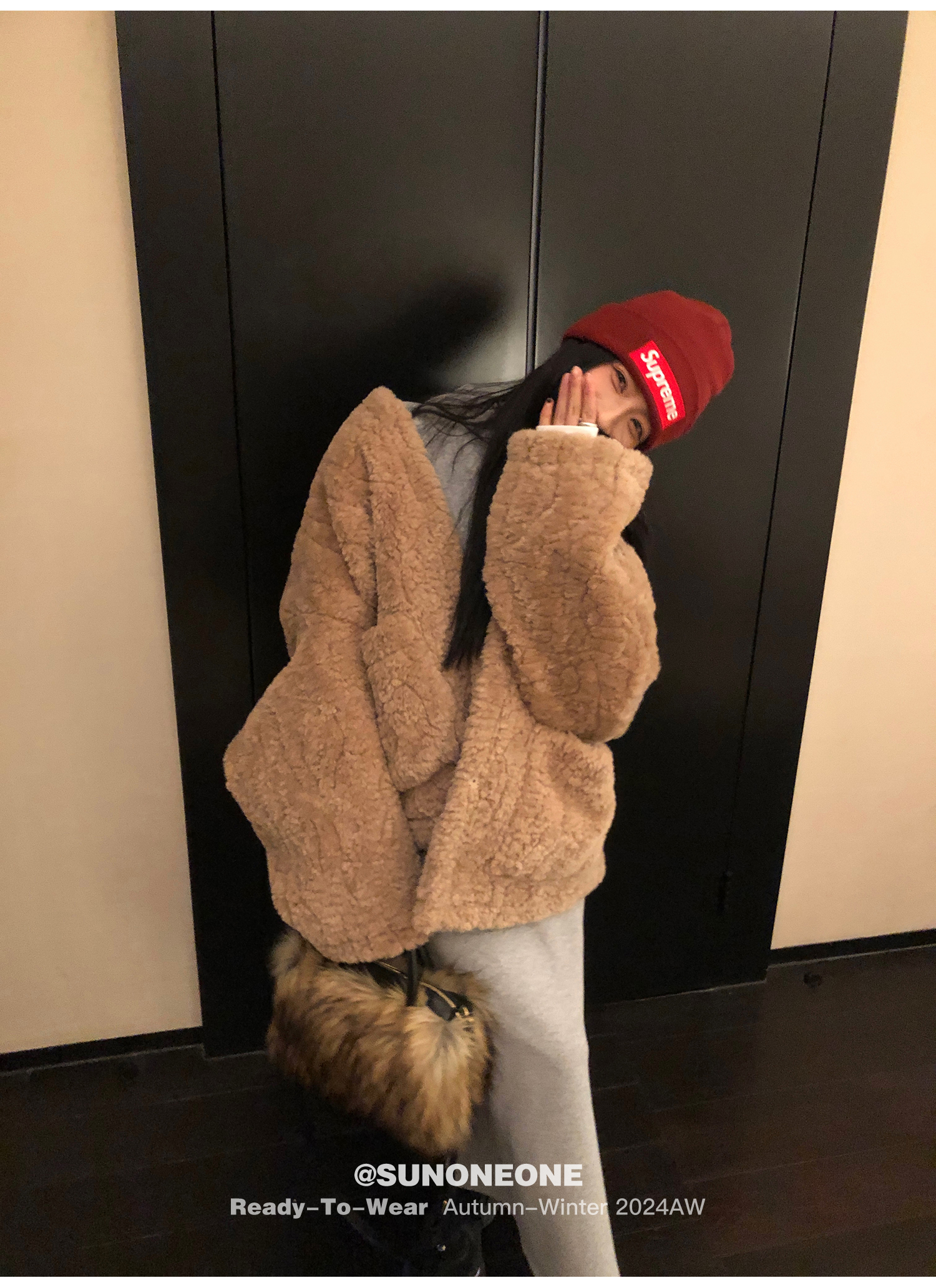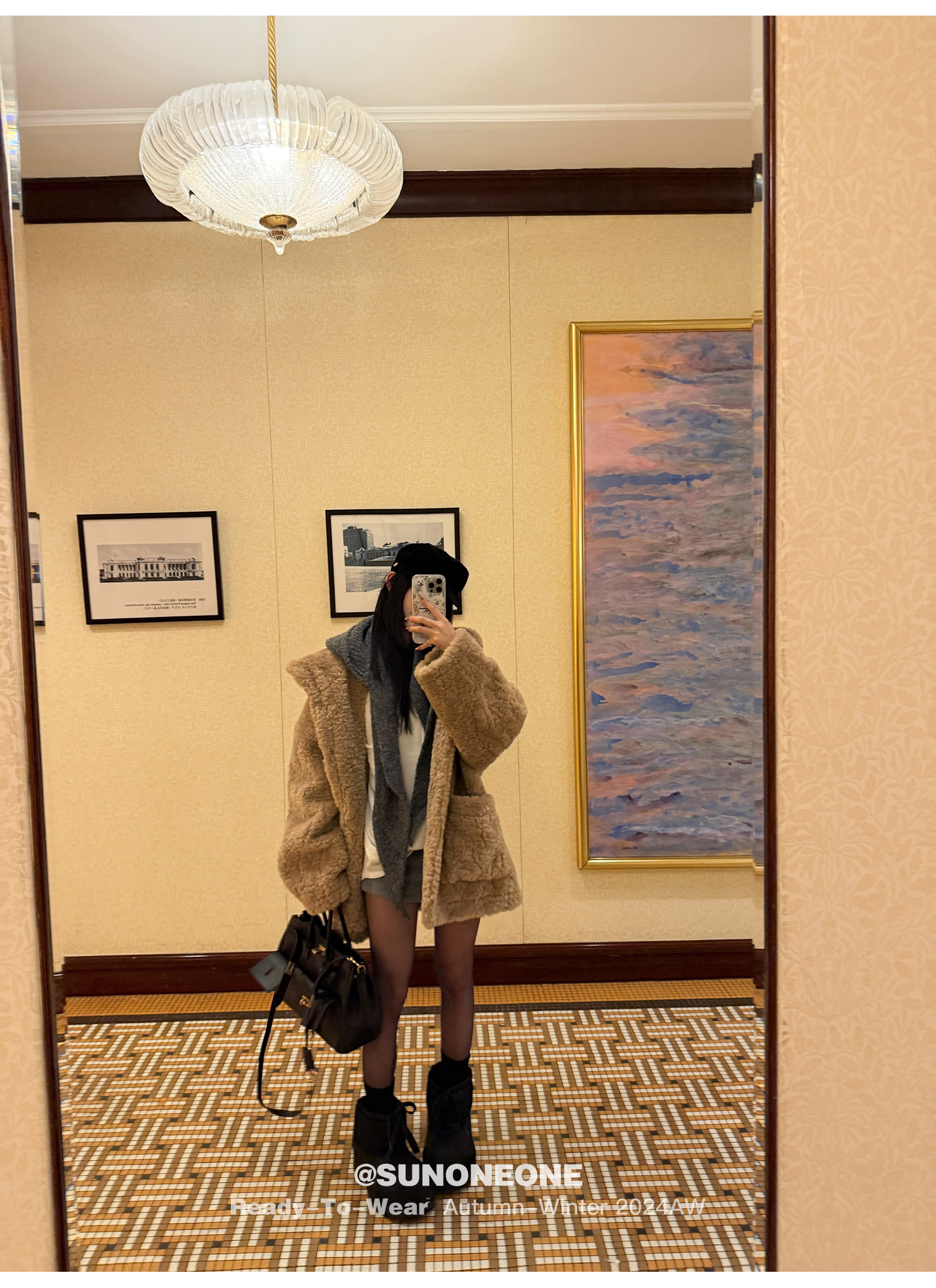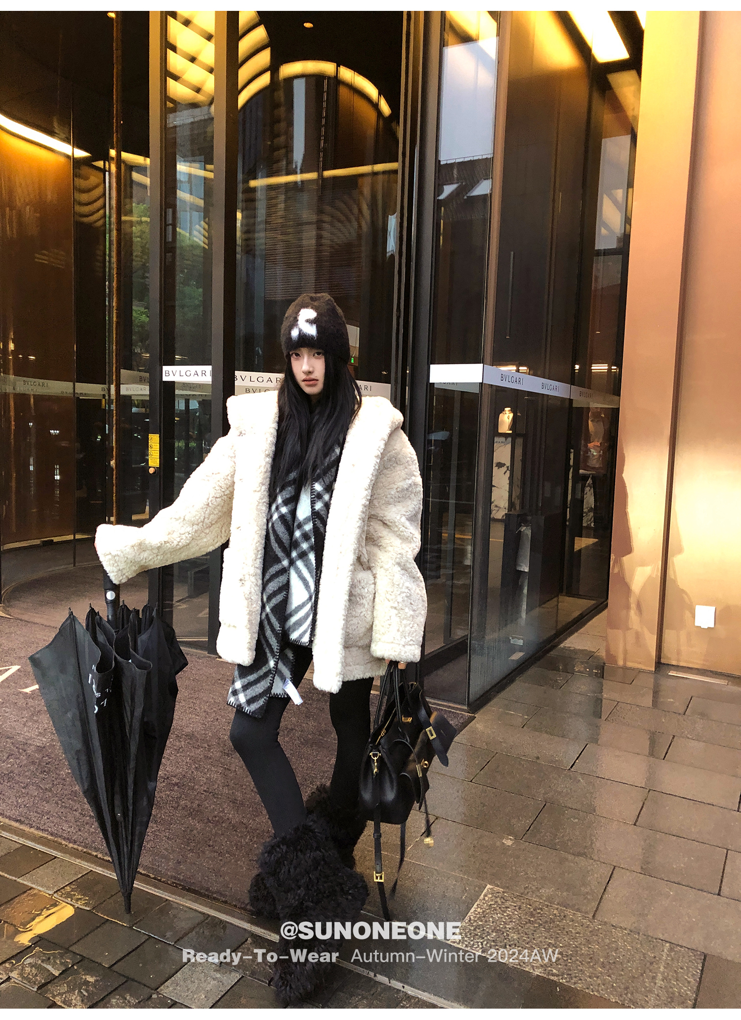 Sunoneone Teddy Velvet 2.0 Cape Short Coat Women's Autumn and Winter New Style Plush Fur Integrated Woolen Coat