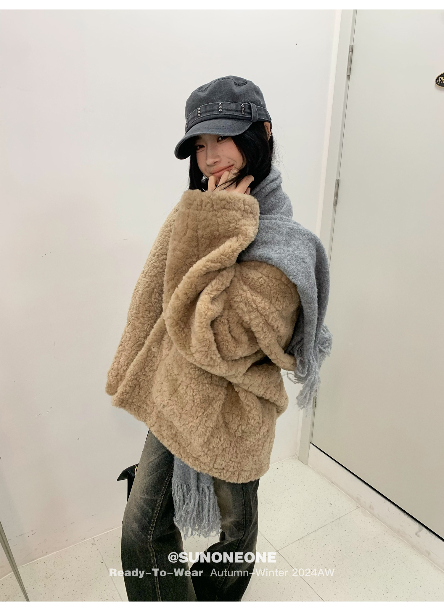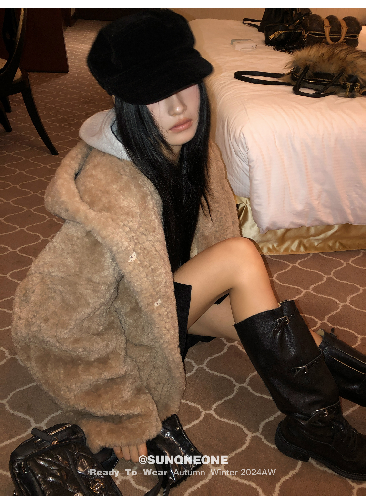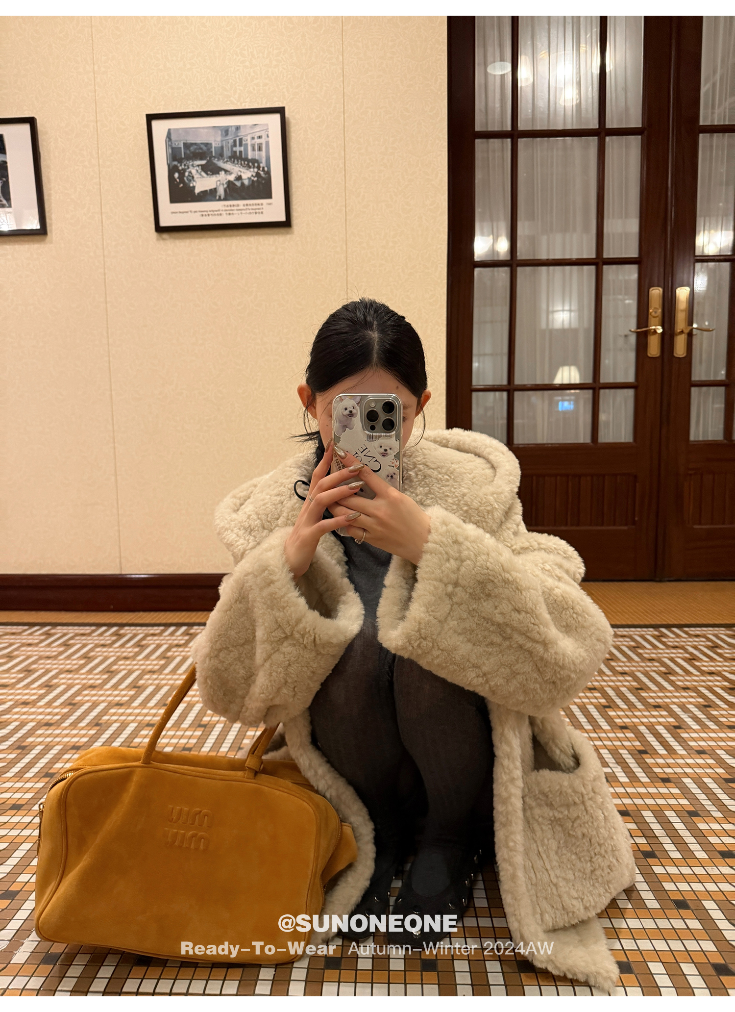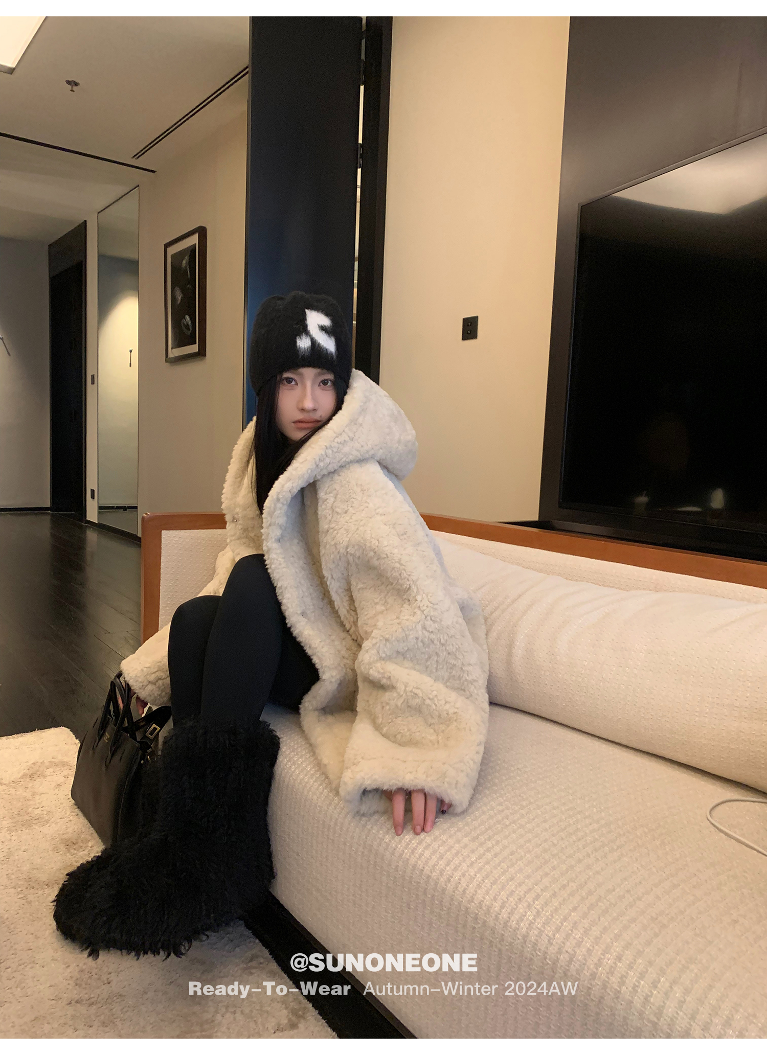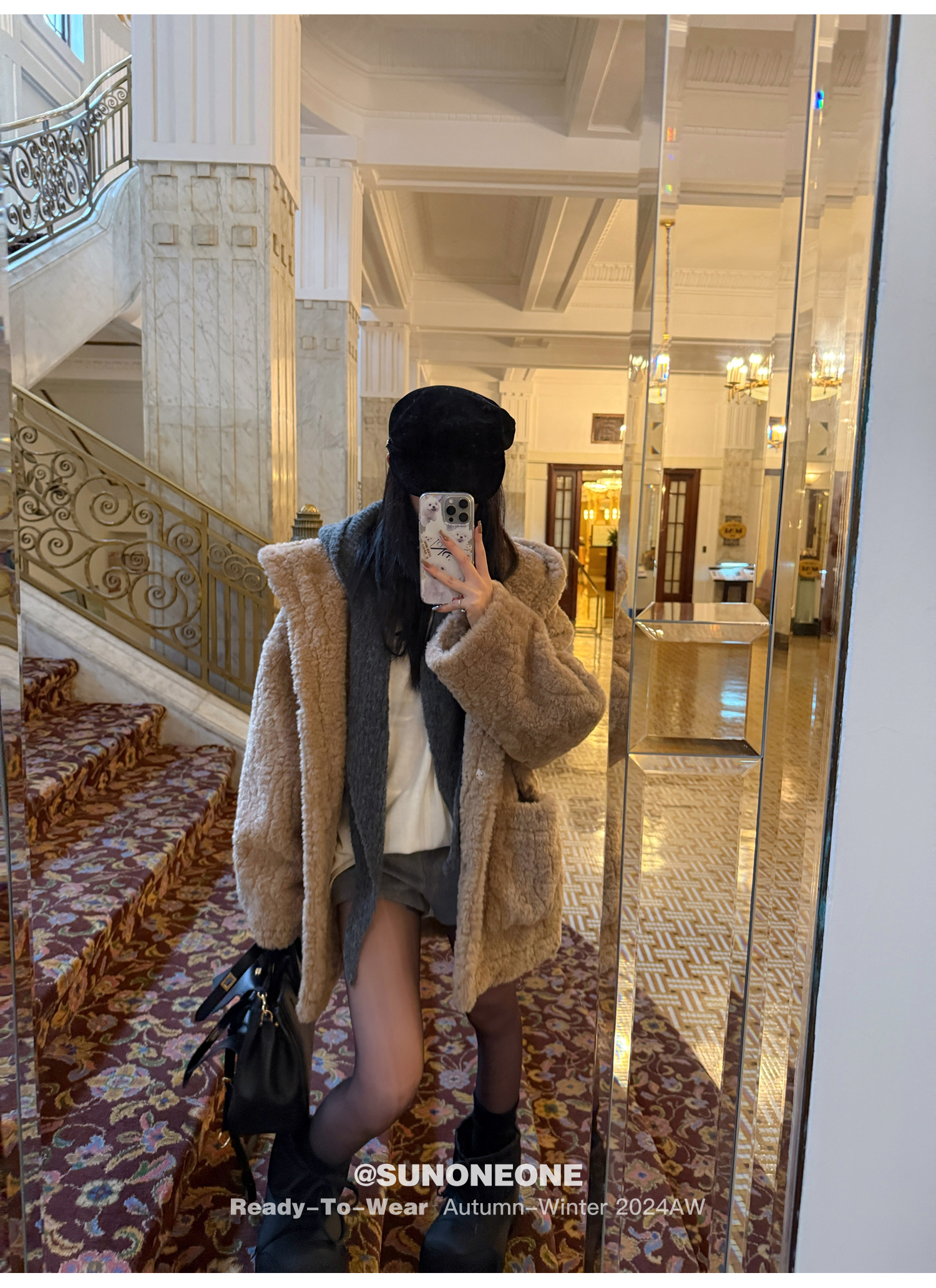 Sunoneone Teddy Velvet 2.0 Cape Short Coat Women's Autumn and Winter New Style Plush Fur Integrated Woolen Coat