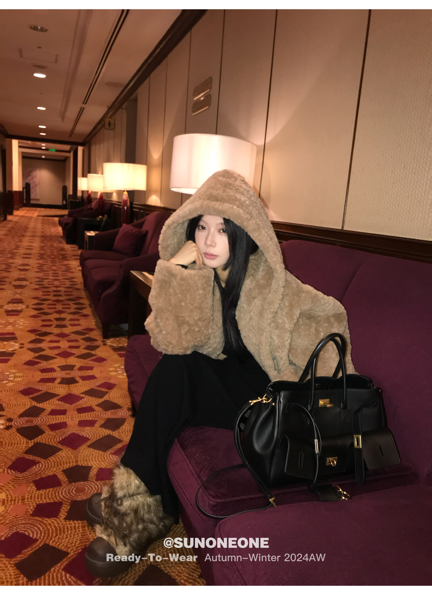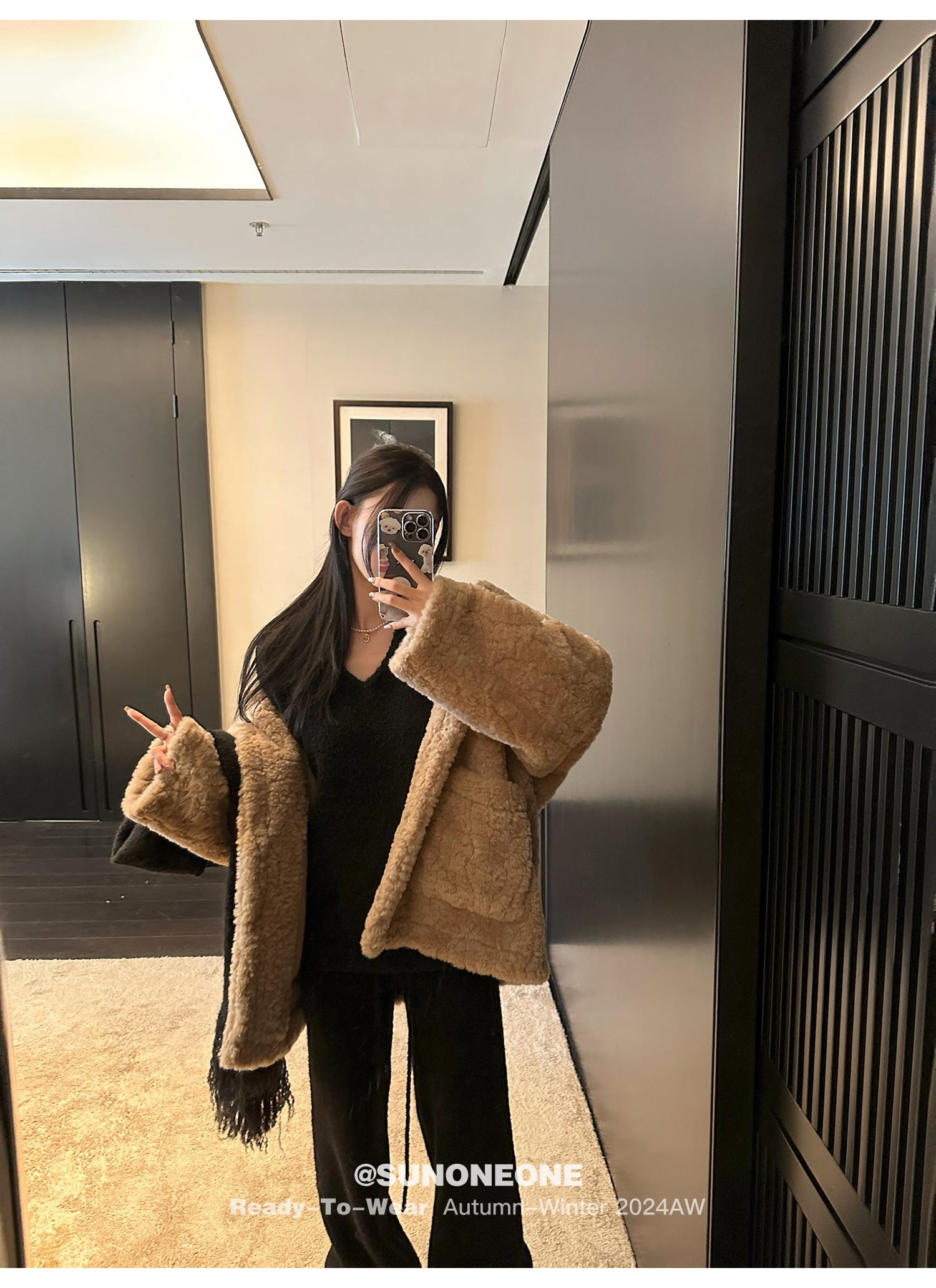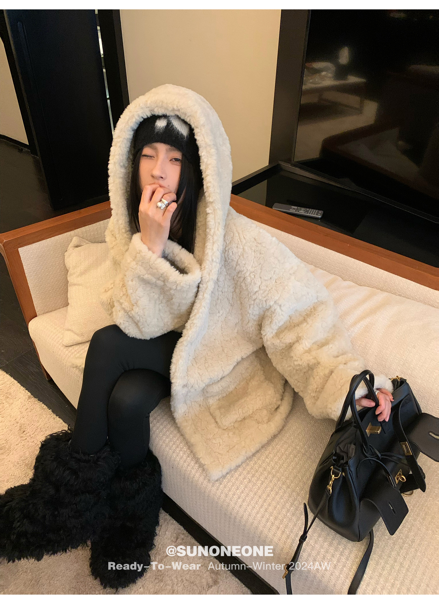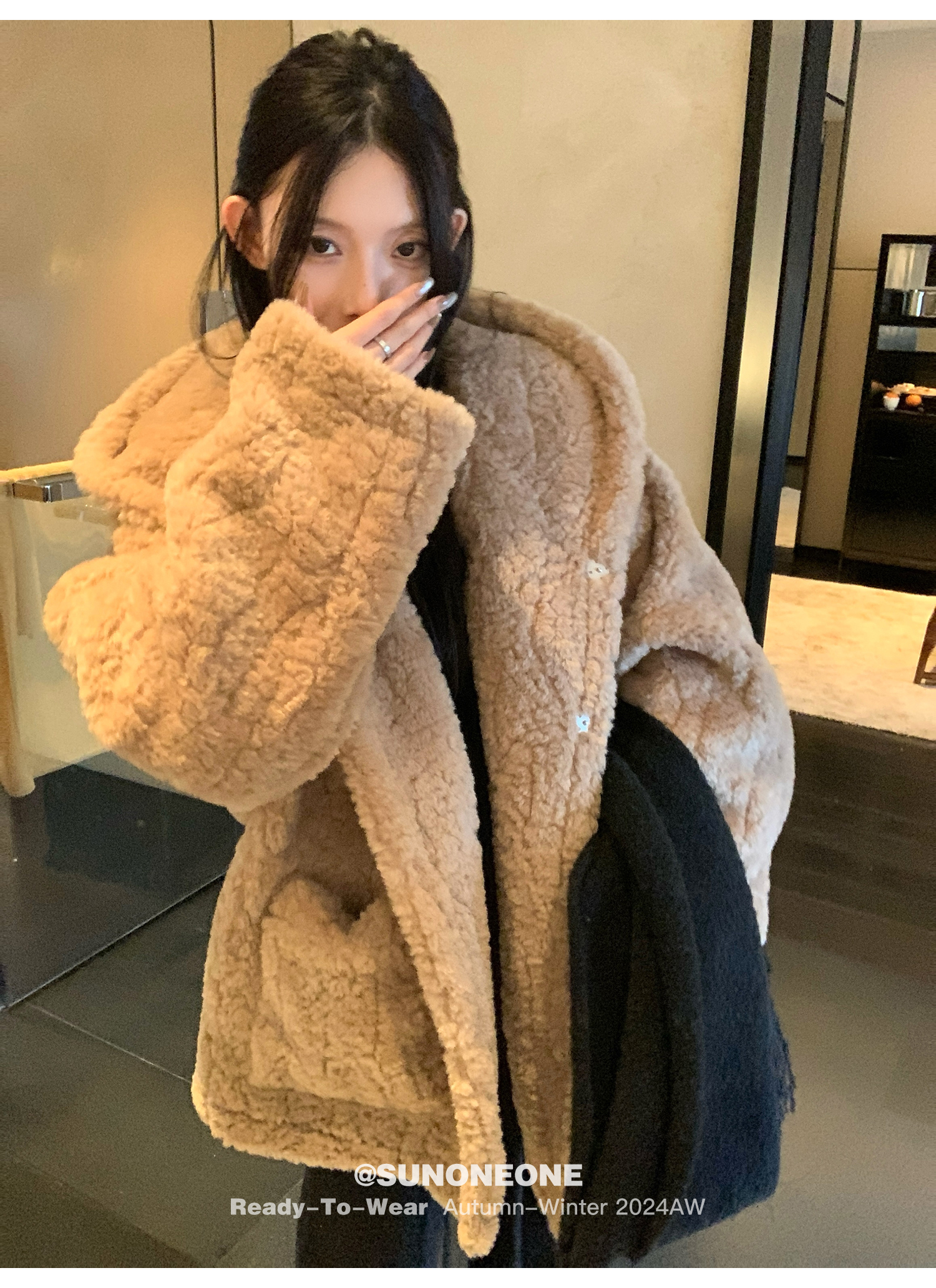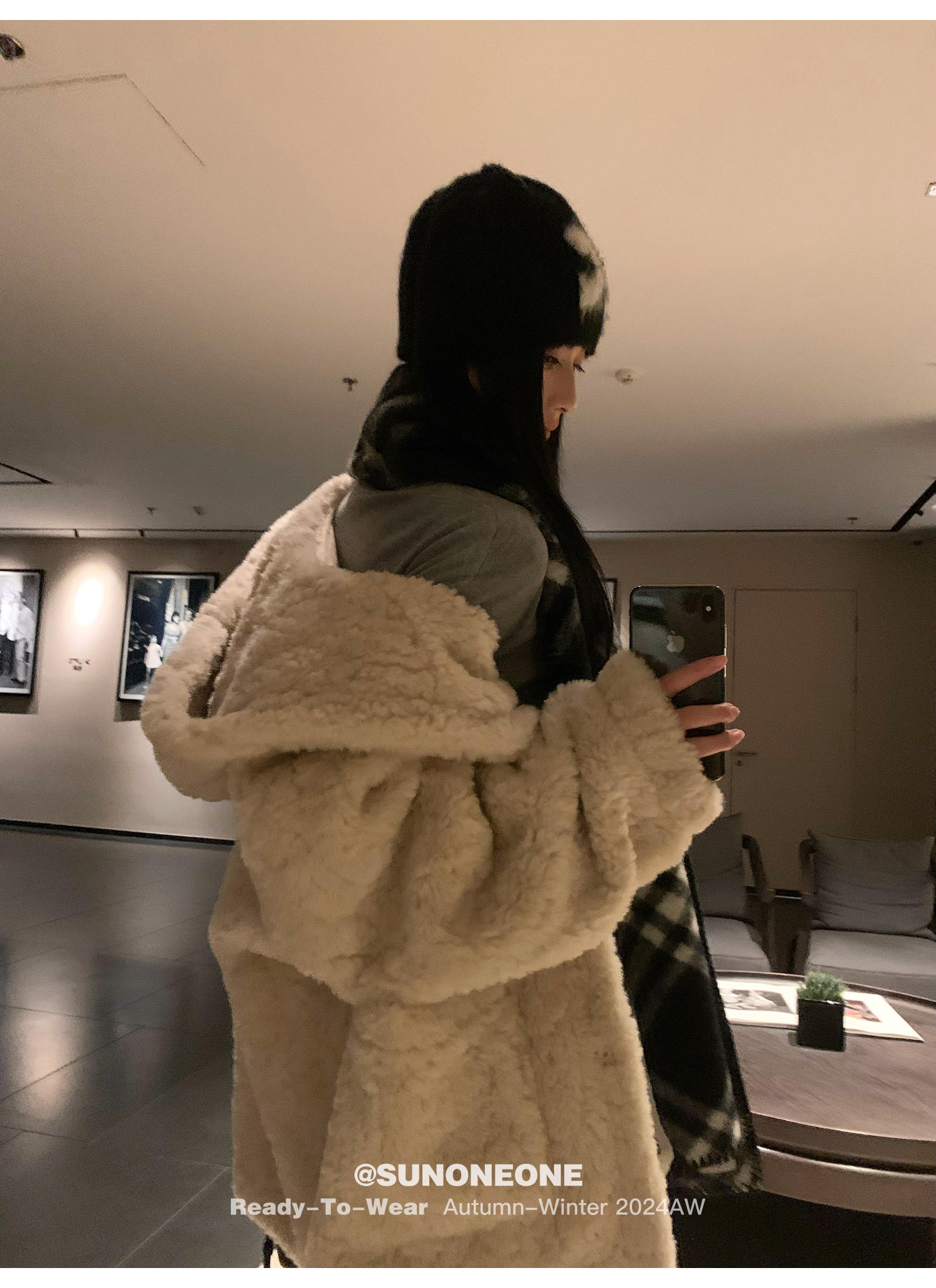 Sunoneone Teddy Velvet 2.0 Cape Short Coat Women's Autumn and Winter New Style Plush Fur Integrated Woolen Coat