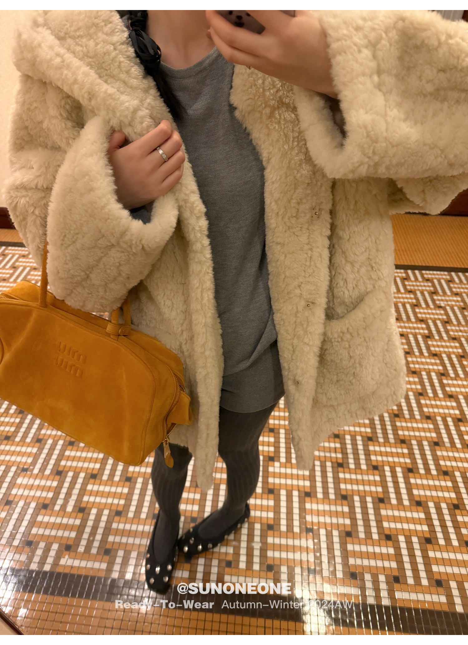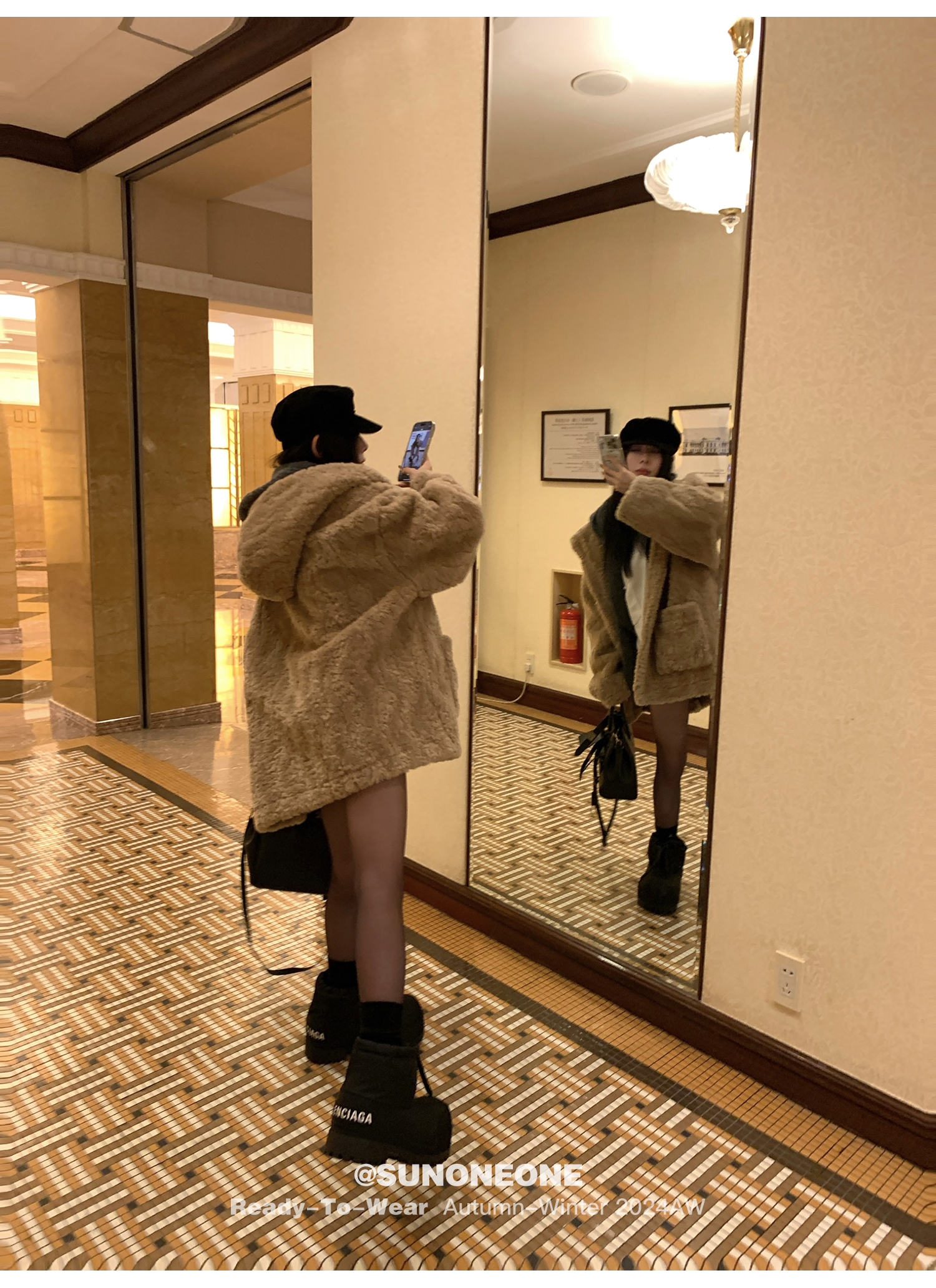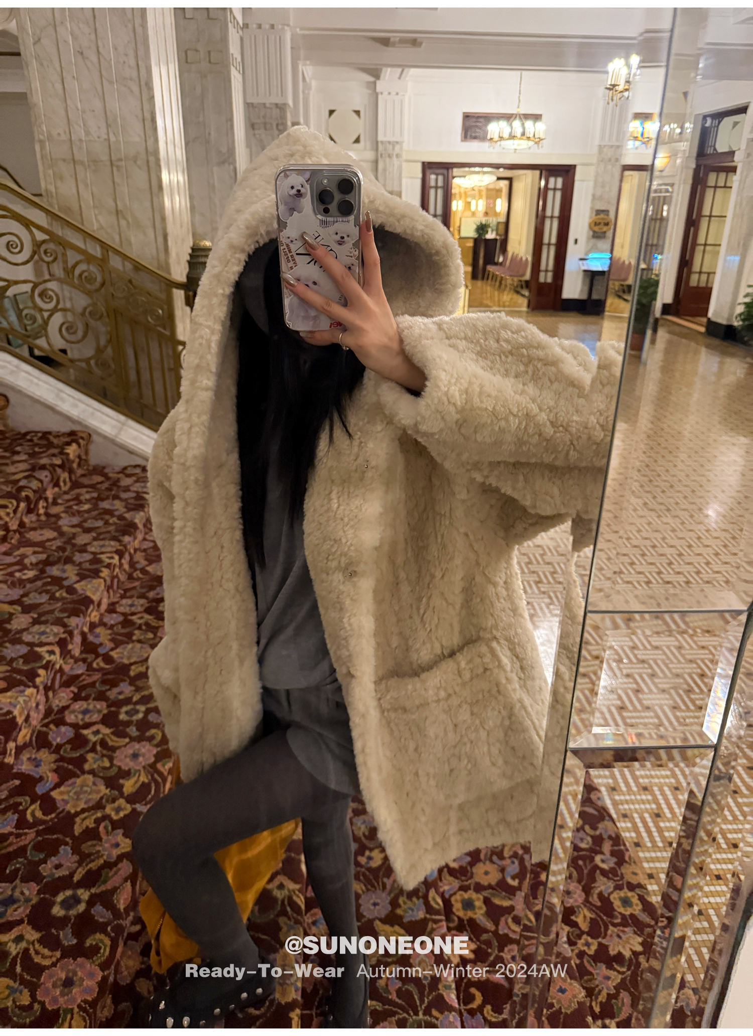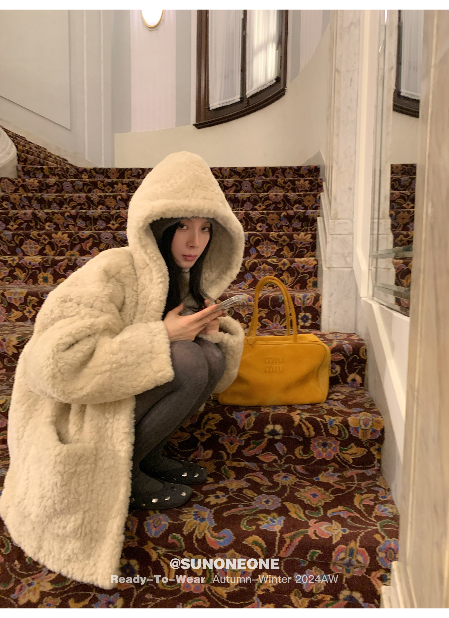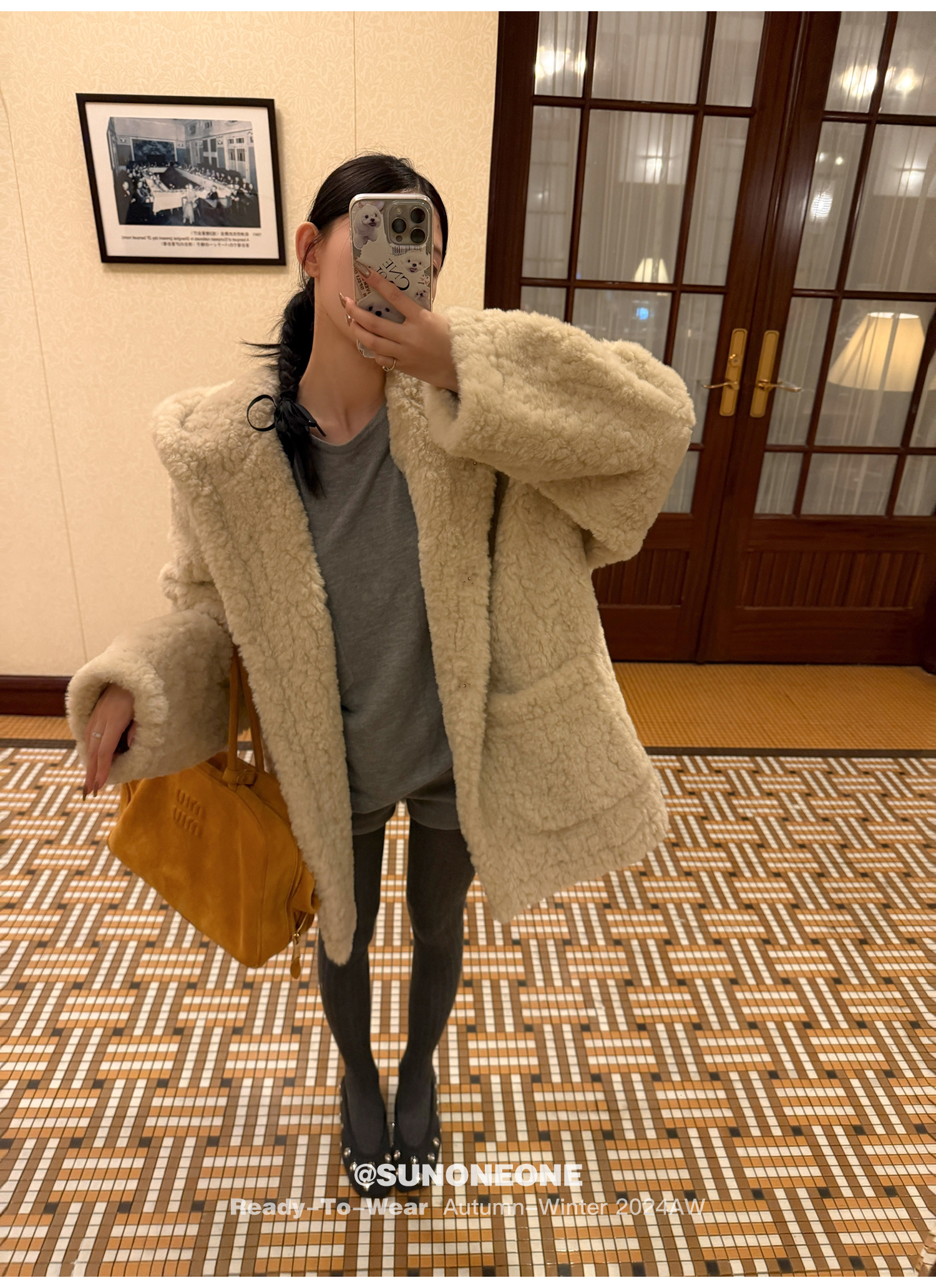 Sunoneone Teddy Velvet 2.0 Cape Short Coat Women's Autumn and Winter New Style Plush Fur Integrated Woolen Coat