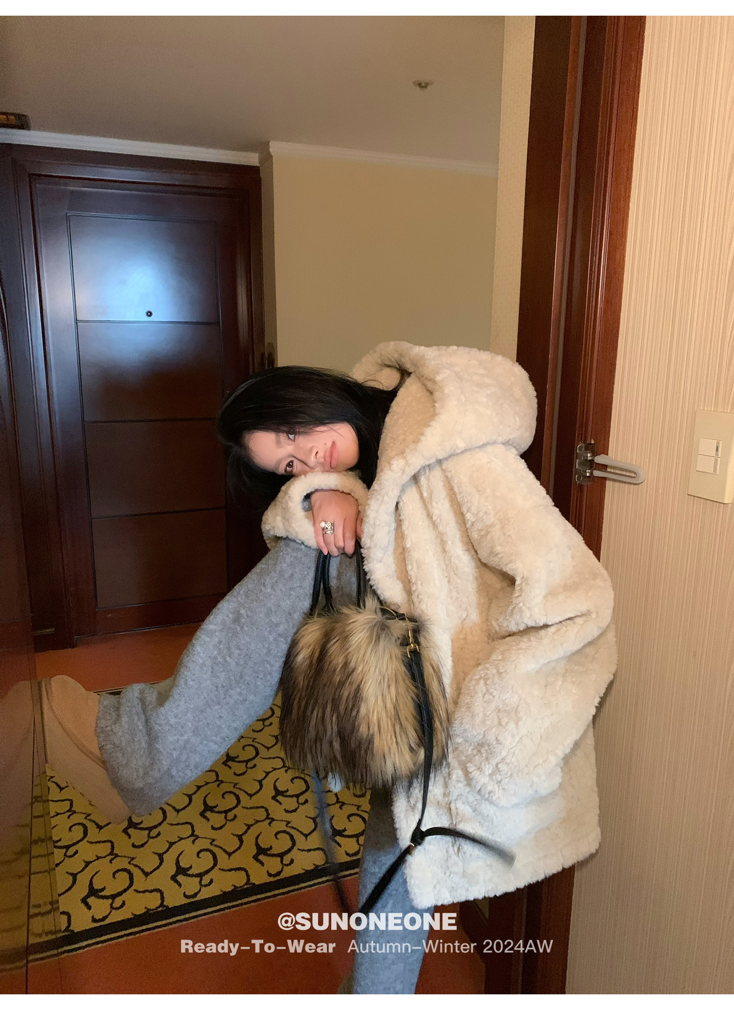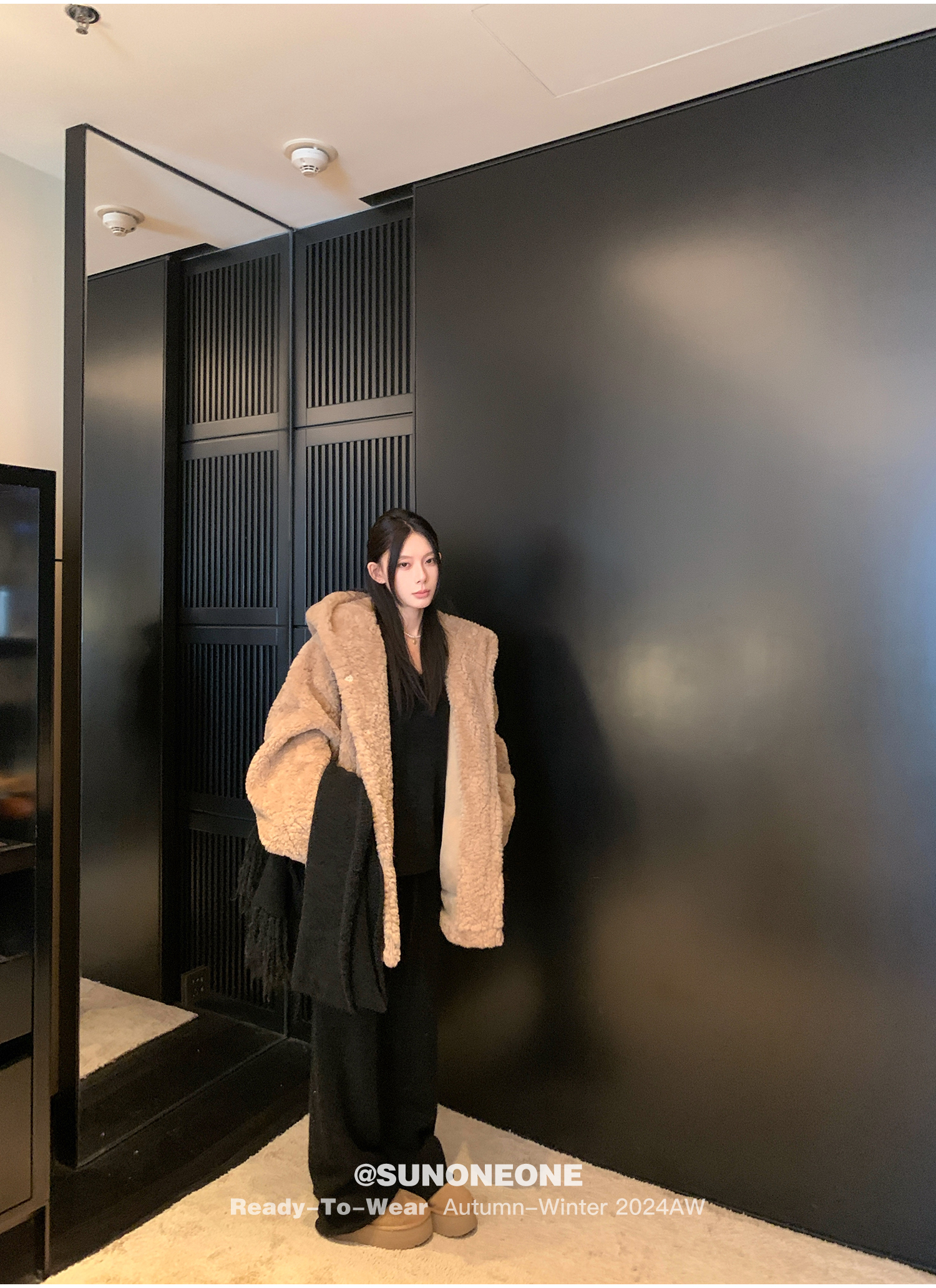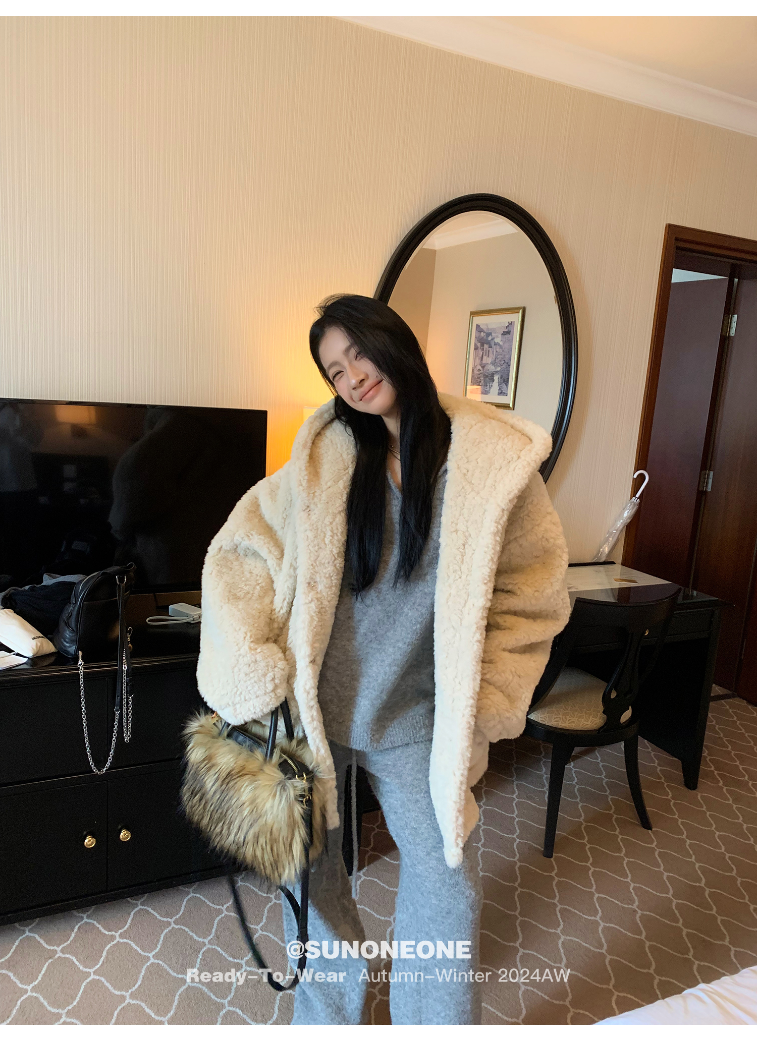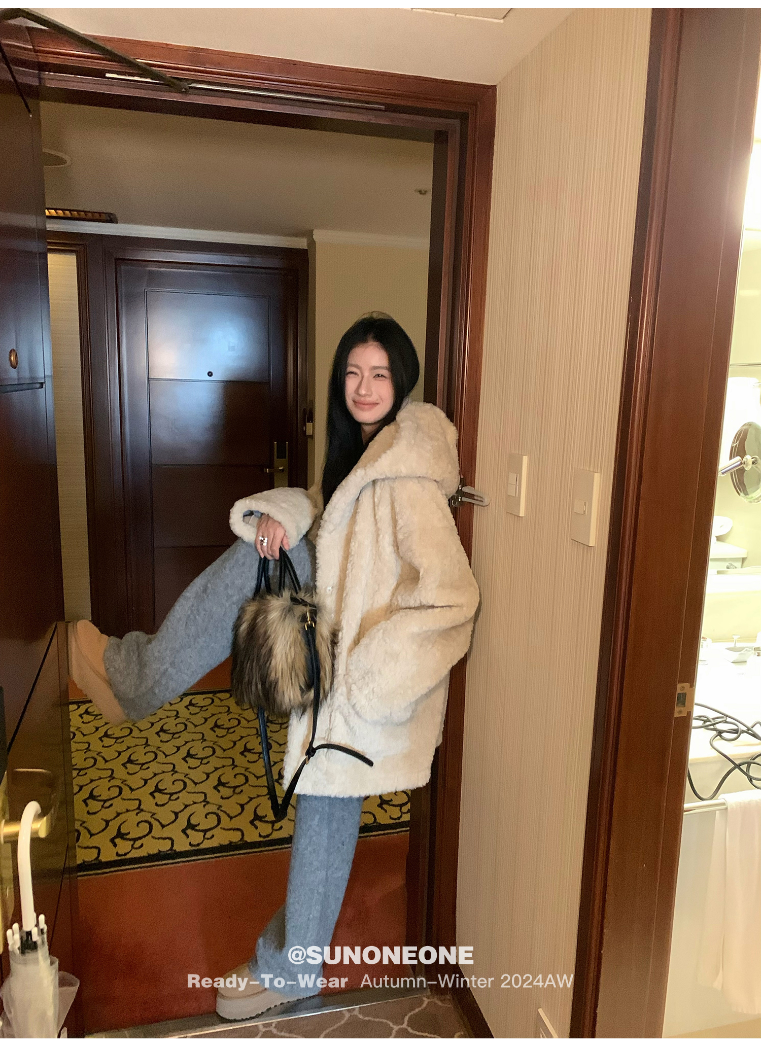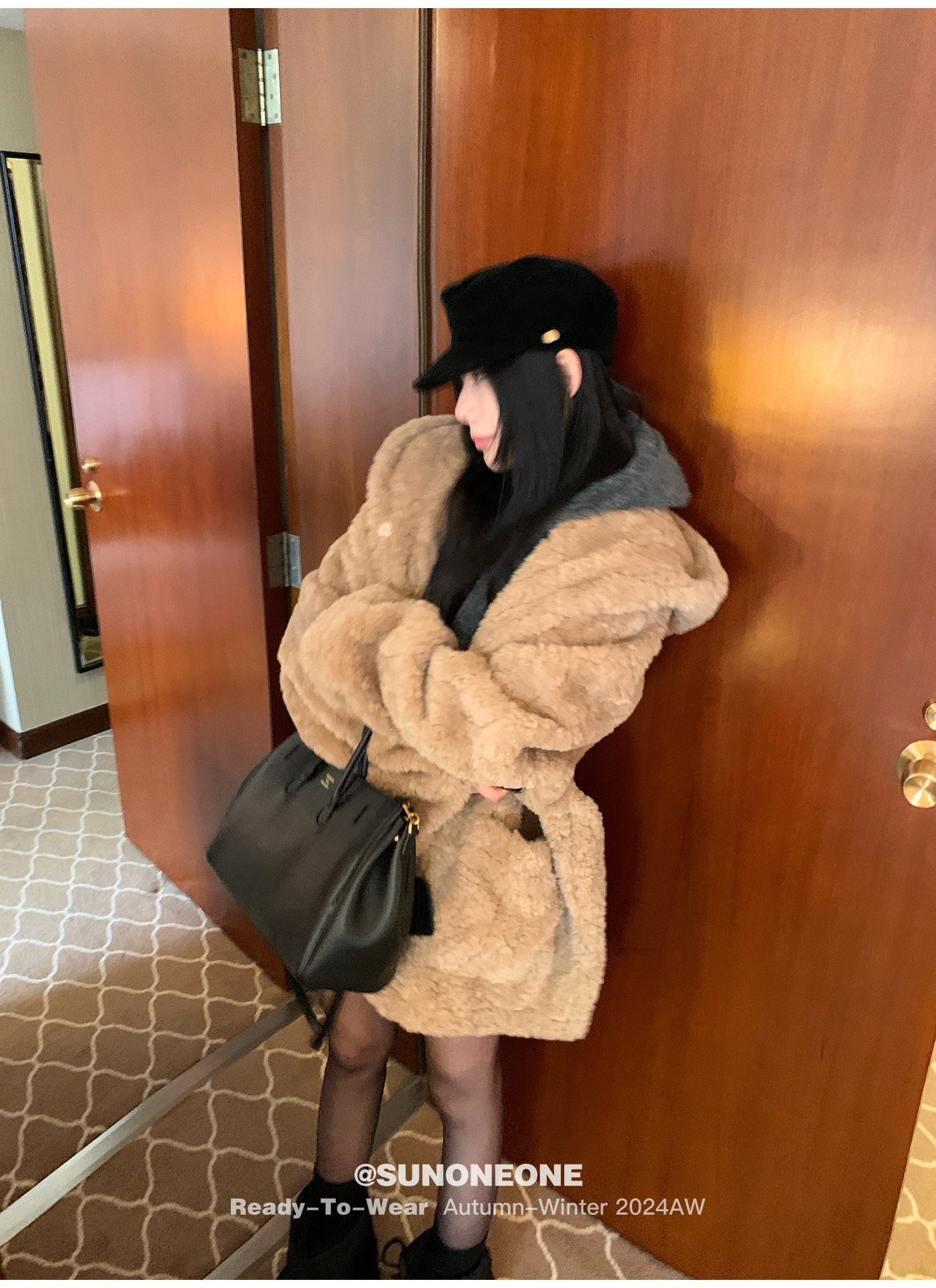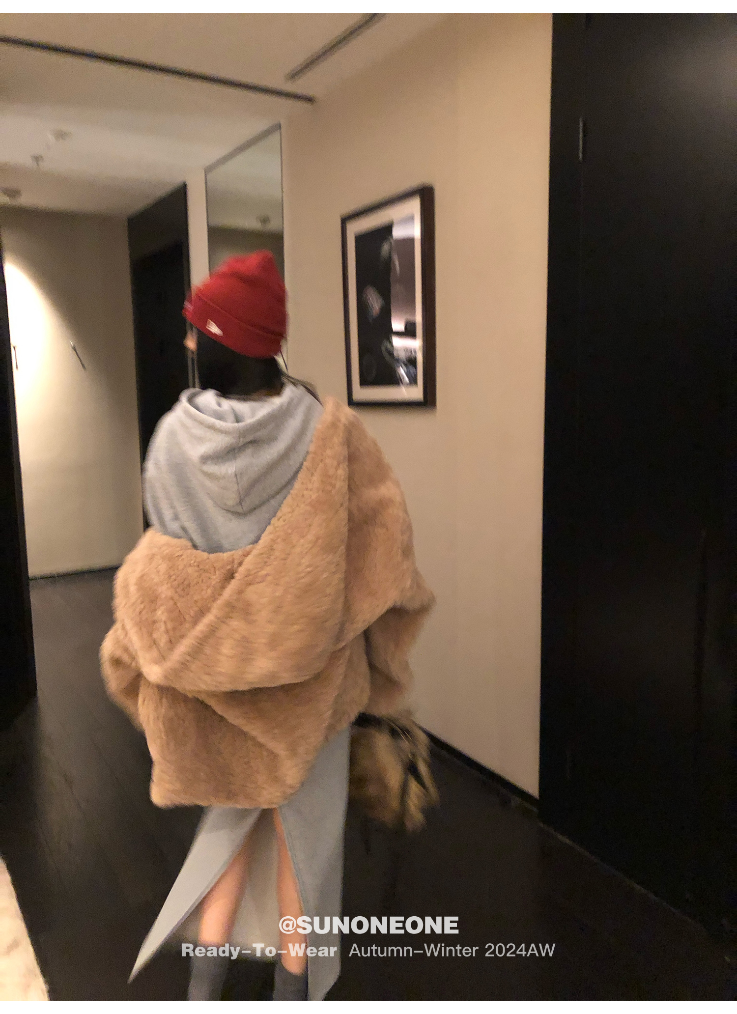 Sunoneone Teddy Velvet 2.0 Cape Short Coat Women's Autumn and Winter New Style Plush Fur Integrated Woolen Coat