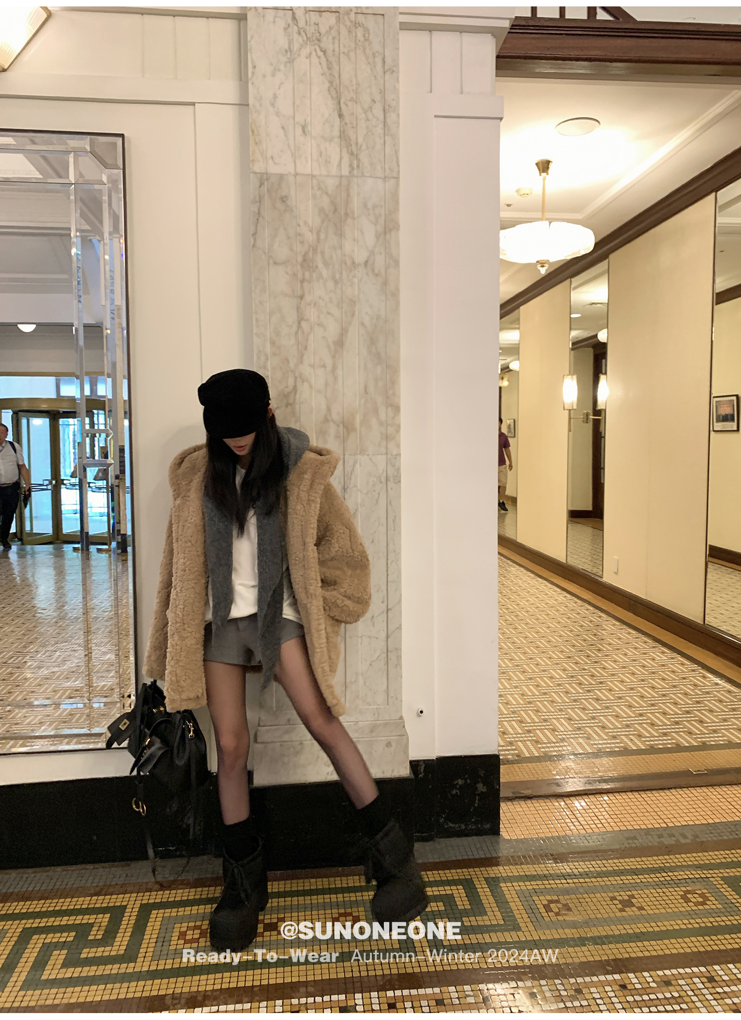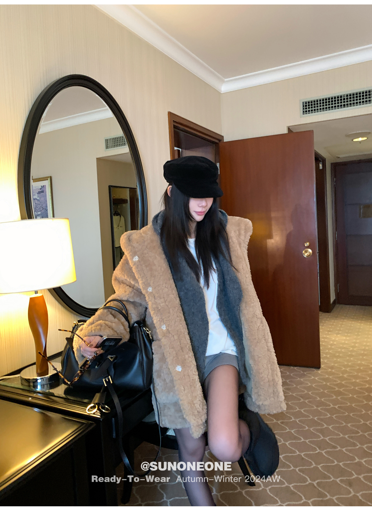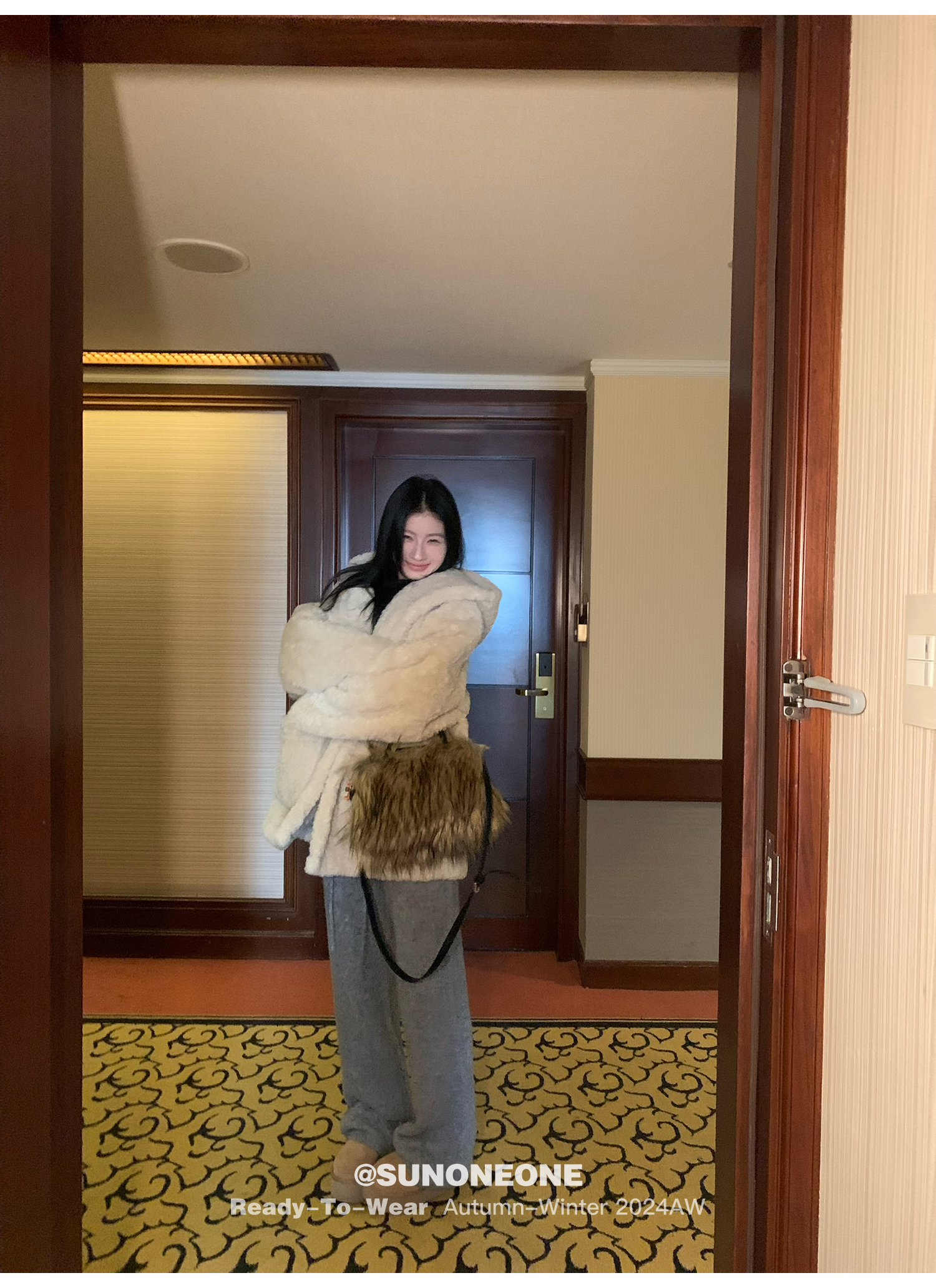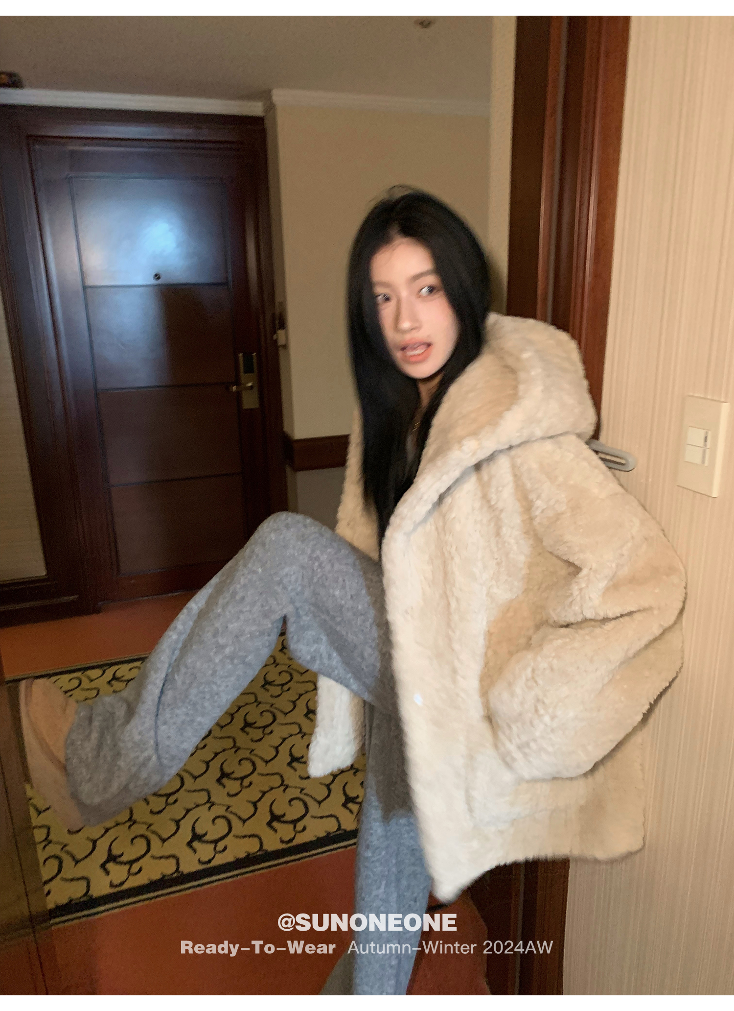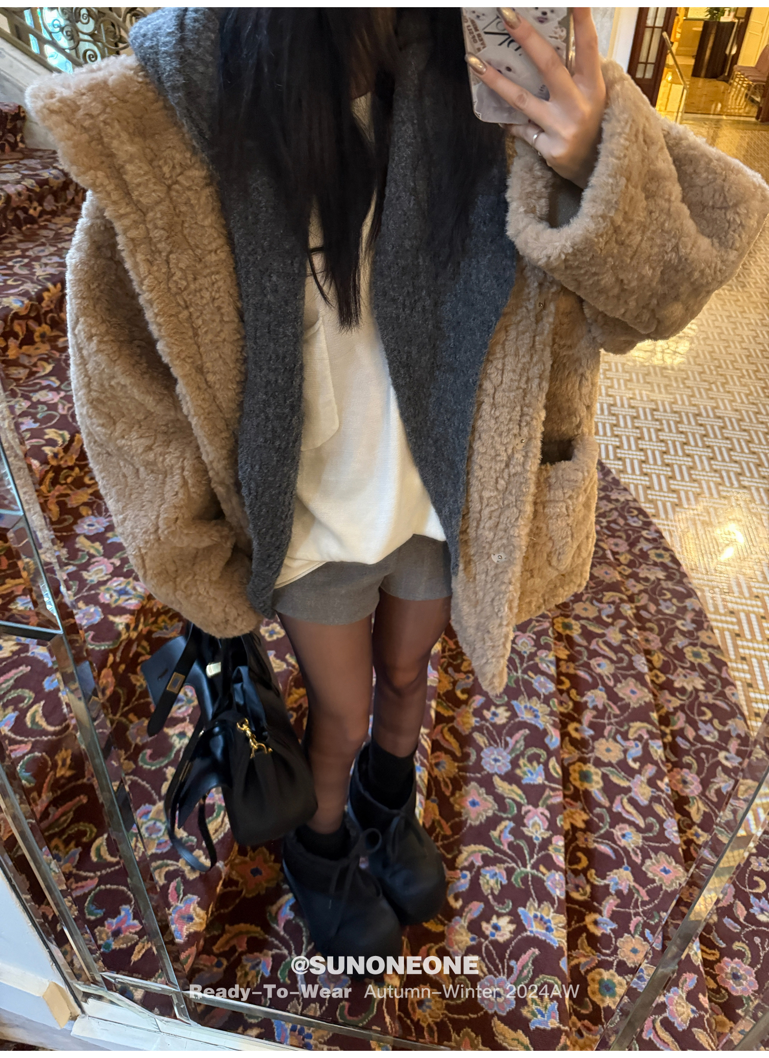 Sunoneone Teddy Velvet 2.0 Cape Short Coat Women's Autumn and Winter New Style Plush Fur Integrated Woolen Coat