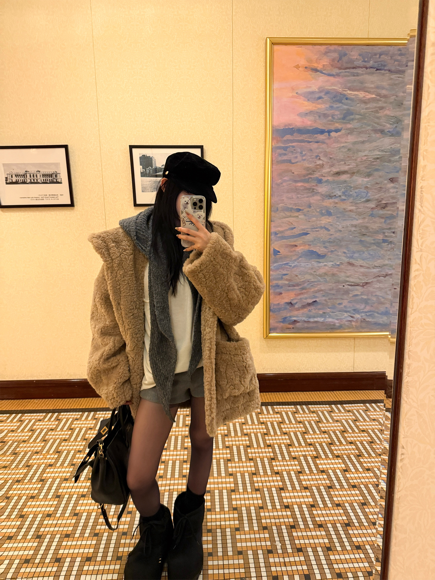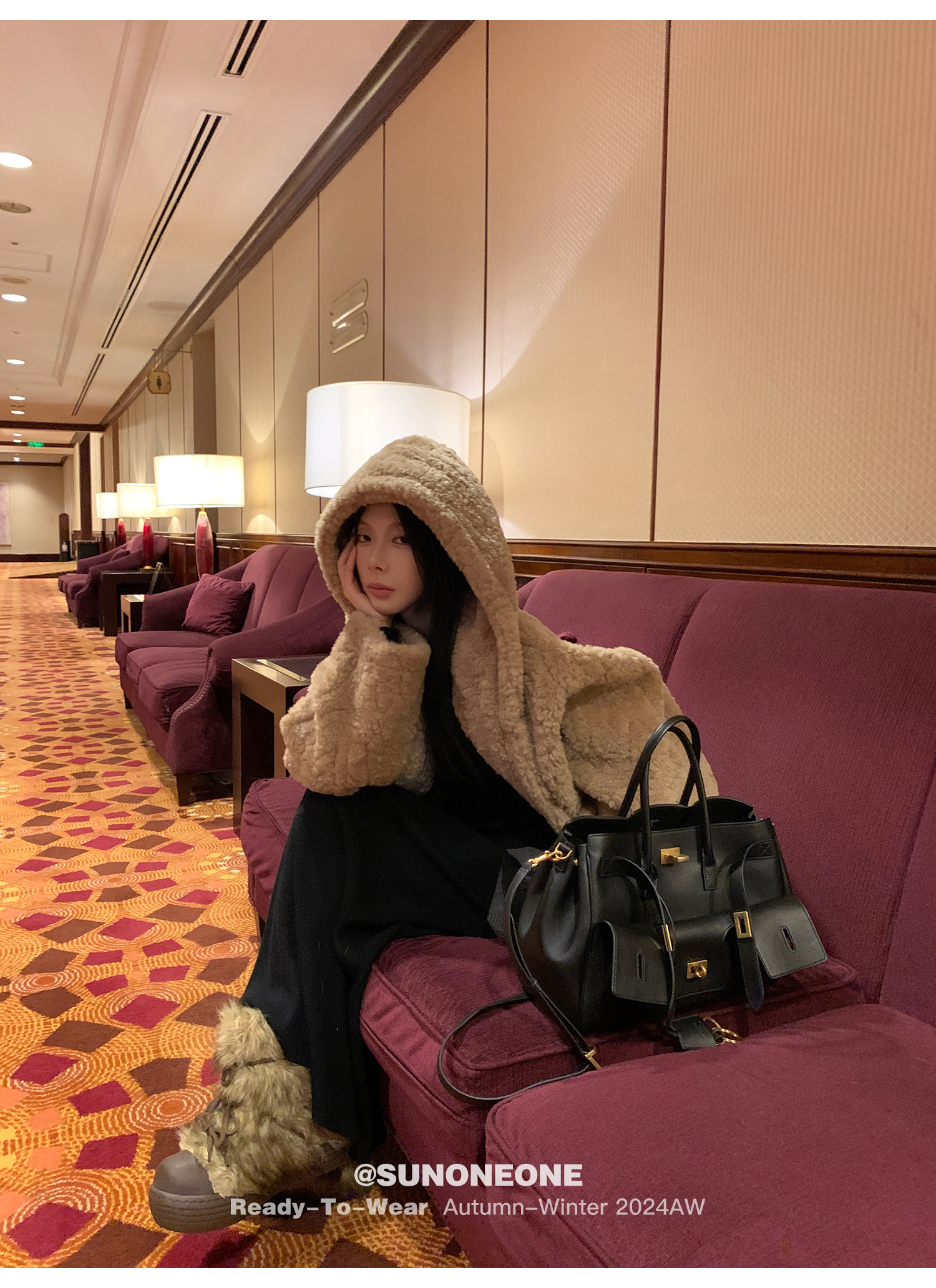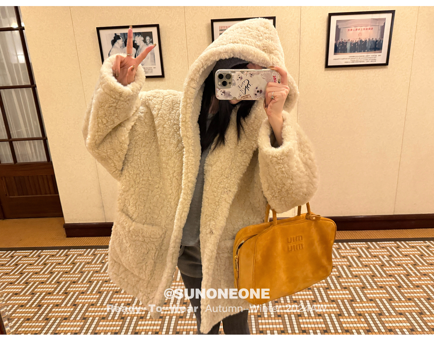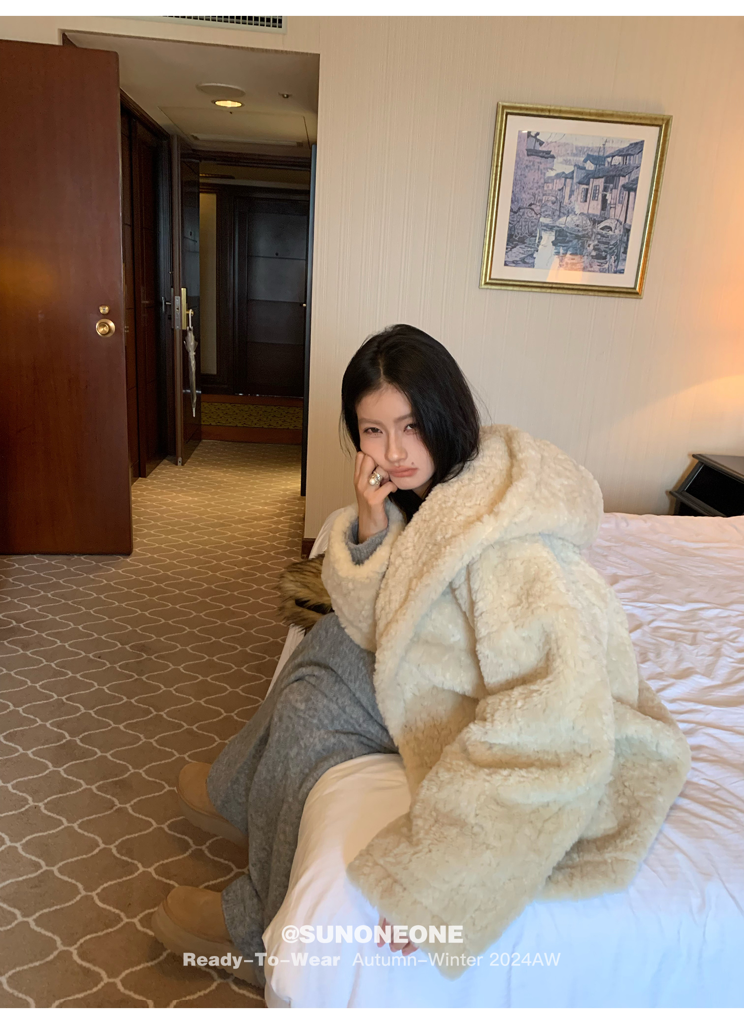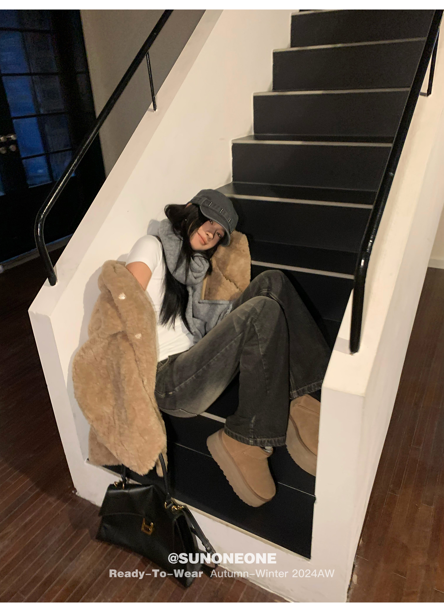 Sunoneone Teddy Velvet 2.0 Cape Short Coat Women's Autumn and Winter New Style Plush Fur Integrated Woolen Coat
