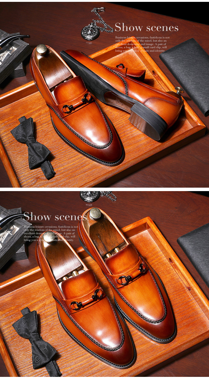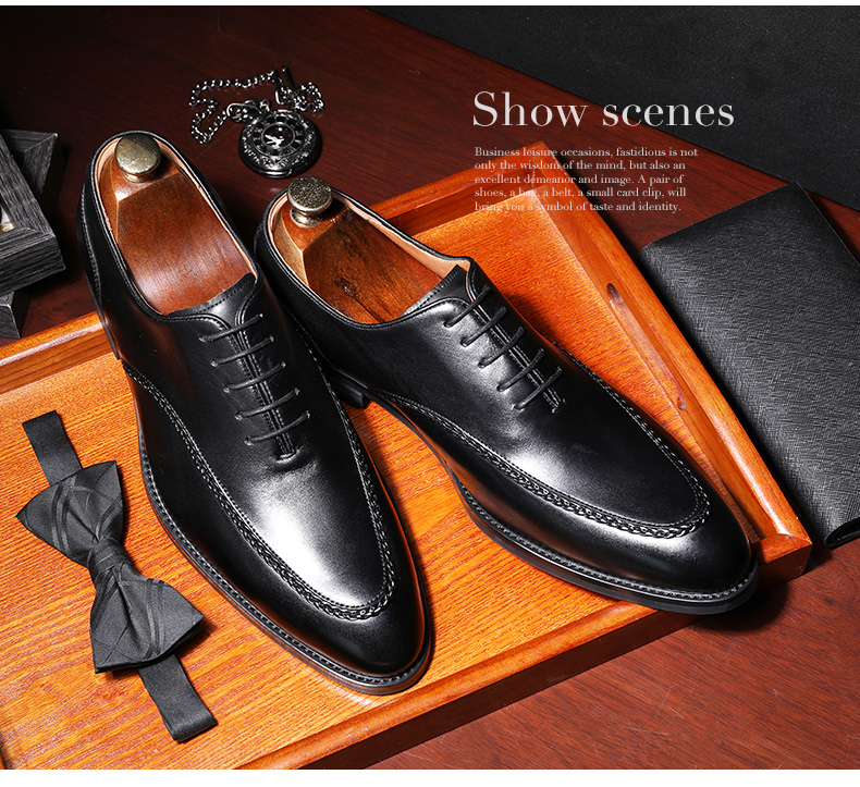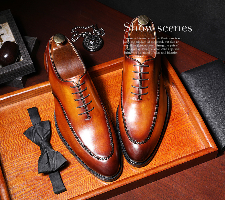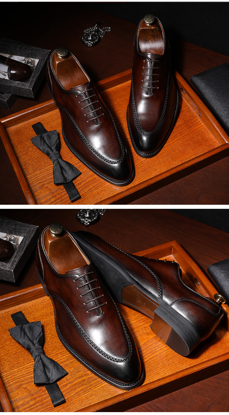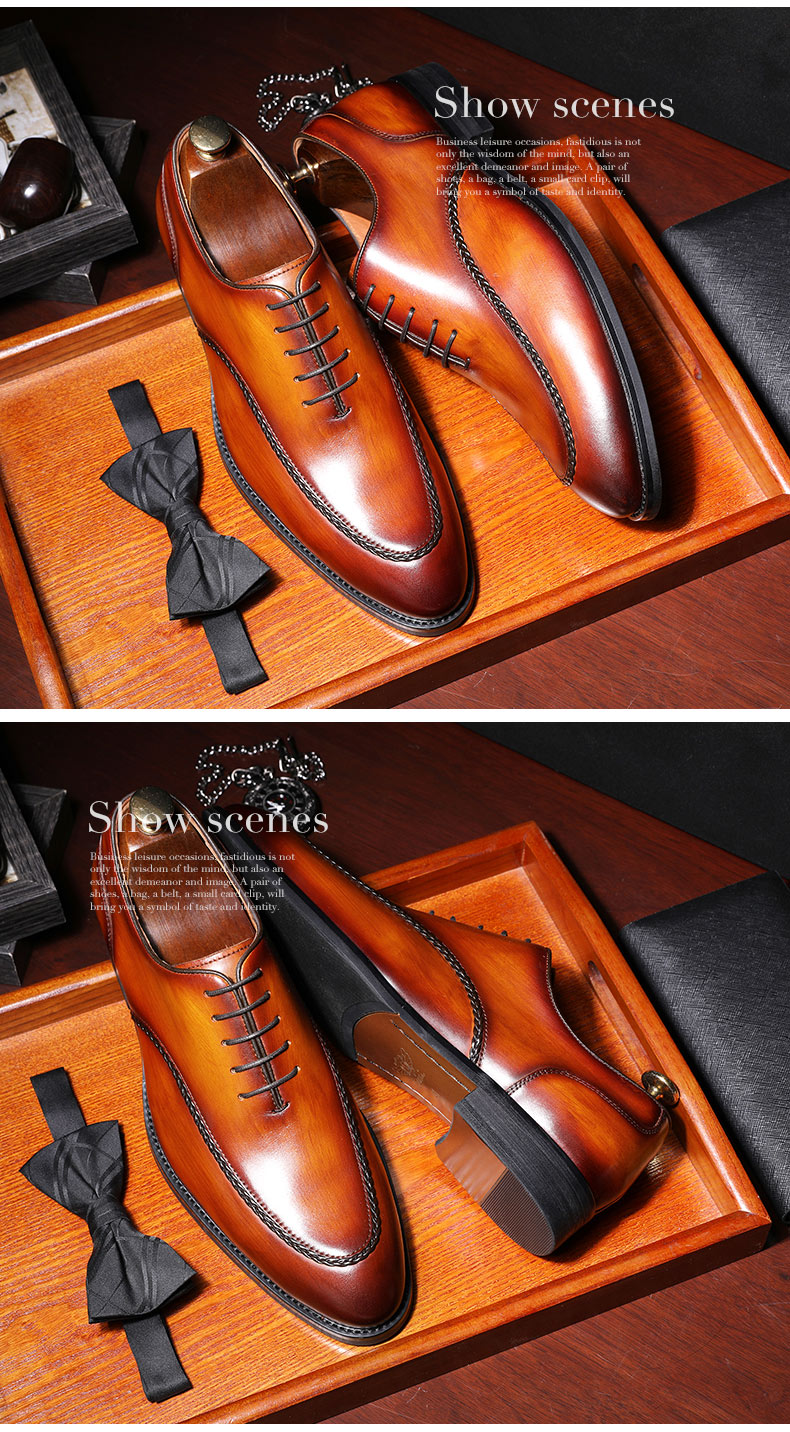 British Formal Leather Shoes for Men, Genuine Leather Pointed Toe Brown Oxford Wedding Groom Shoes, Handmade Men's Business Large Size Men's Shoes