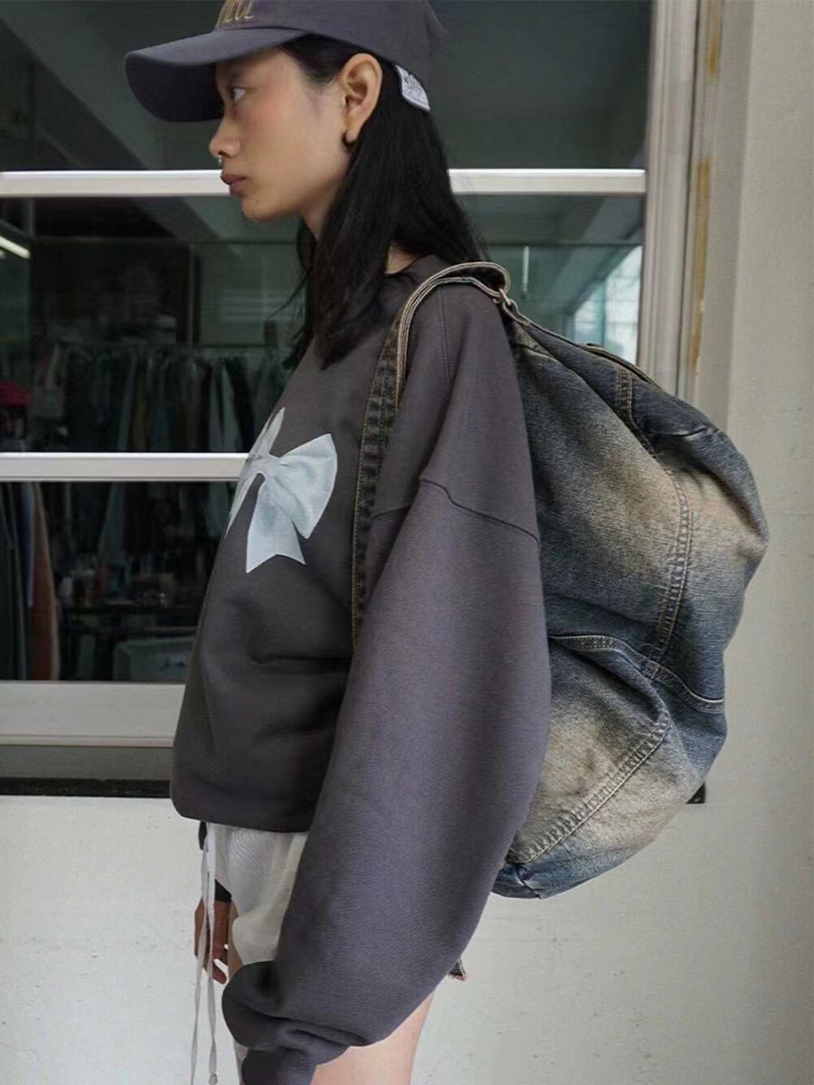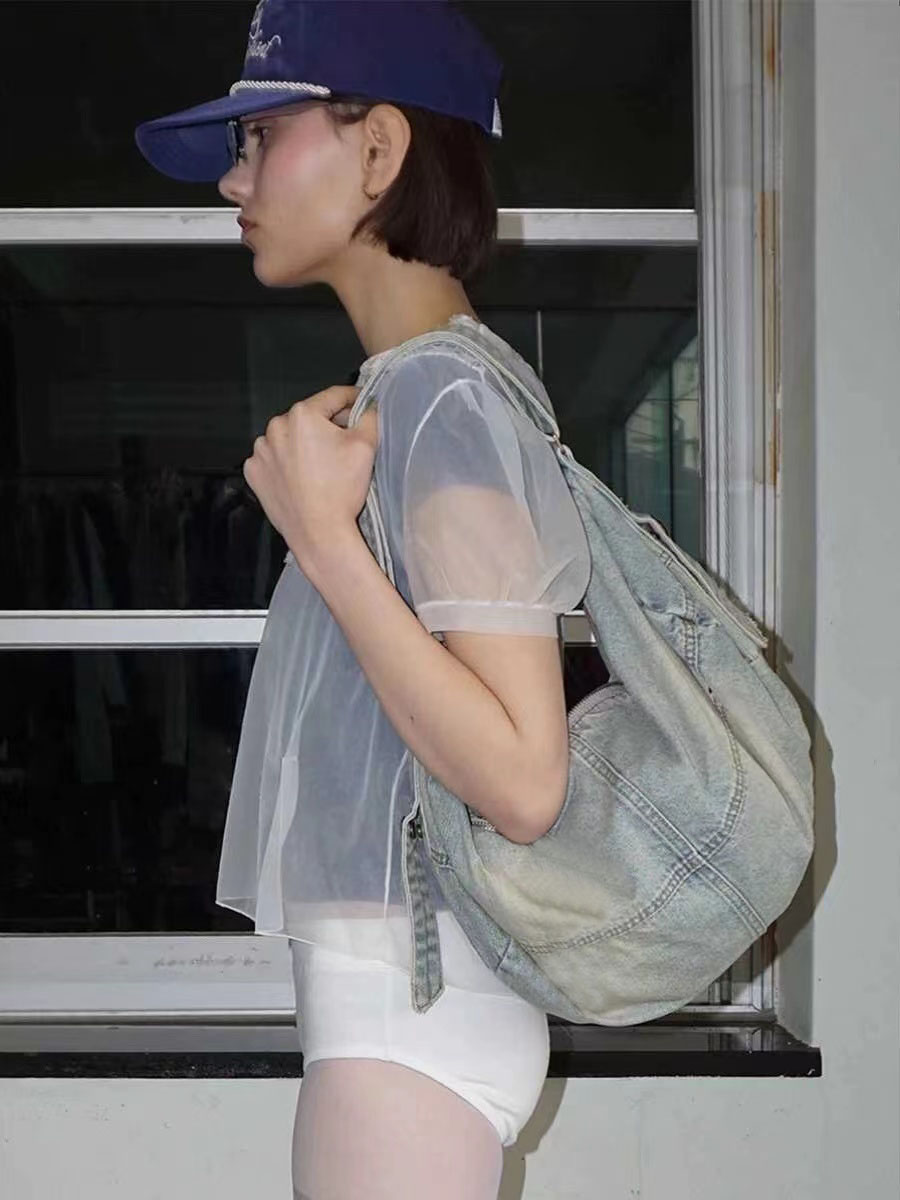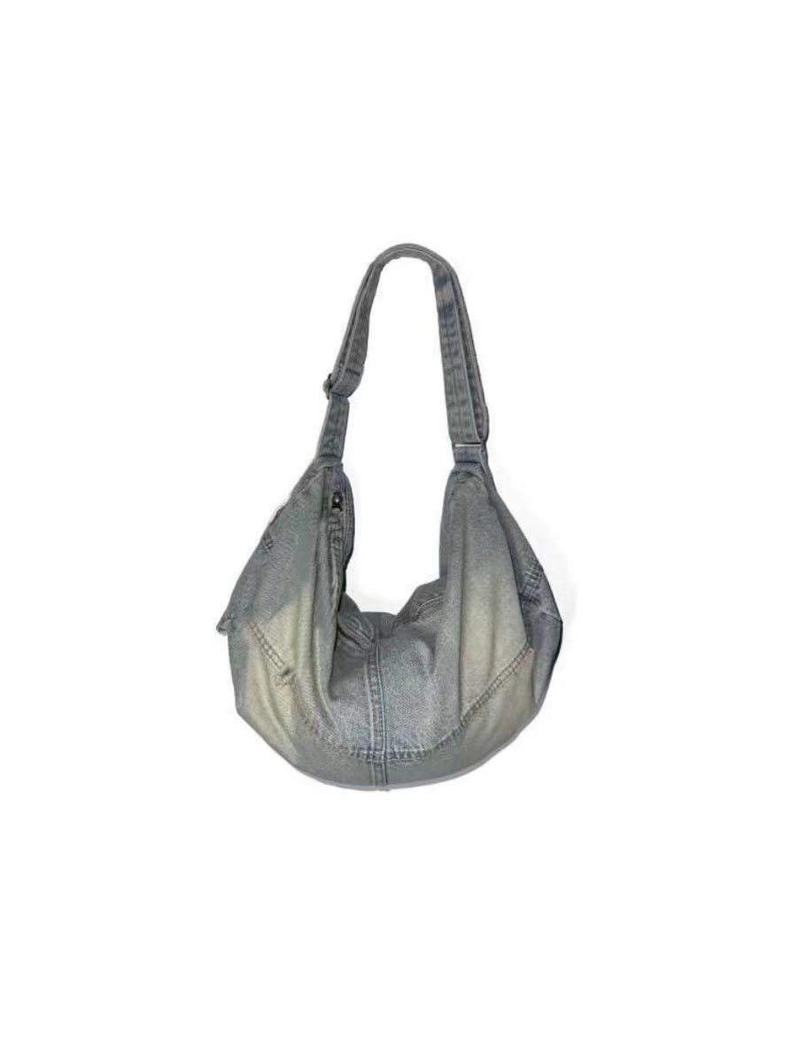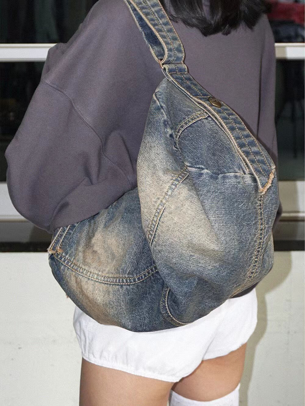 Korean Style Denim Bag, Washed Denim Crossbody Bag, Large Capacity Travel Bag for Men and Women, Tote Bag, College Student Commuter Bag