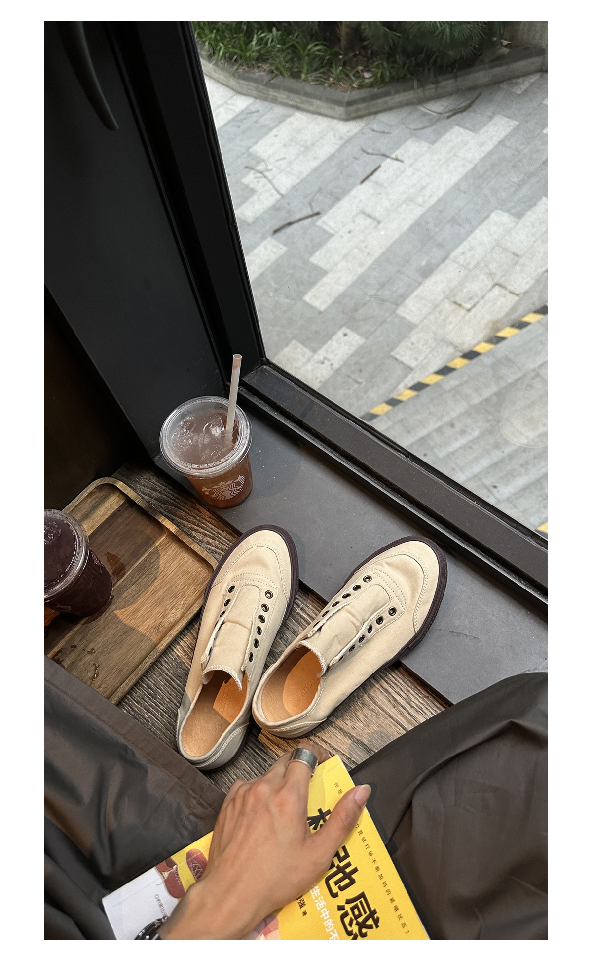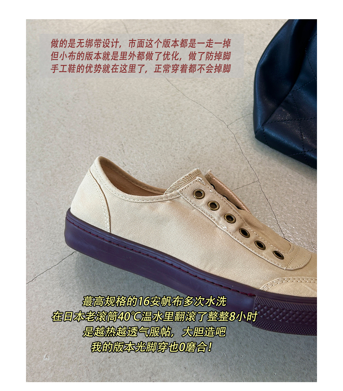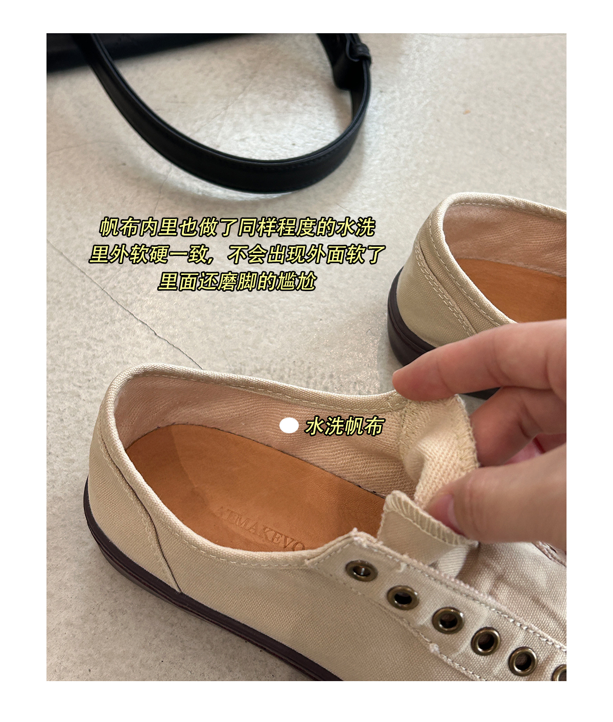 Lu Xiaobu | Washed Canvas Shoes, Summer Dopamine Slip-On Slip-Ons, Casual Flat Sneakers, Women's Shoes