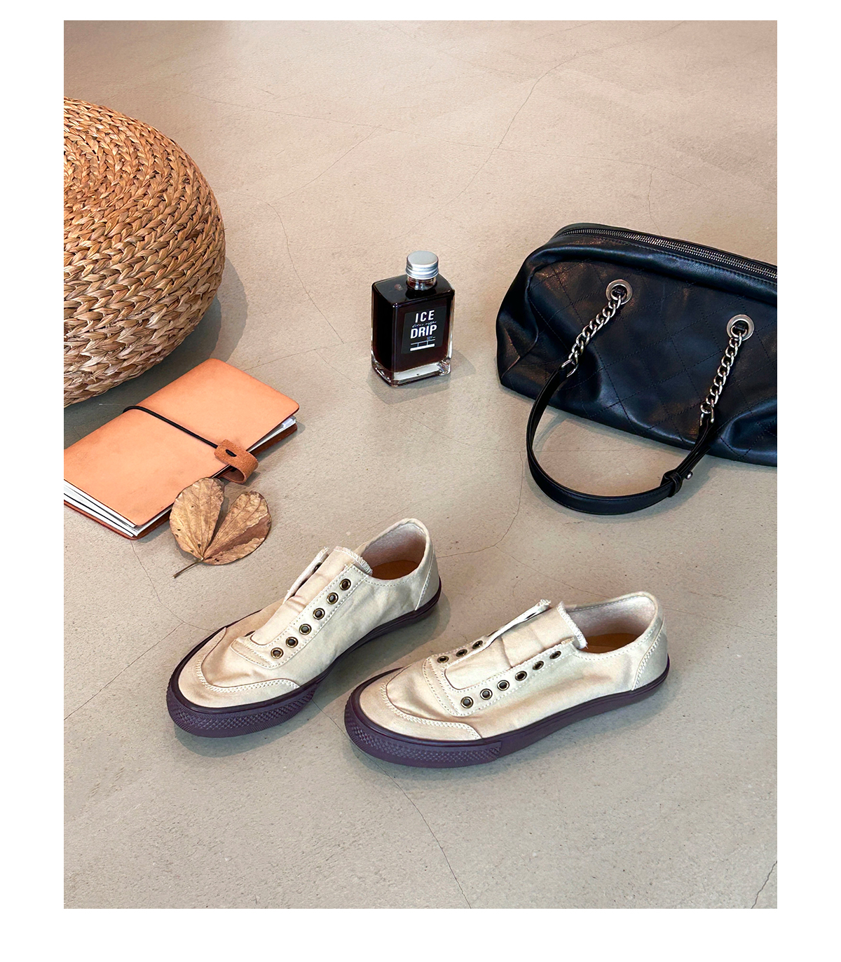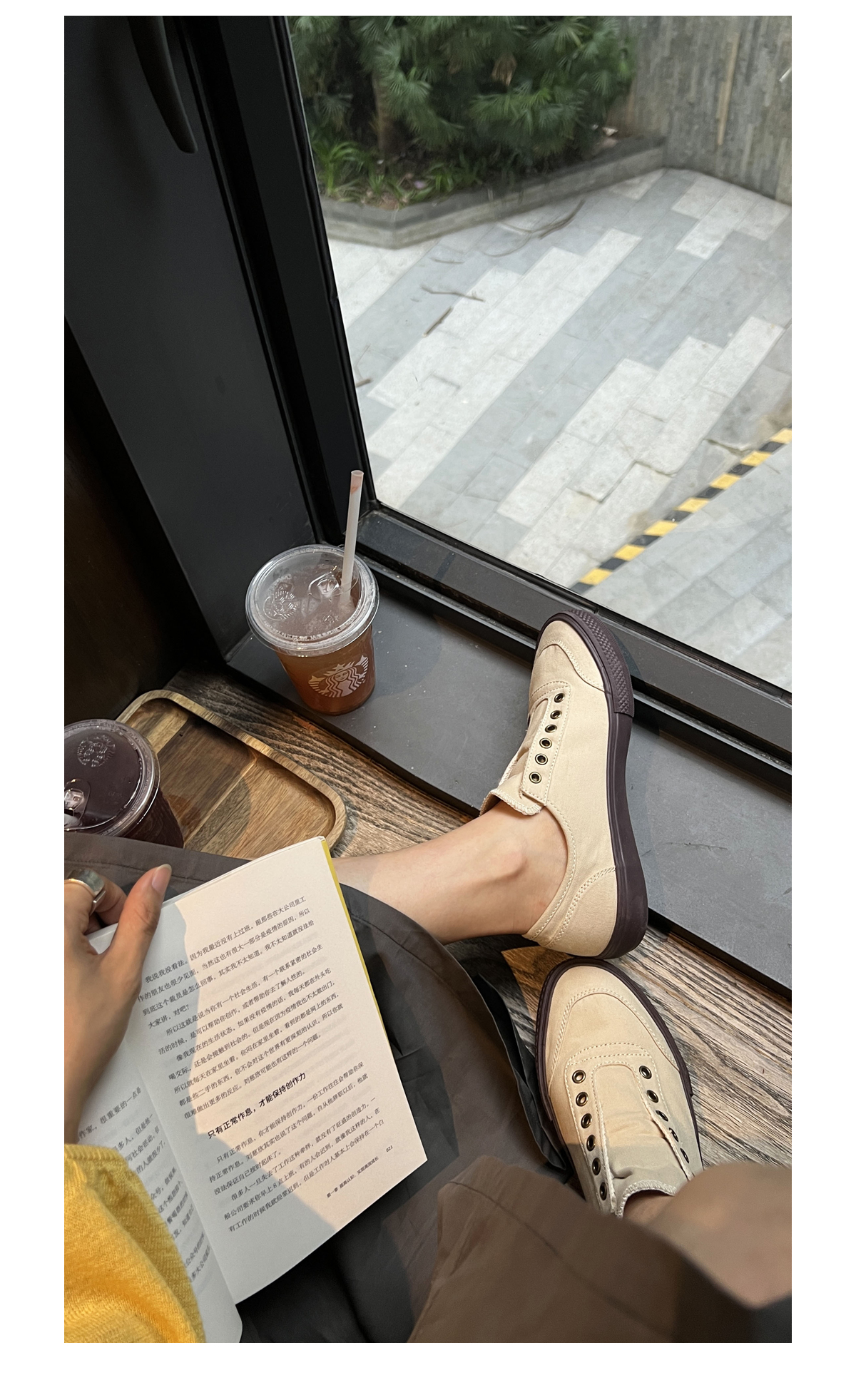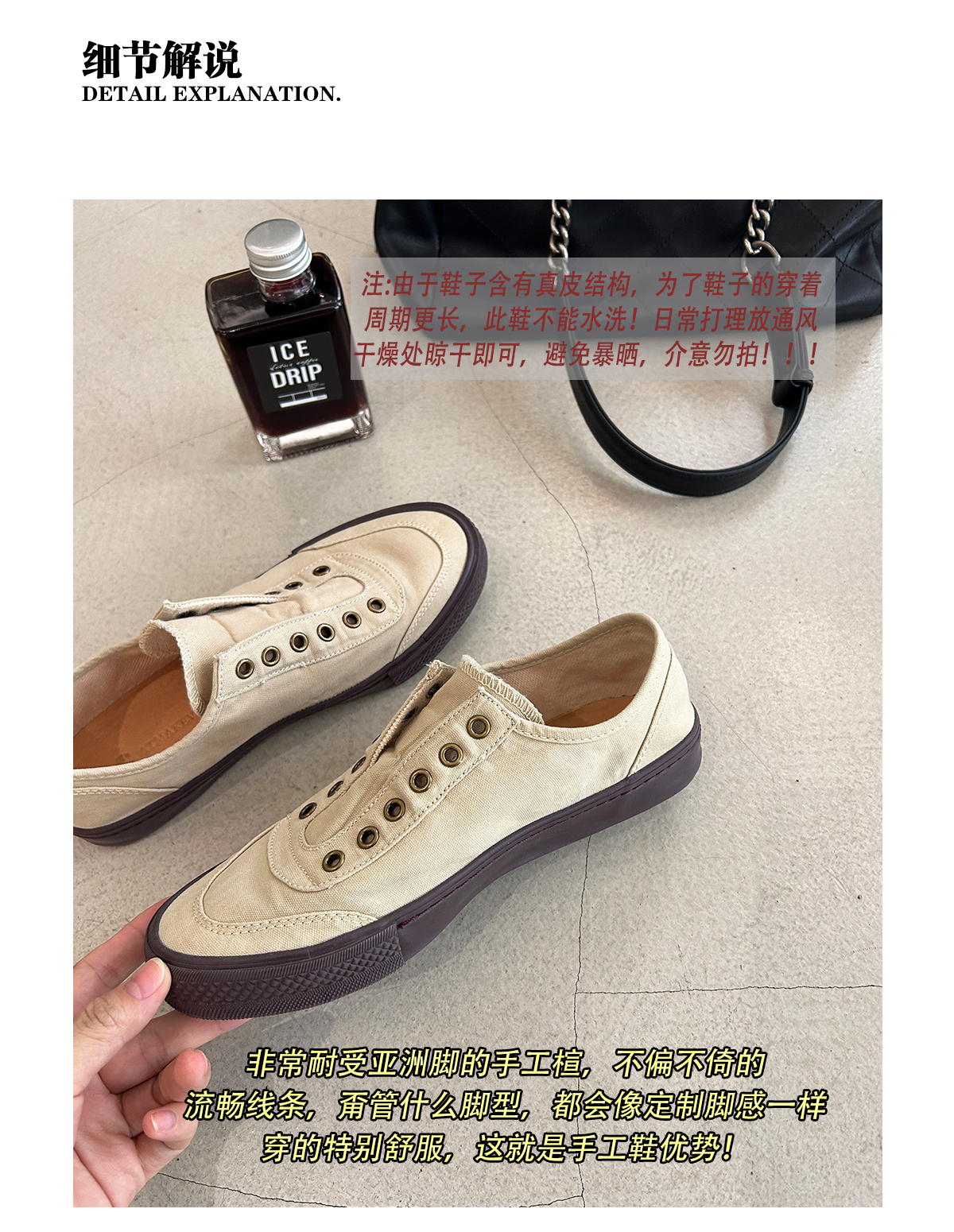 Lu Xiaobu | Washed Canvas Shoes, Summer Dopamine Slip-On Slip-Ons, Casual Flat Sneakers, Women's Shoes