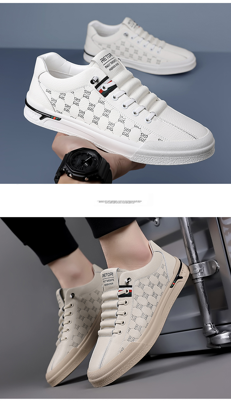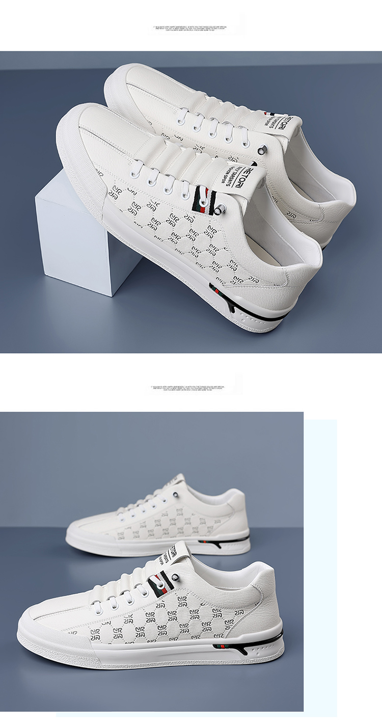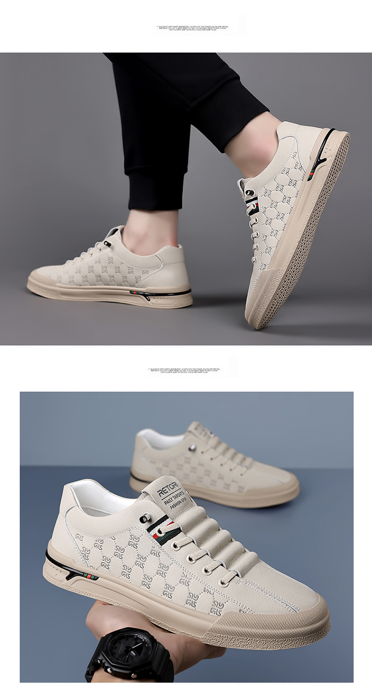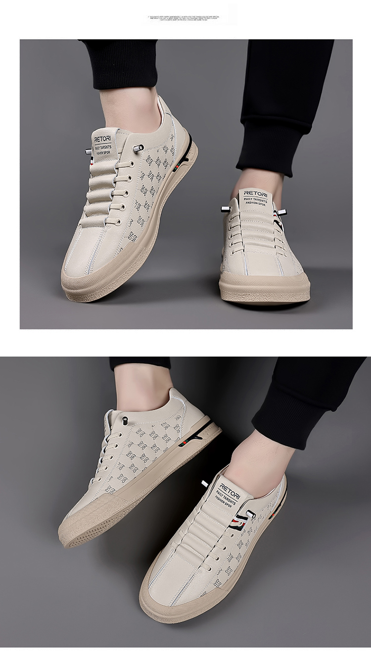 European Men's Shoes with a Hidden 10cm Height Increase, Genuine Leather Soft Sole Casual Shoes, Men's Summer Sports White Shoes, 8cm