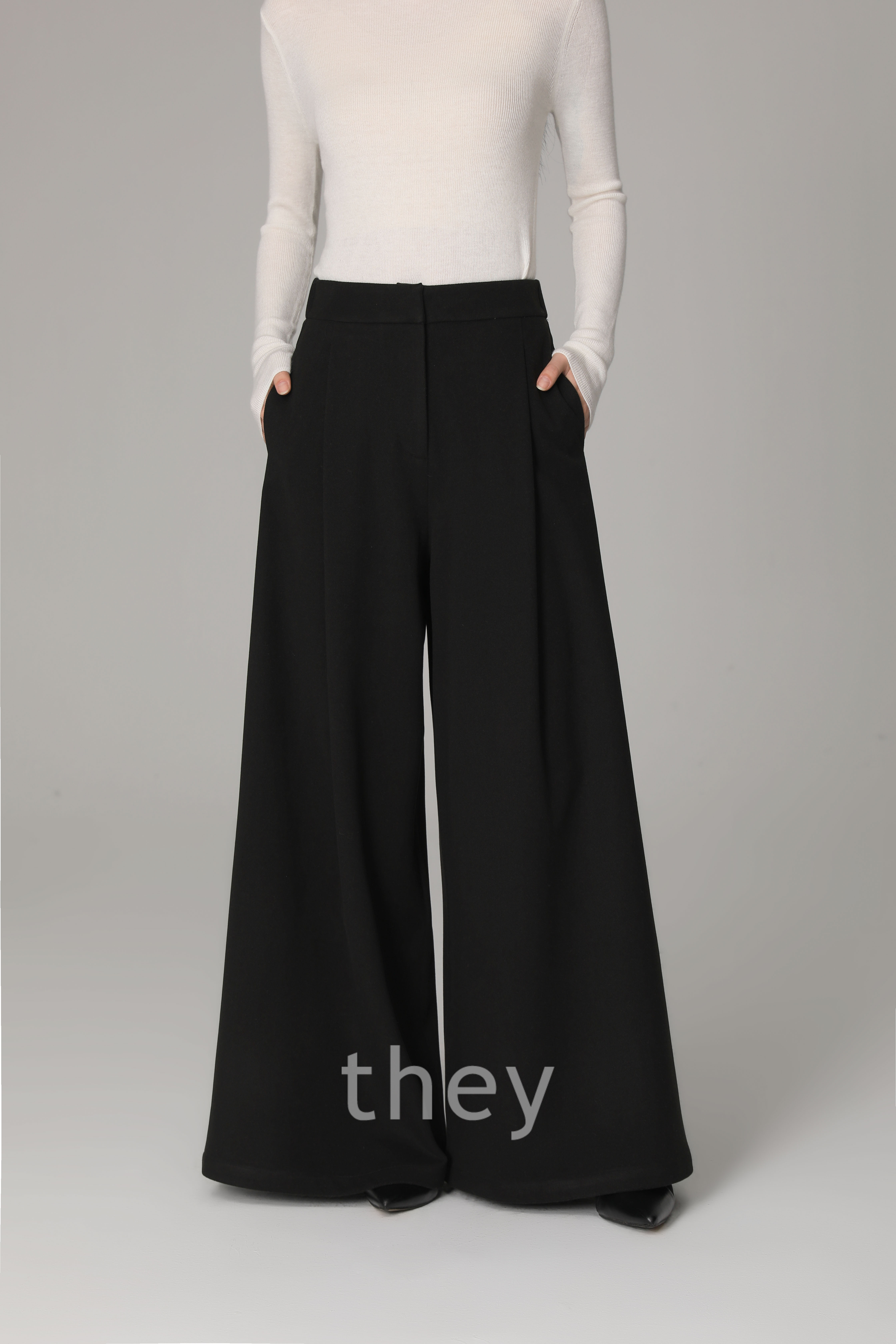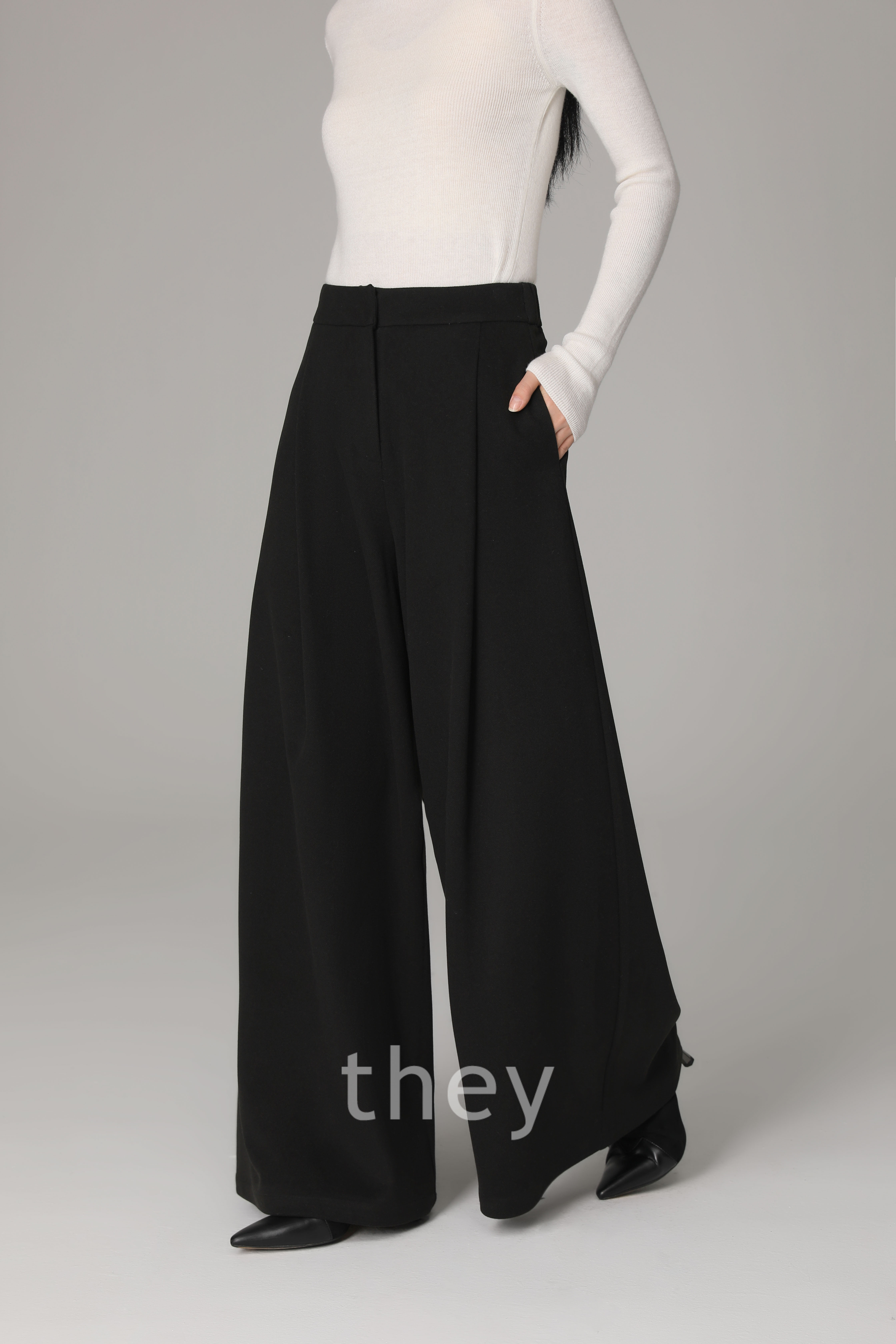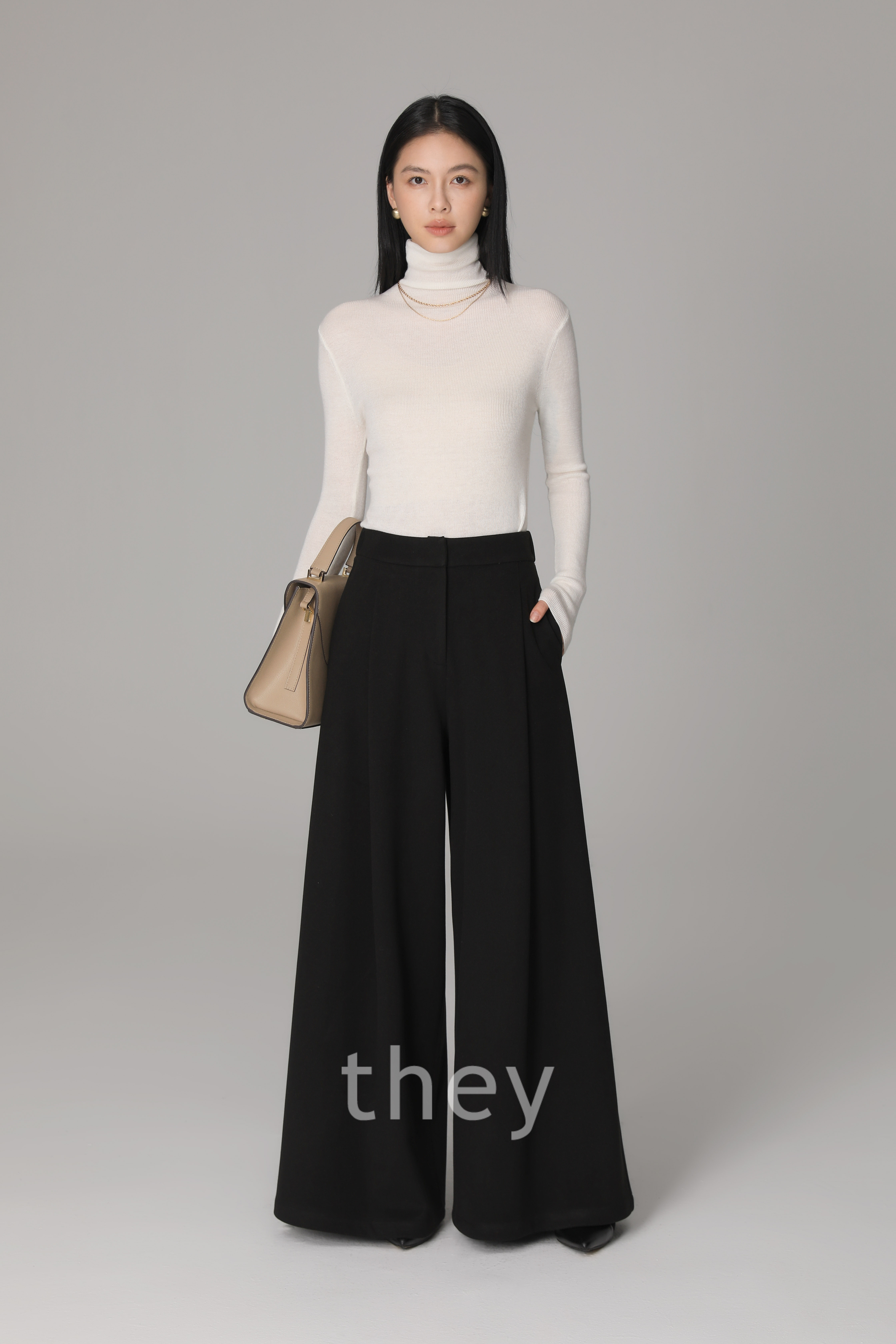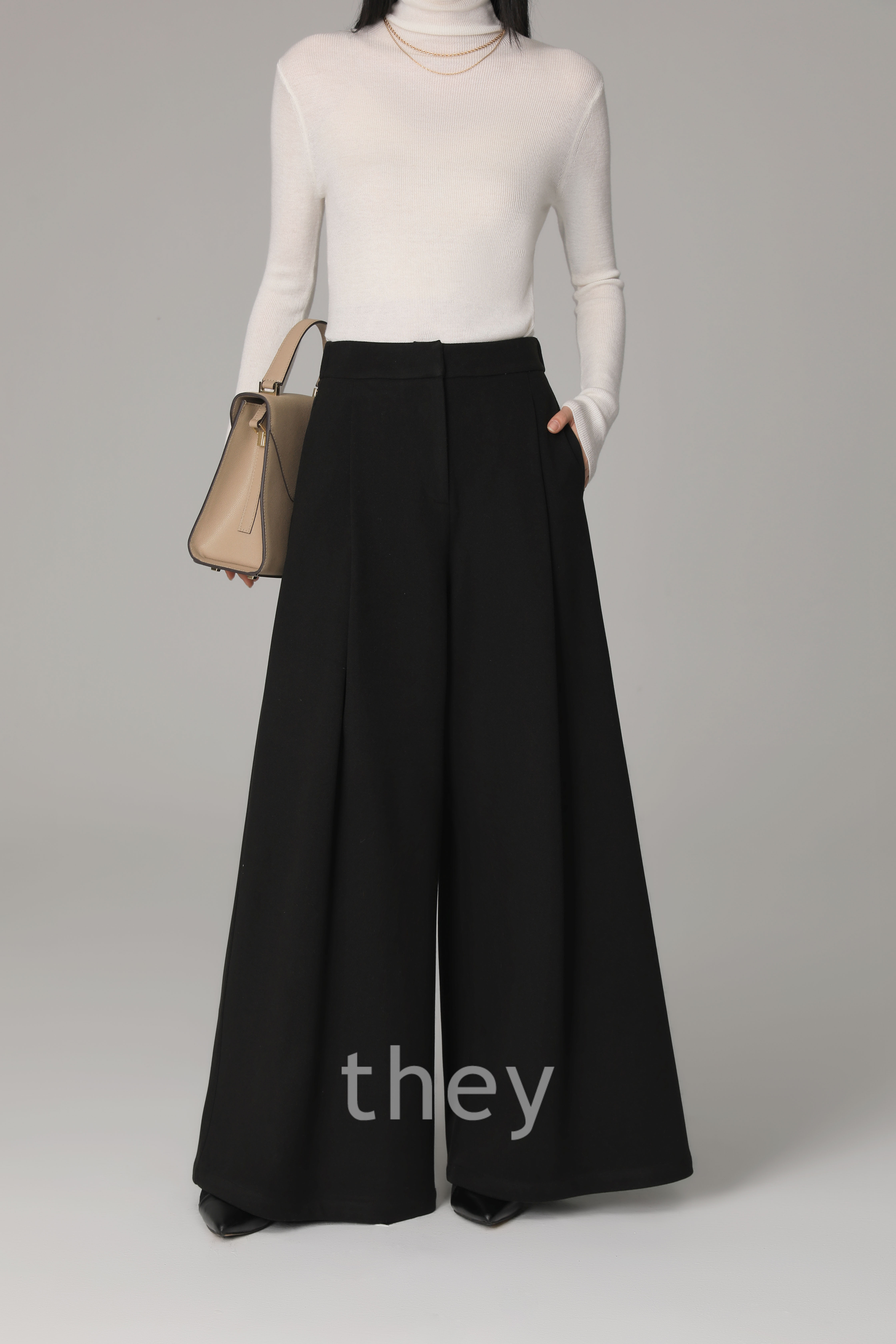 They Thickened Woolen Black Wide-Leg Pants for Autumn and Winter, High-Waisted, Loose-Fitting, Slimming, Long Pants with a High-End Drape, Dress Pants