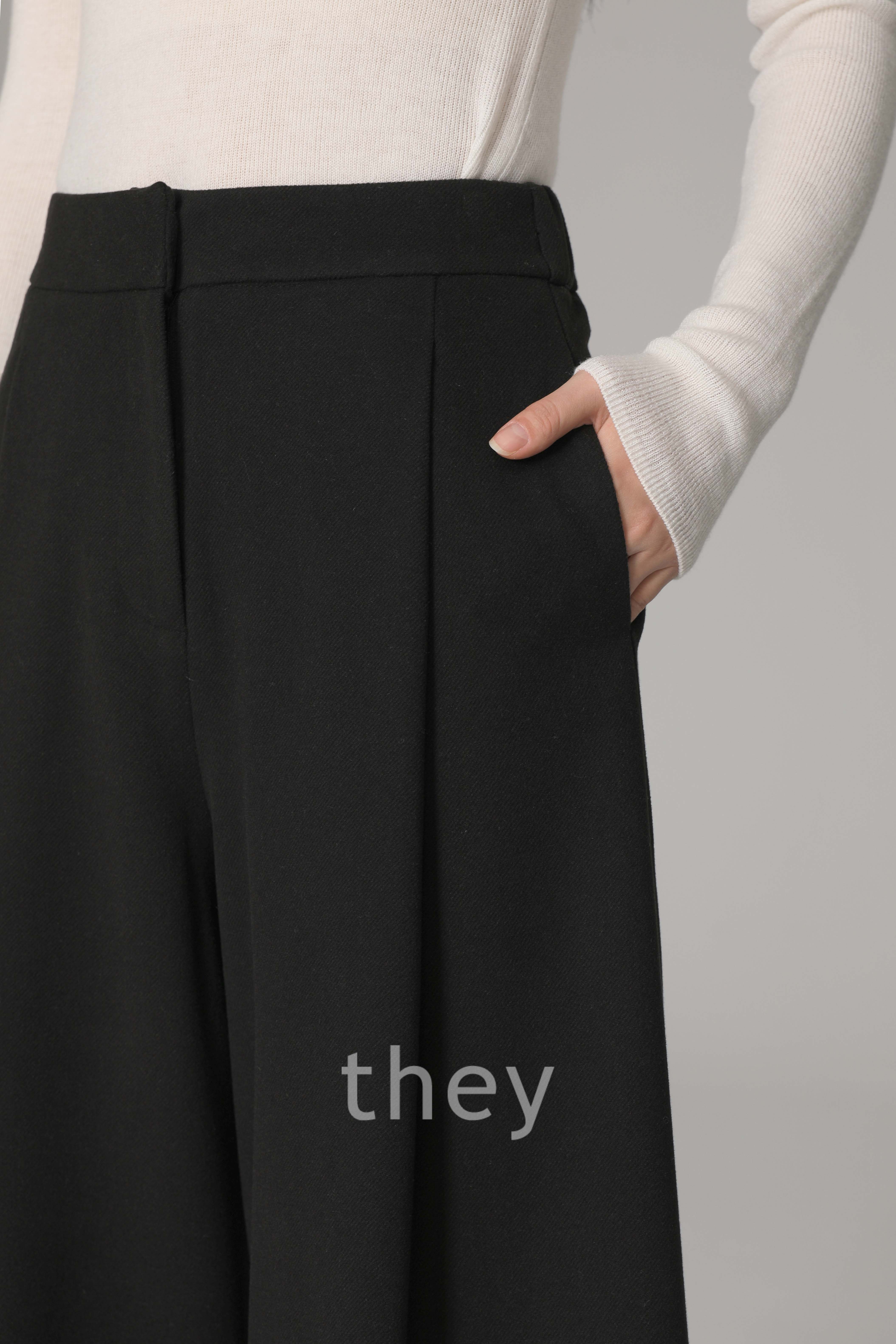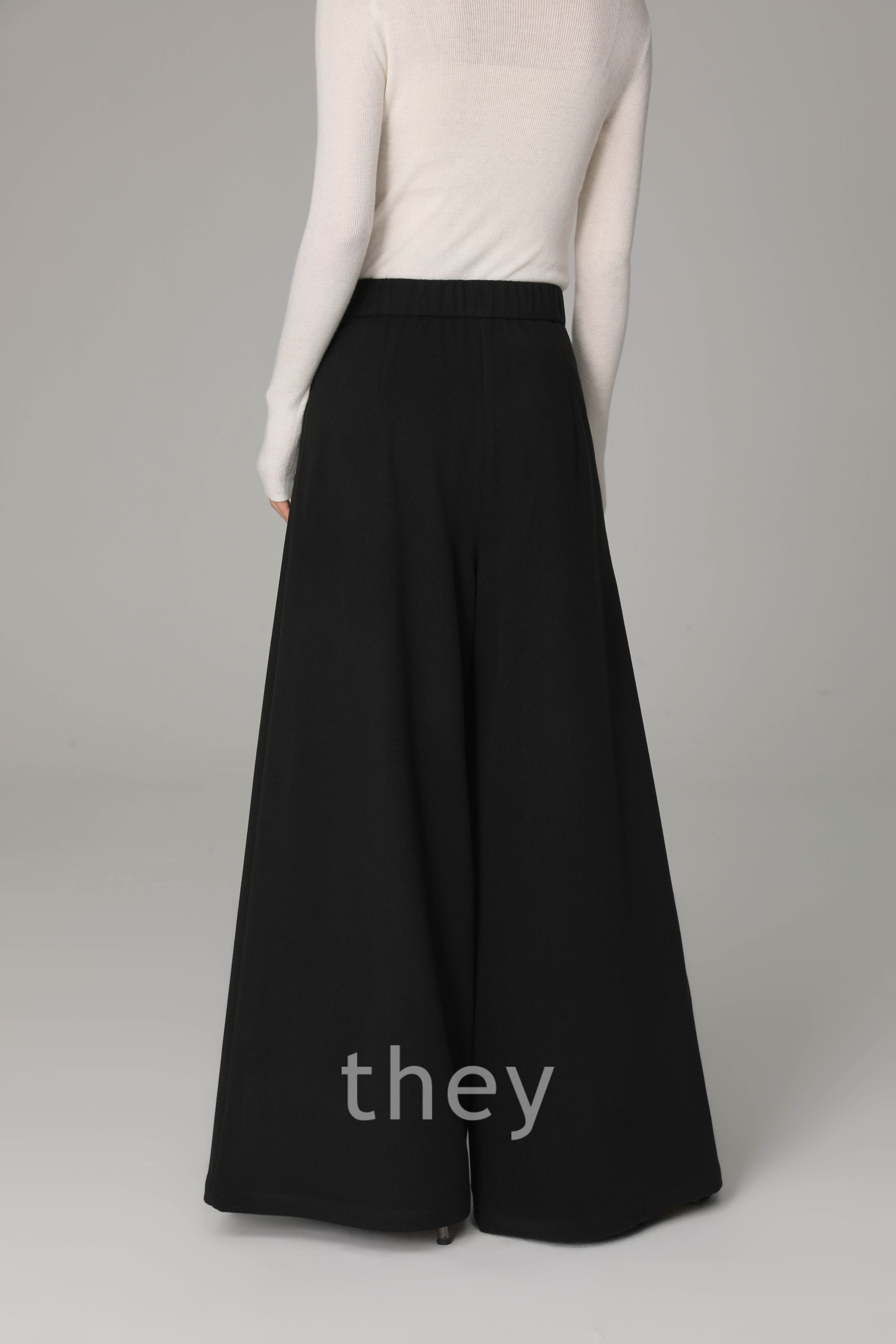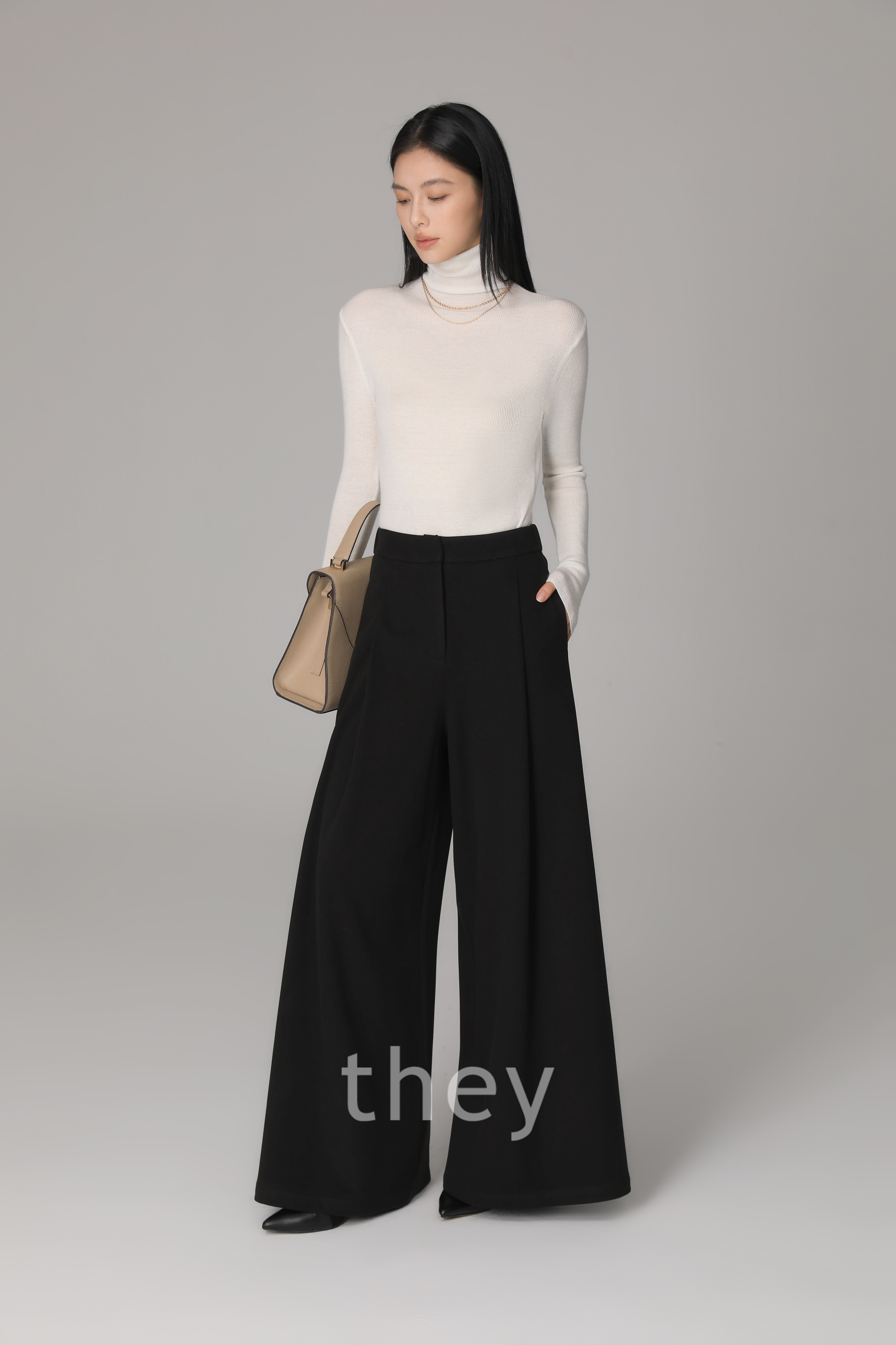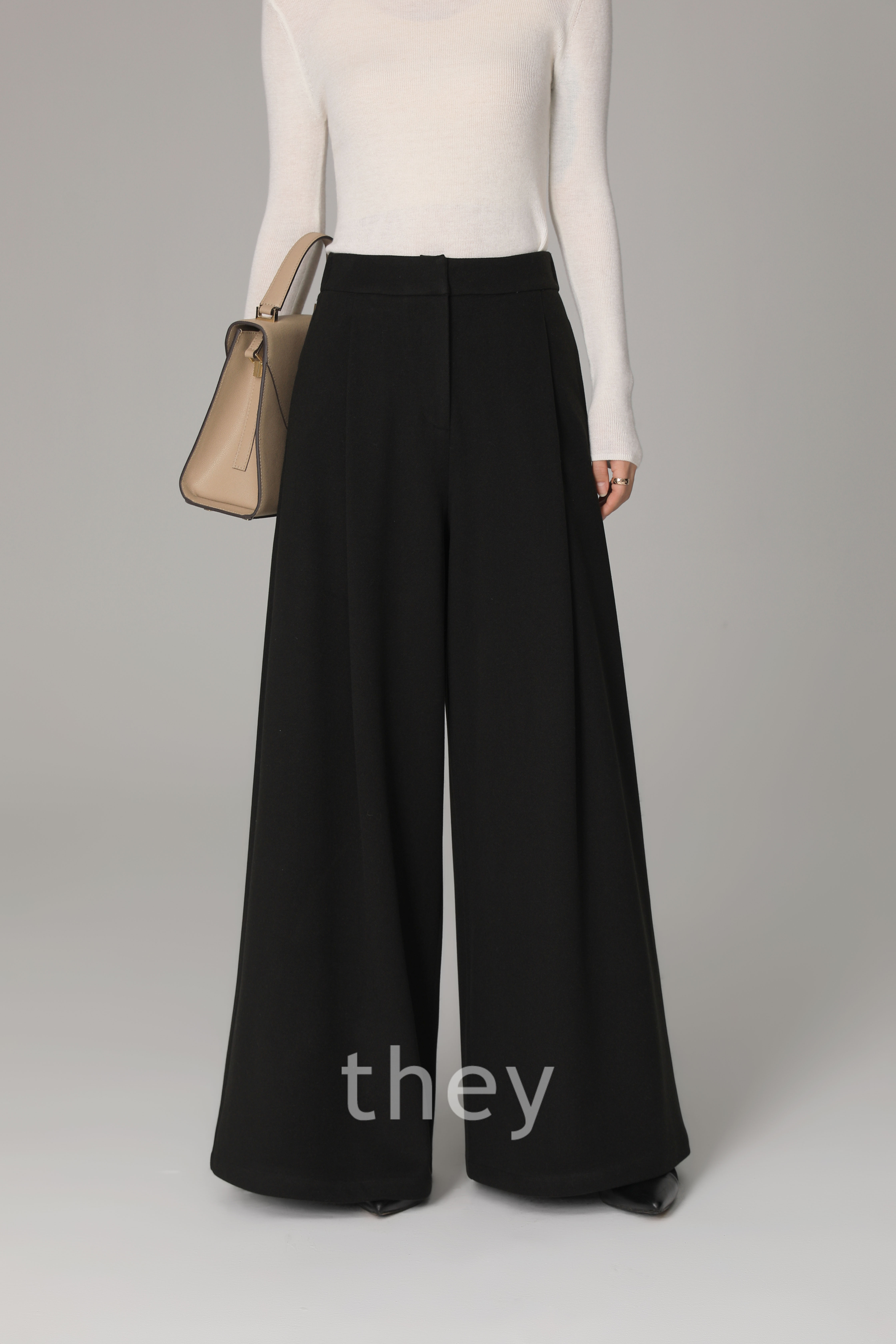 They Thickened Woolen Black Wide-Leg Pants for Autumn and Winter, High-Waisted, Loose-Fitting, Slimming, Long Pants with a High-End Drape, Dress Pants