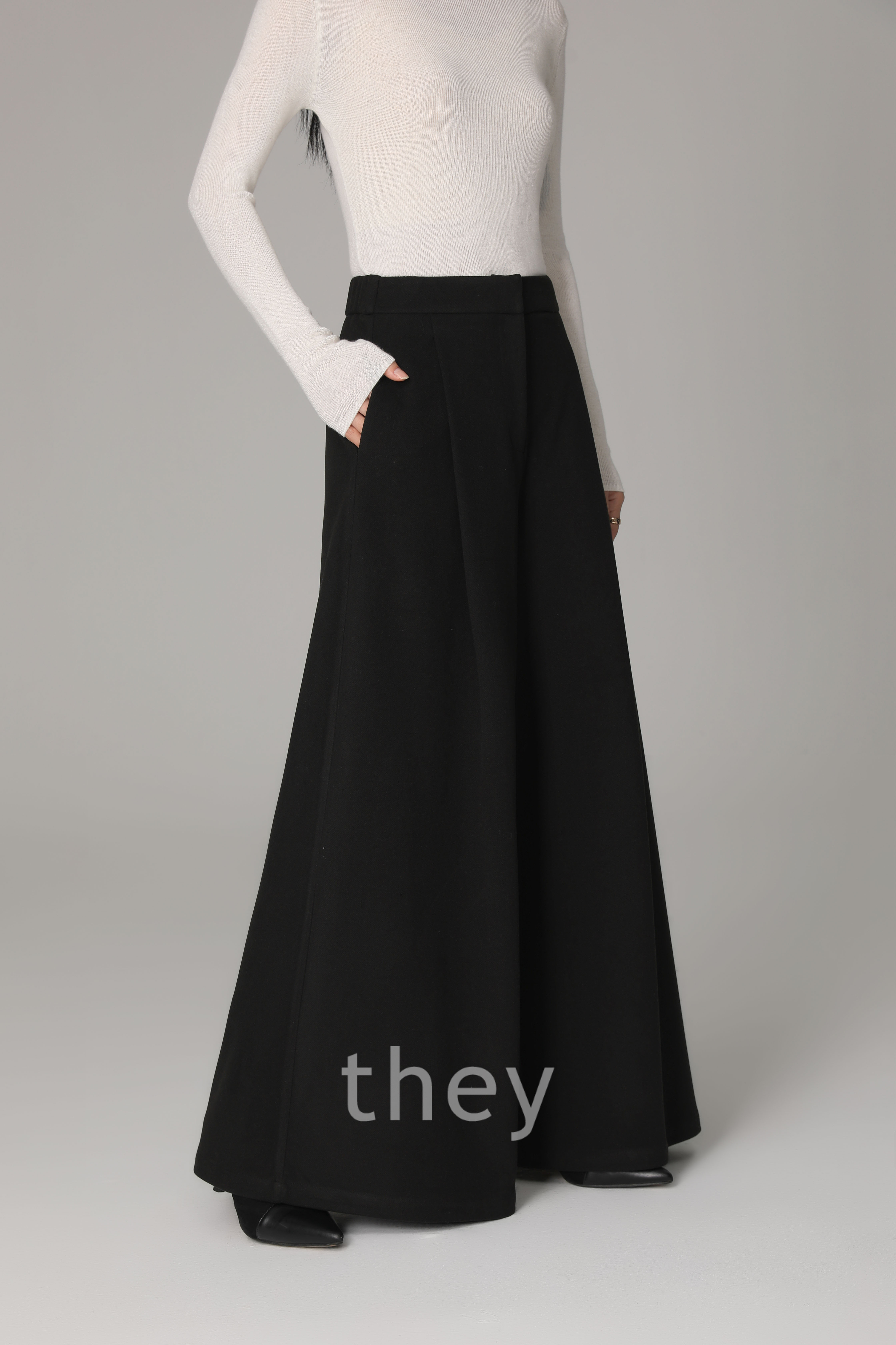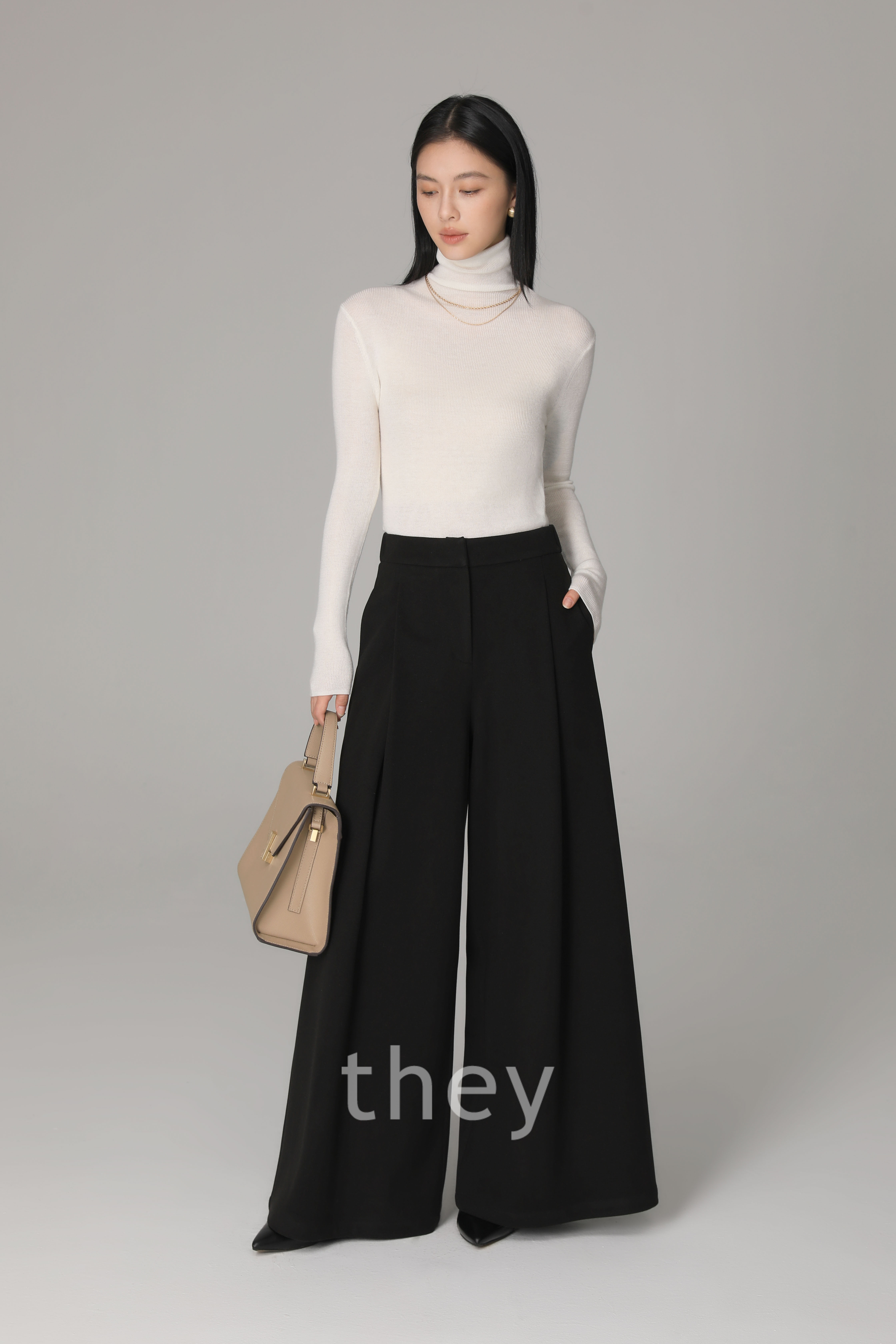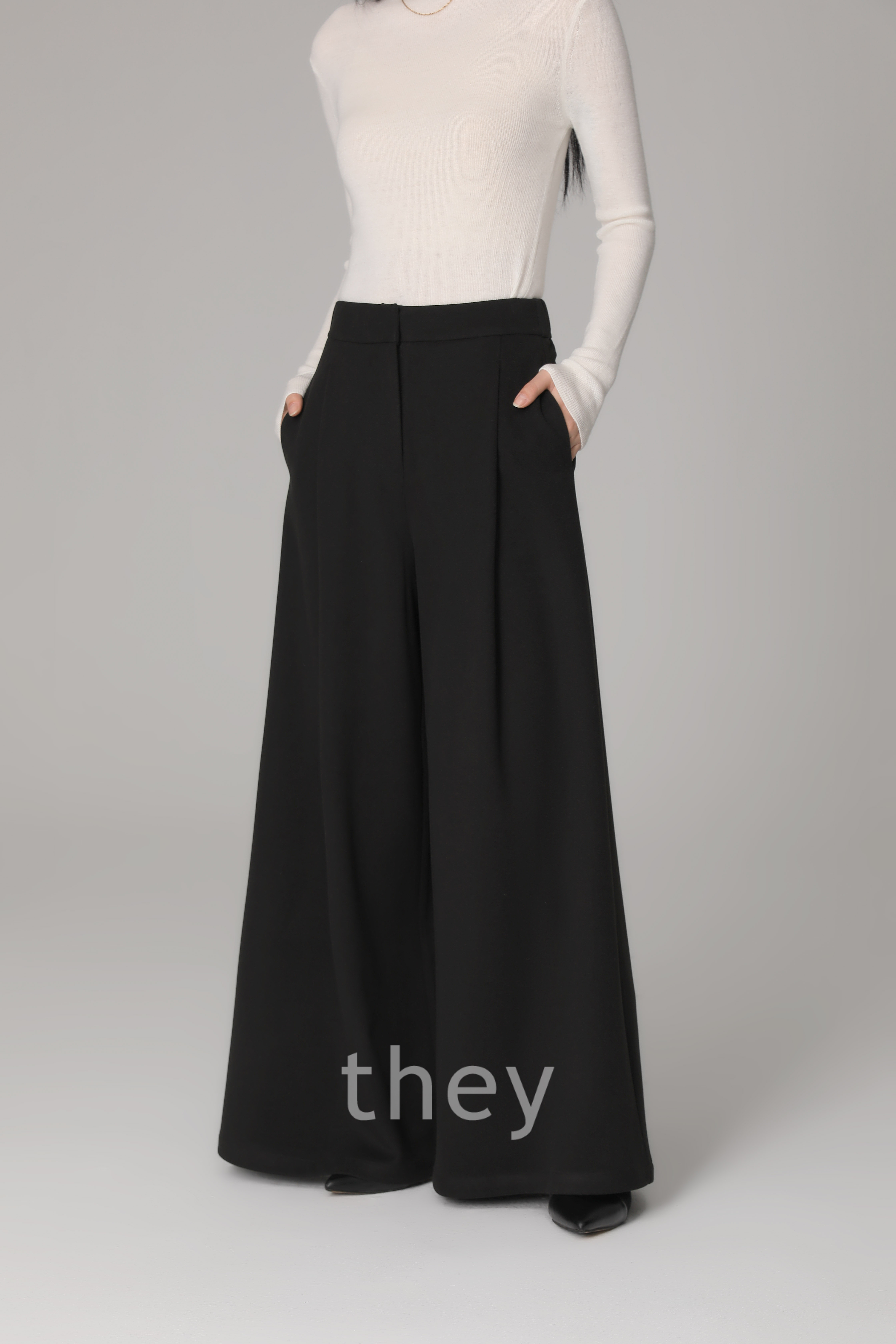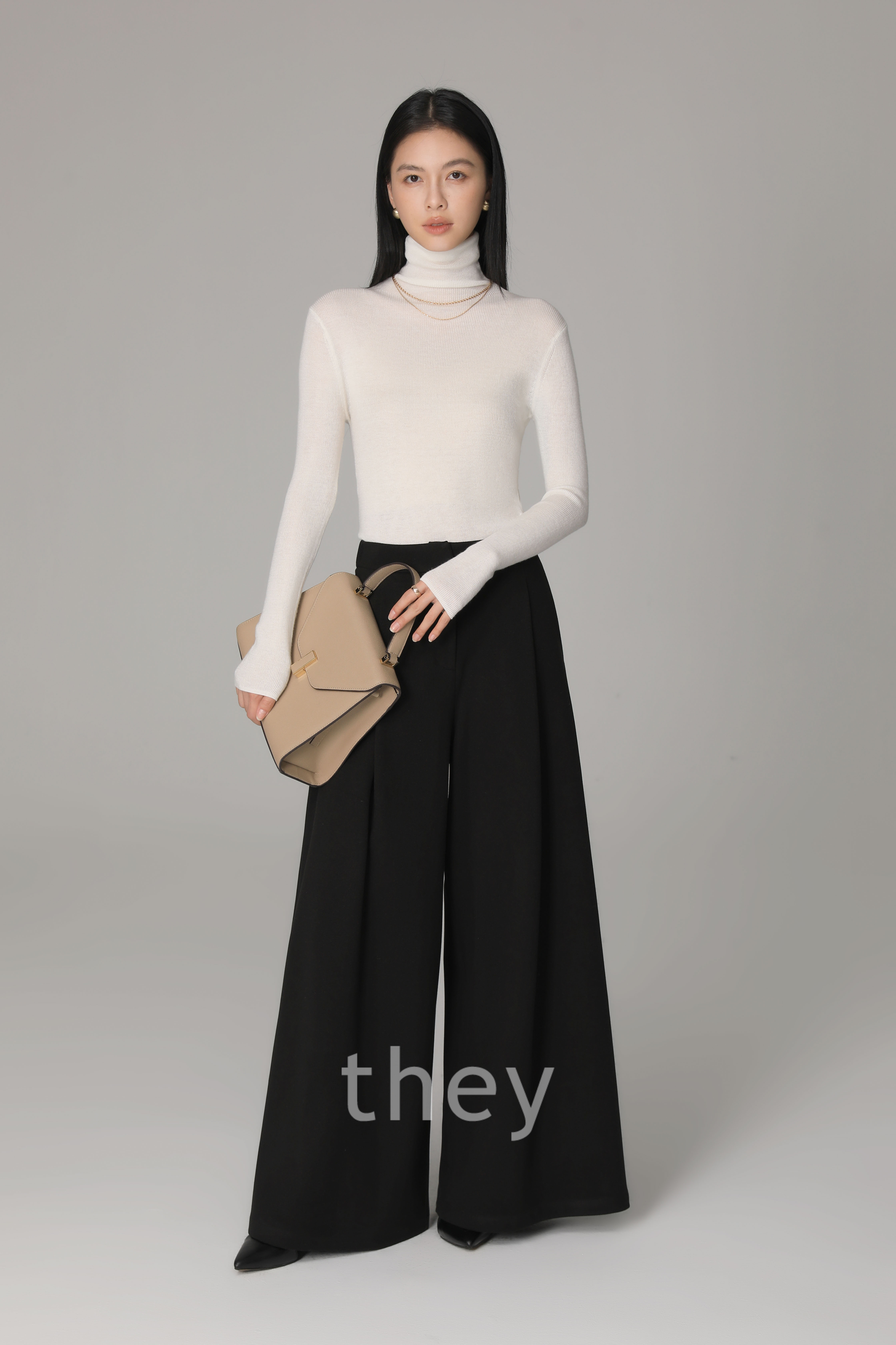 They Thickened Woolen Black Wide-Leg Pants for Autumn and Winter, High-Waisted, Loose-Fitting, Slimming, Long Pants with a High-End Drape, Dress Pants