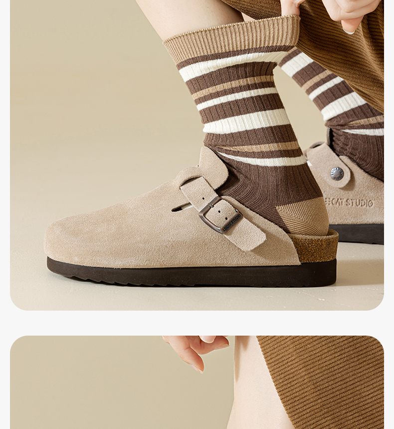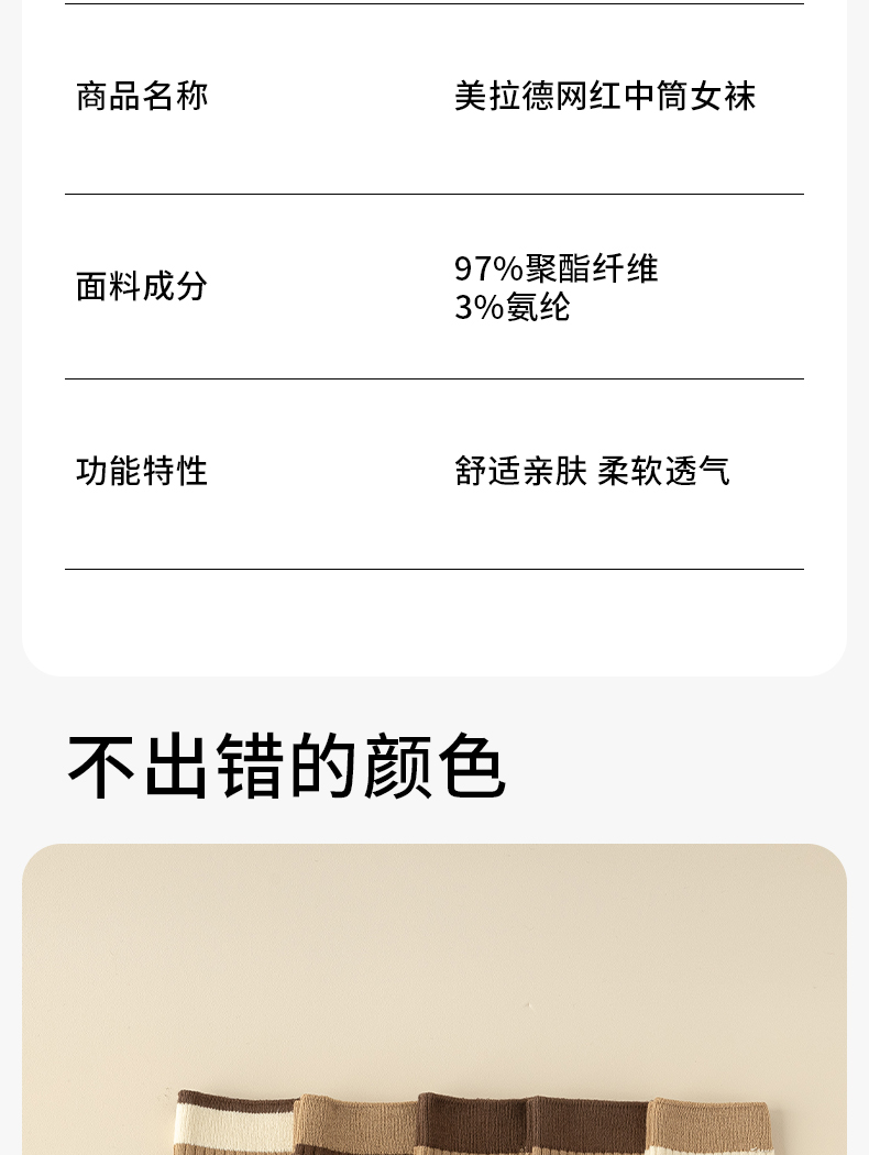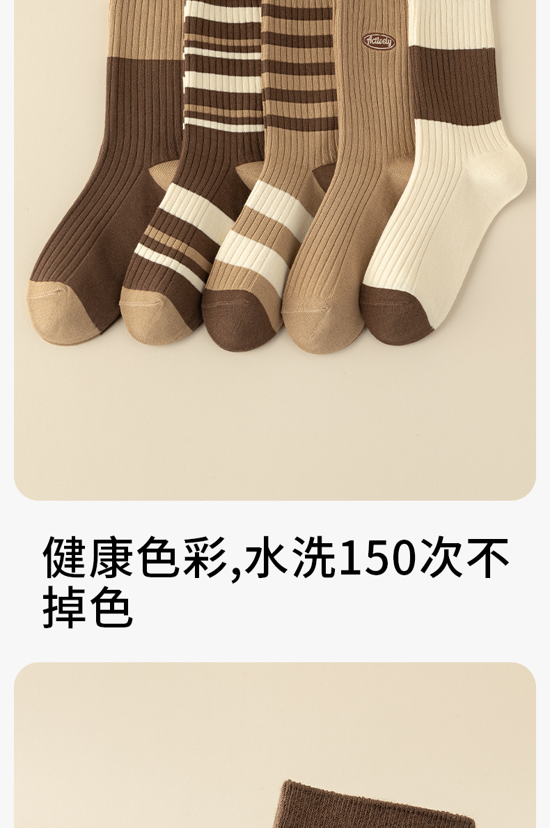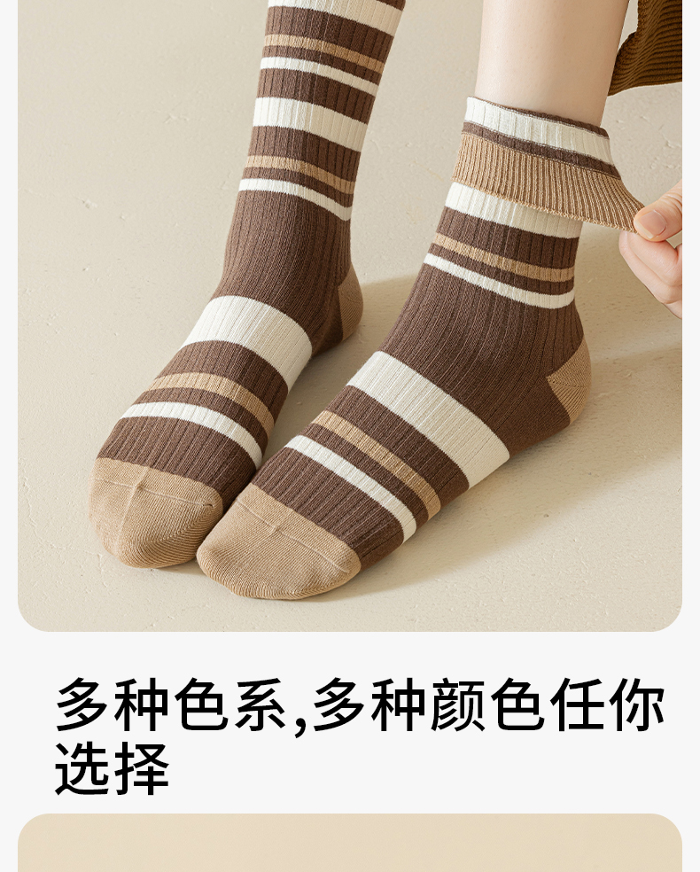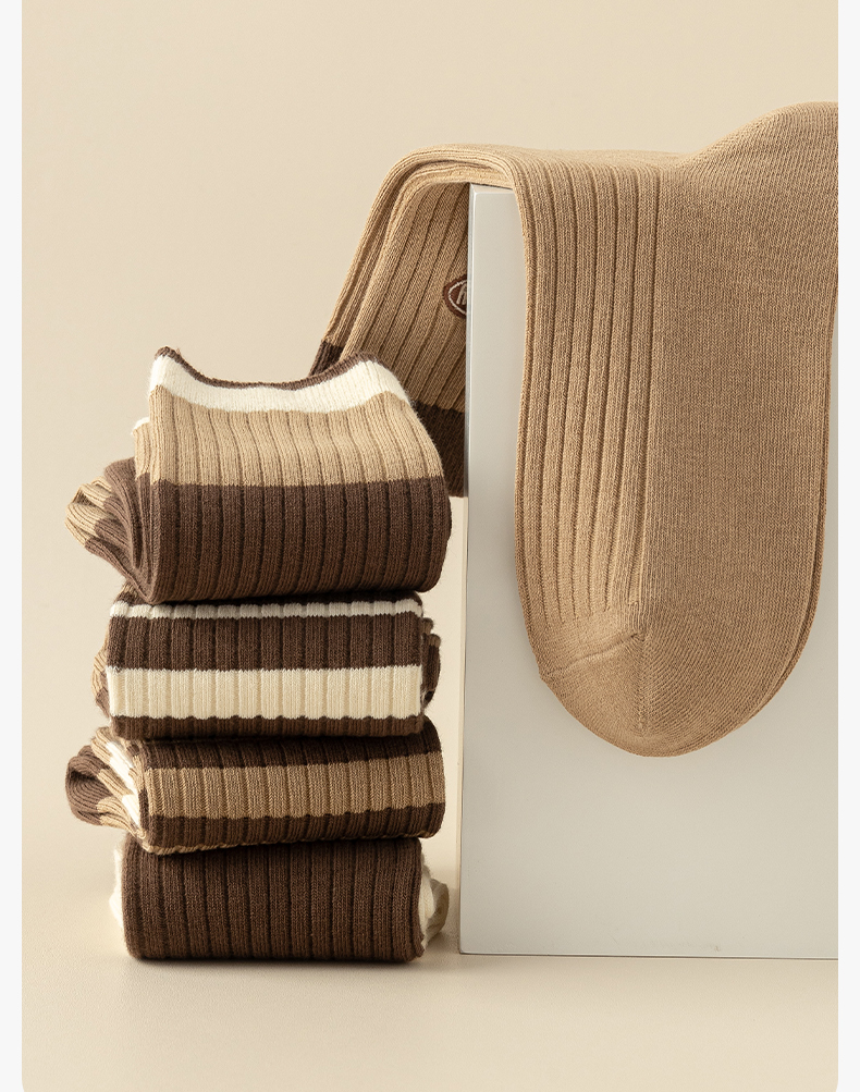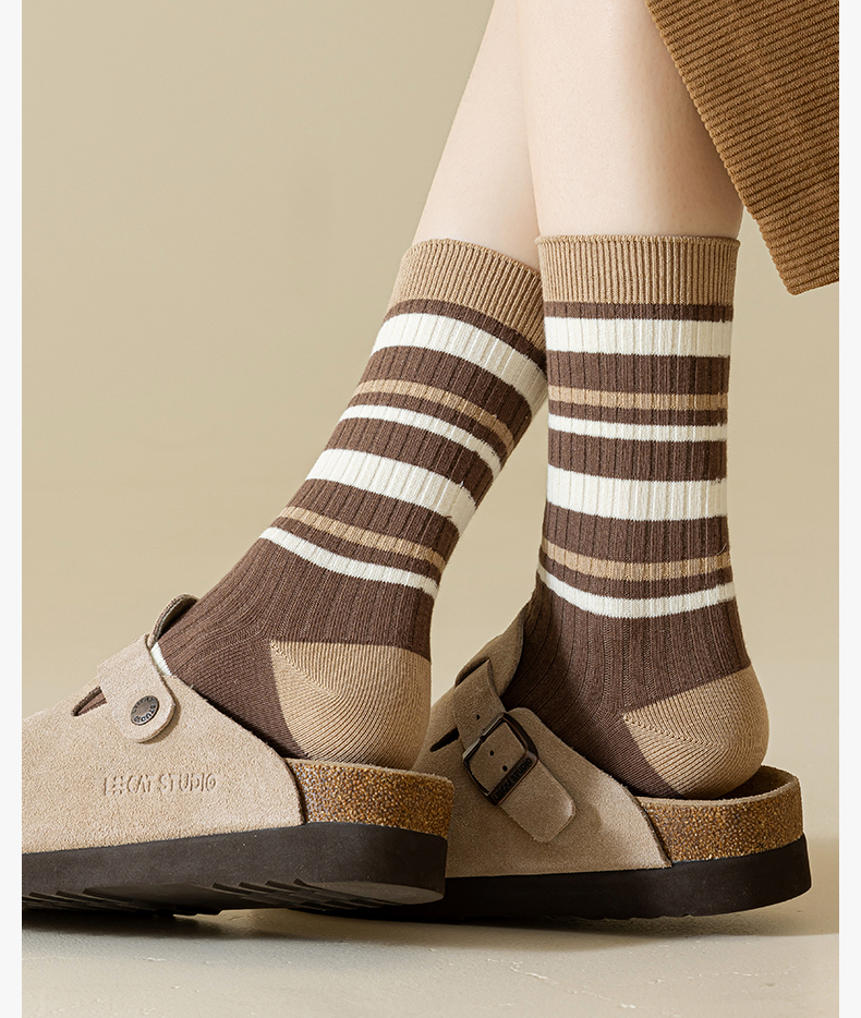 Palando Socks for Women, Mid-Calf Socks, Spring and Autumn Style, Coffee Color, Slouch Socks, Simple and Versatile Striped Socks for Women