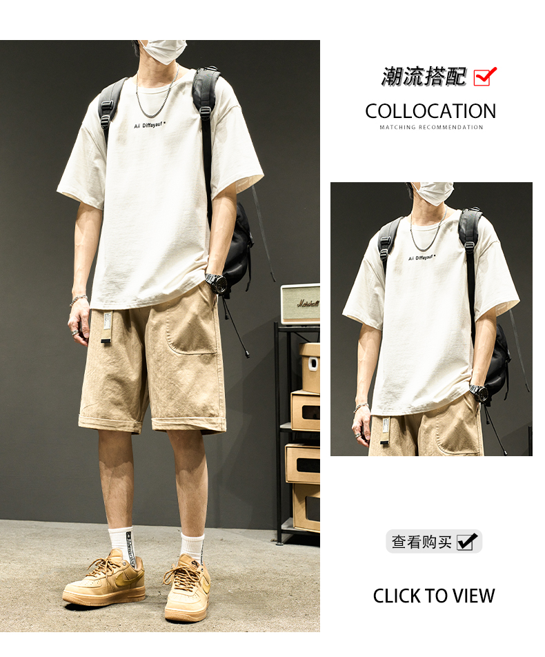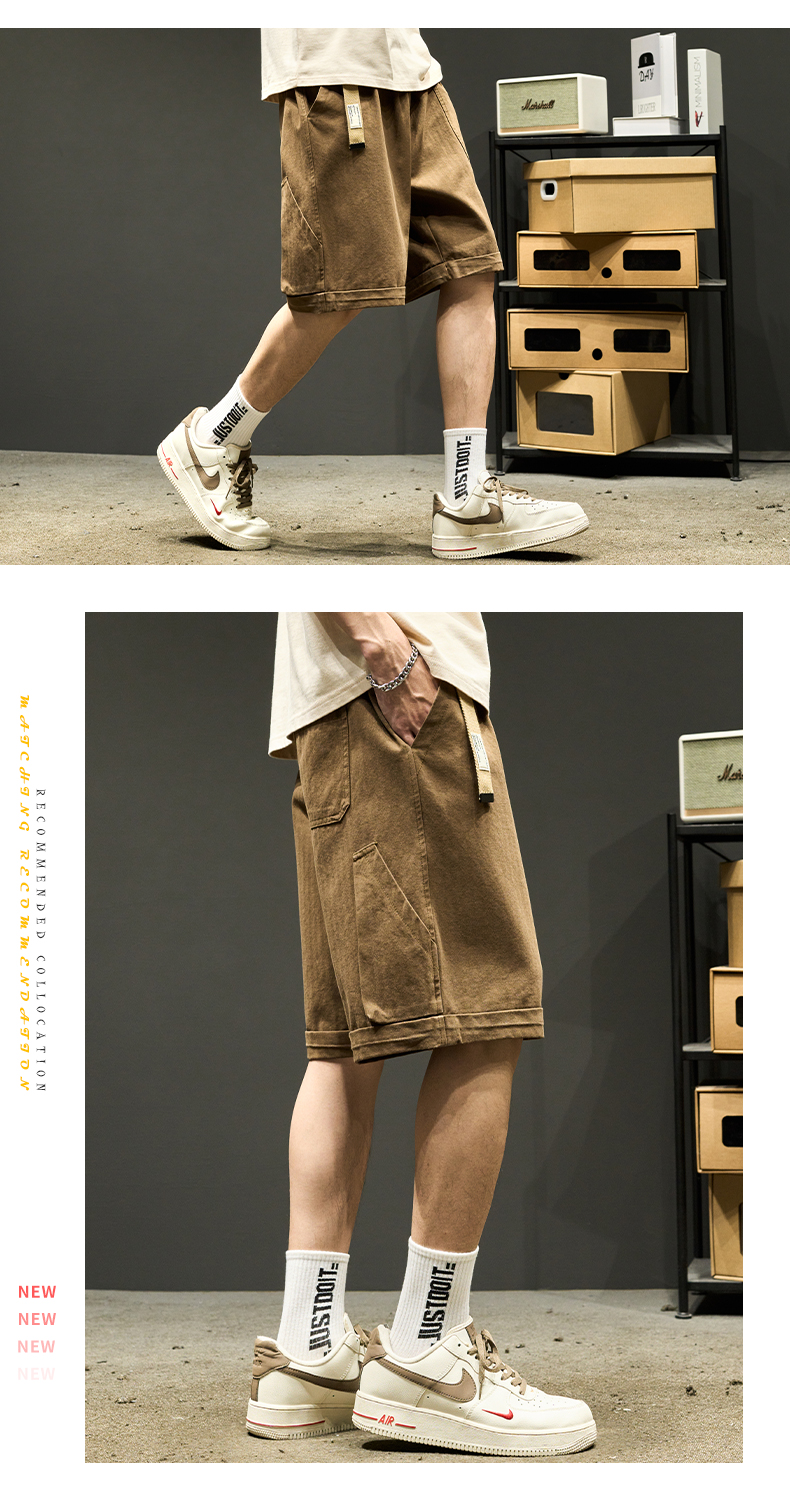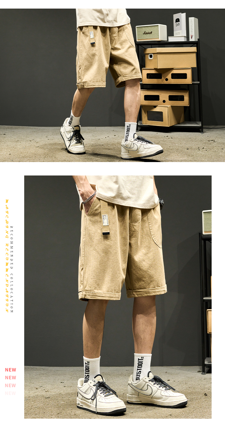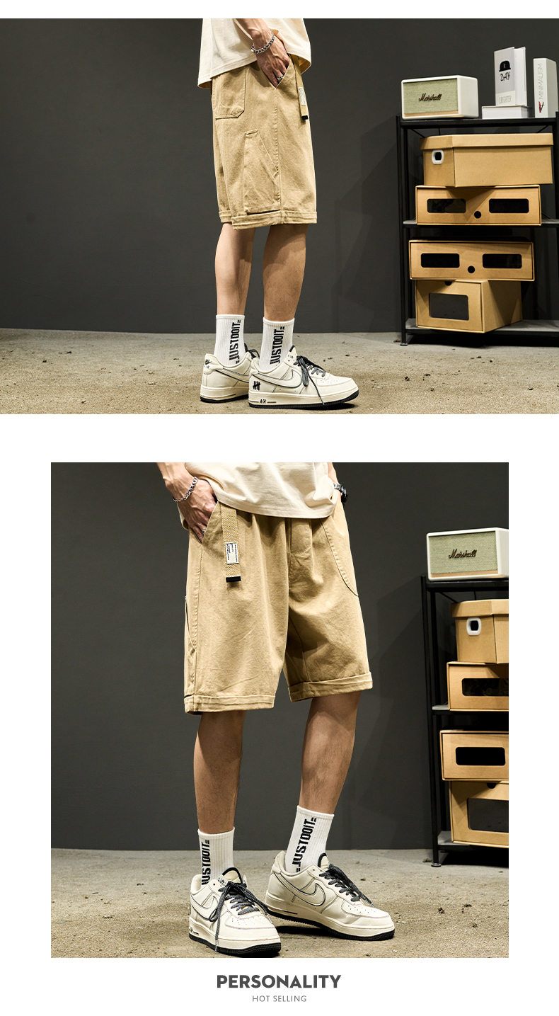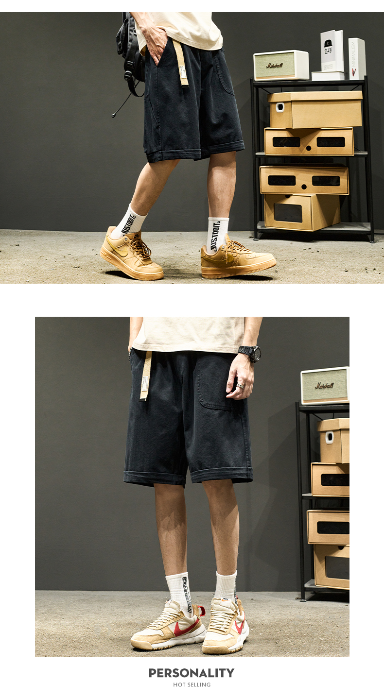 Japanese-Style Work Shorts for Men, Summer Loose Fit, Pure Cotton, Casual Straight-Leg, Thin Five-Point Shorts, Simple Trendy Black Mid-Length Pants