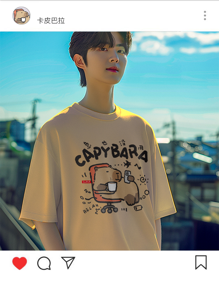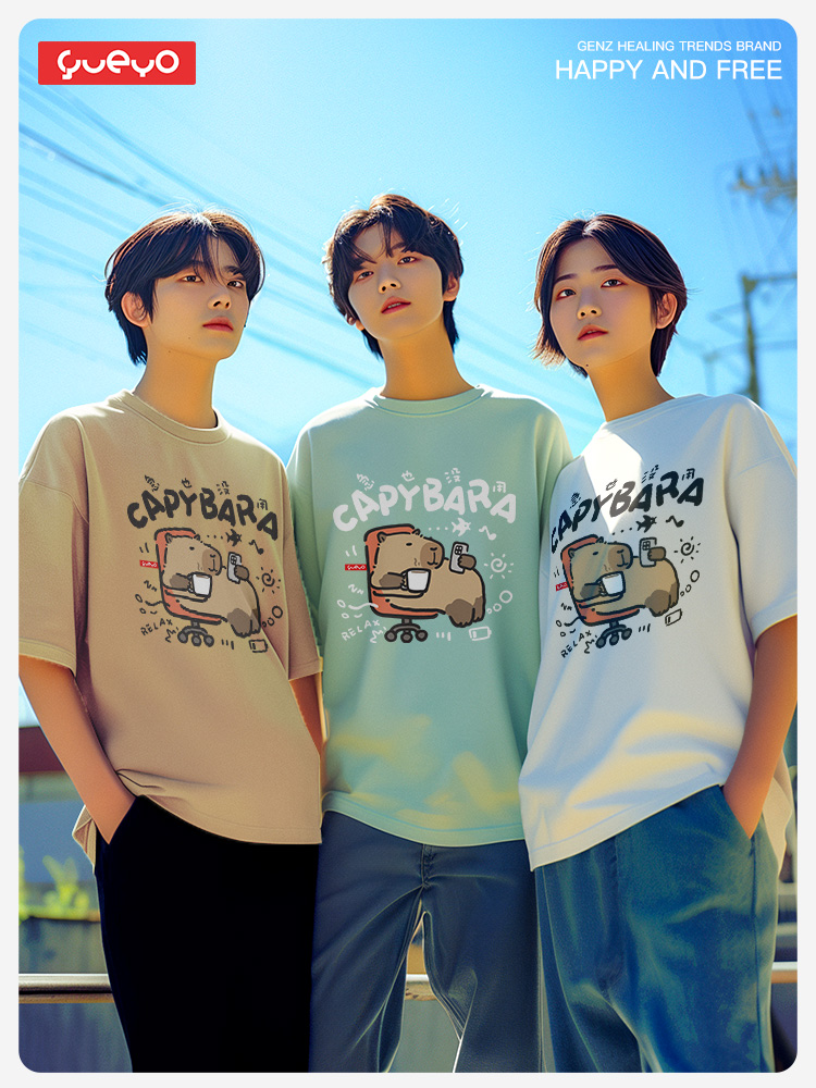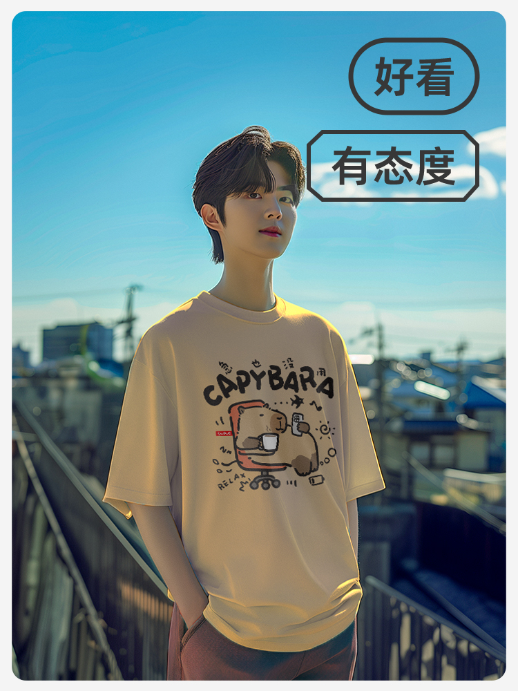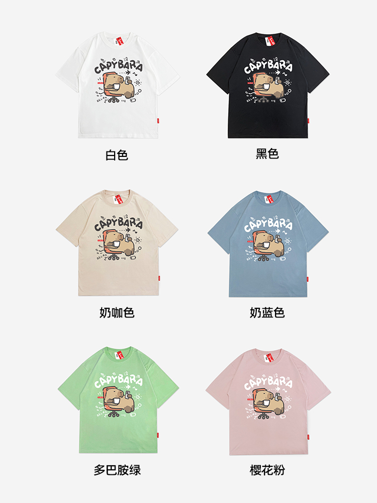 Yueyou Capibara Funny Working Capybara Calm Outfit Cute Summer Pure Cotton Drop Shoulder Short Sleeve T-Shirt for Men