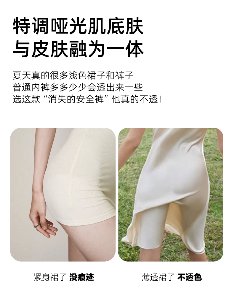 Skin-Colored Safety Shorts to Prevent Exposure, Women's Summer Thin Seamless Leggings and Underwear Two-In-One, Non-Curling Boxer Shorts