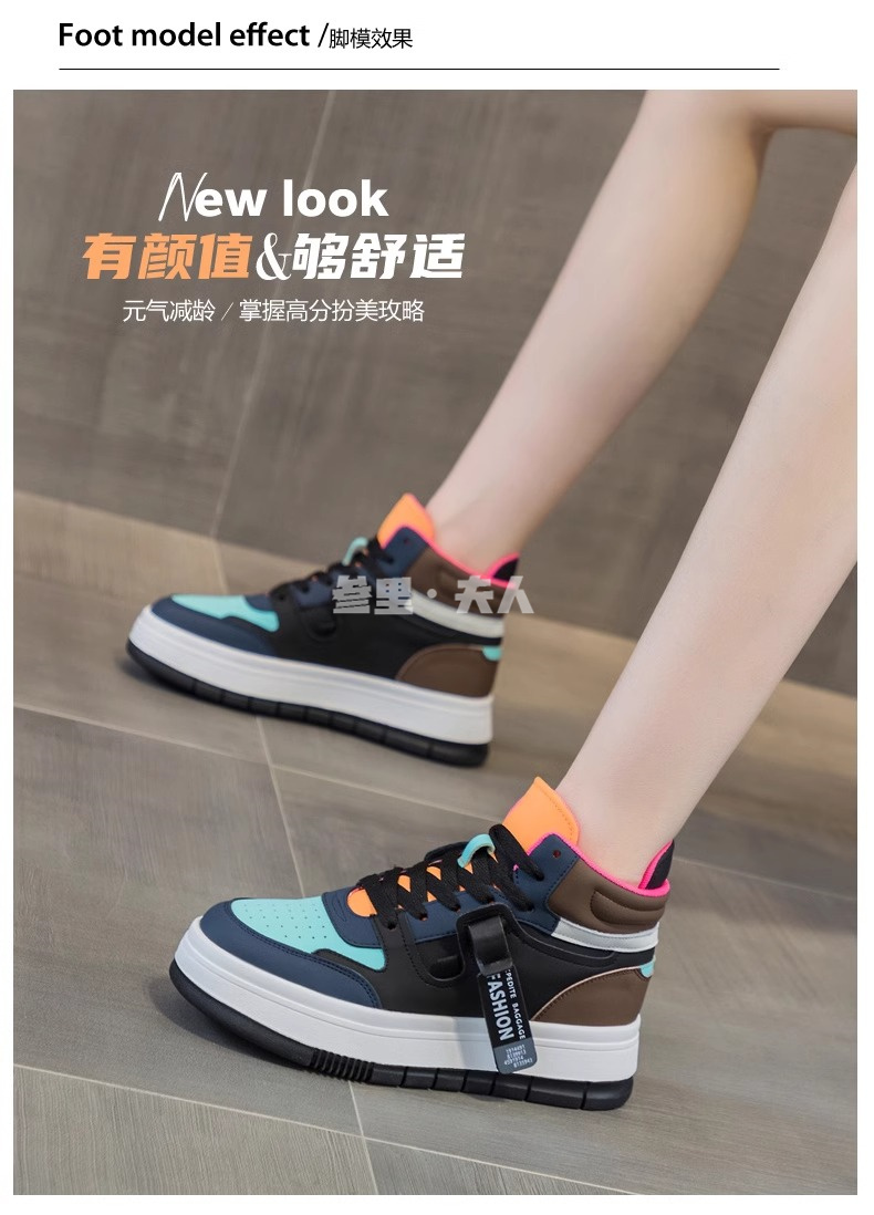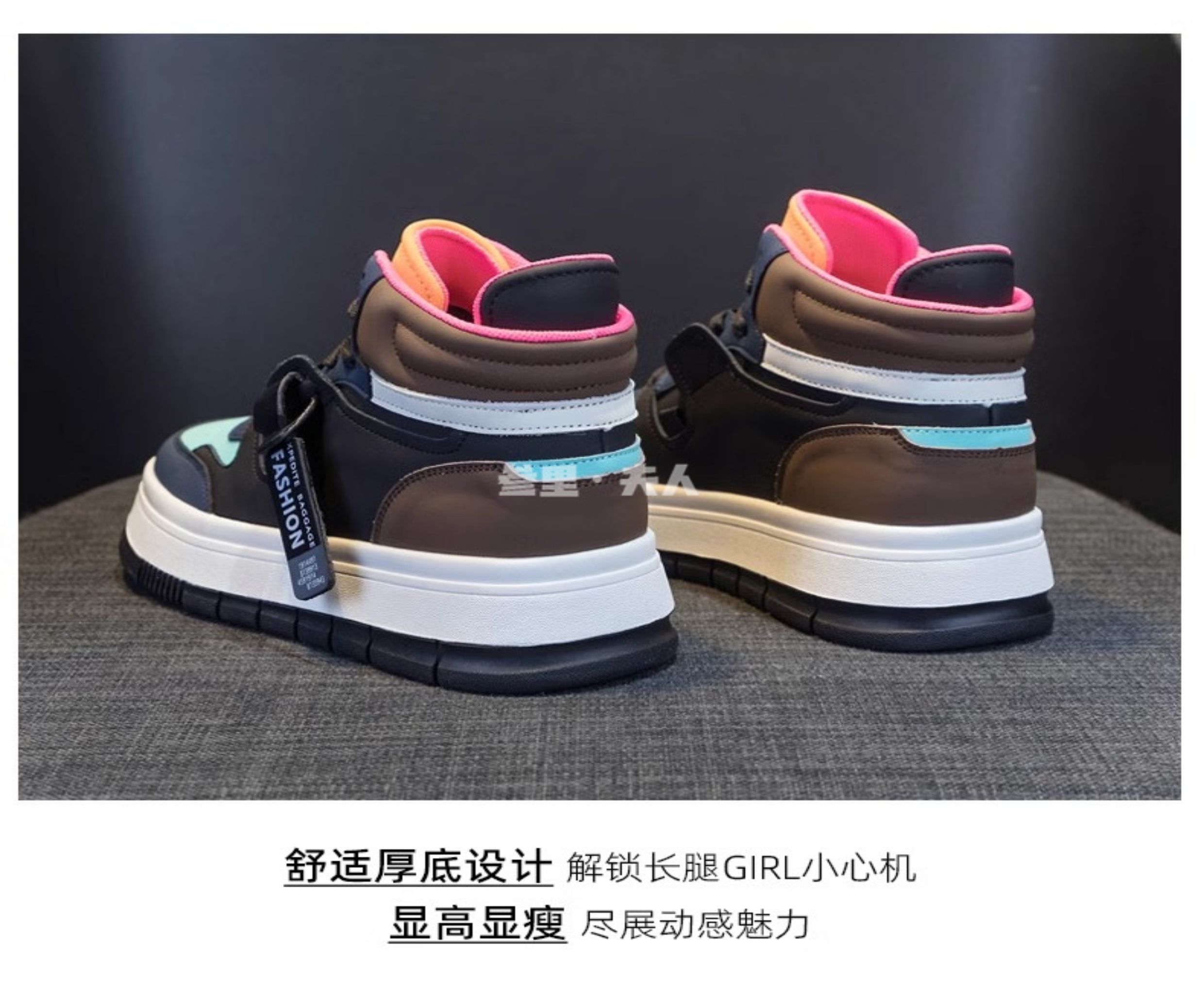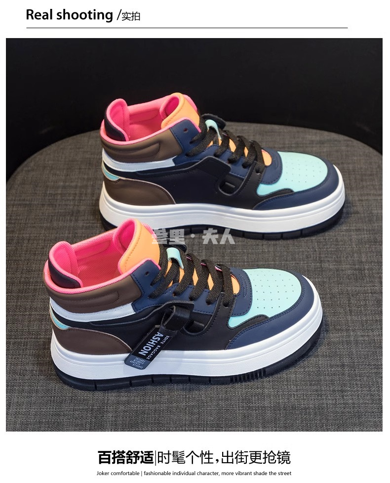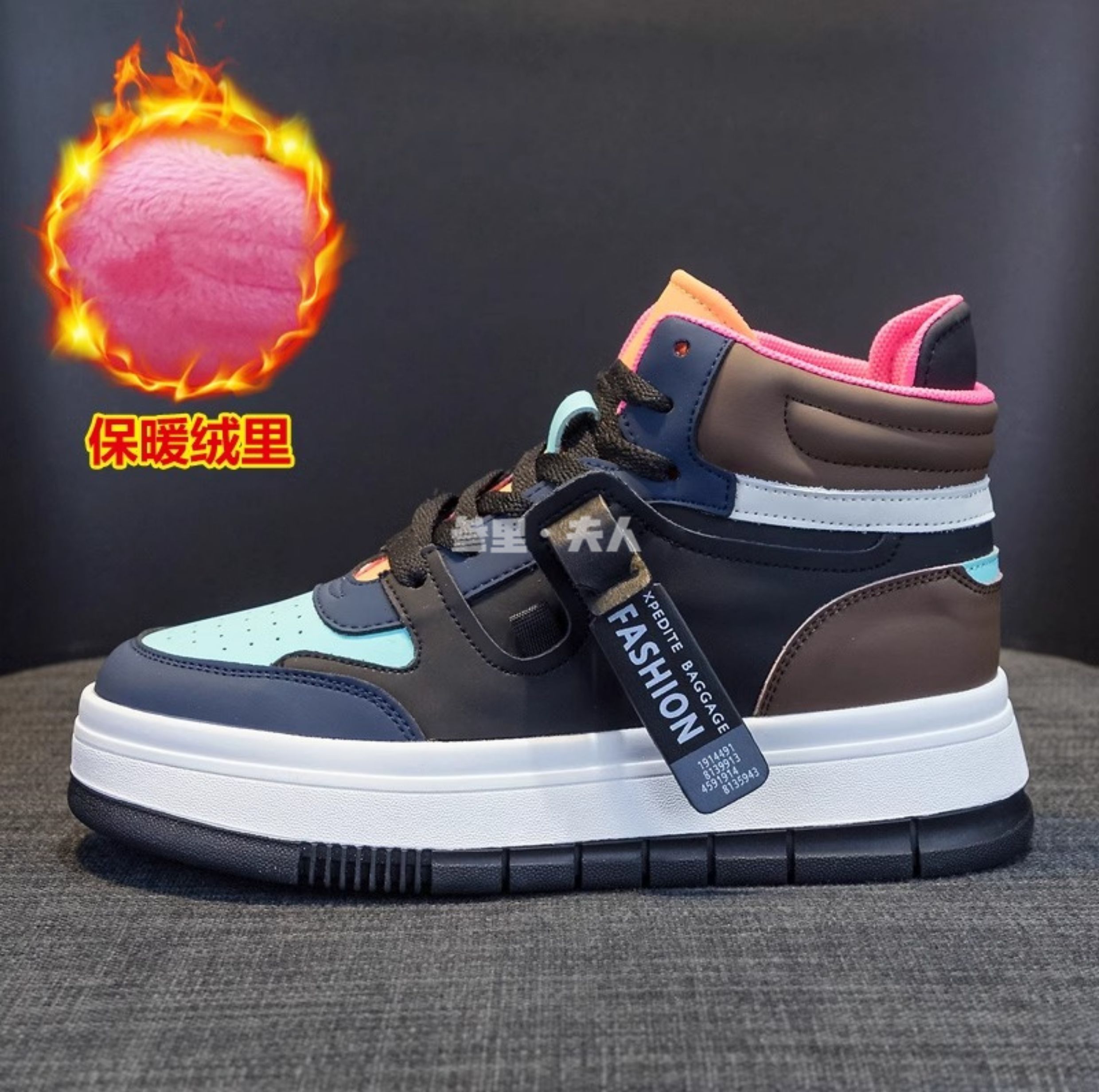 Sanli Fashion Lace-Up Sneakers for Women 2025 New Comfortable Versatile Round-Toe Fleece-Lined High-Top Shoes Color-Blocked Casual Shoes Trendy