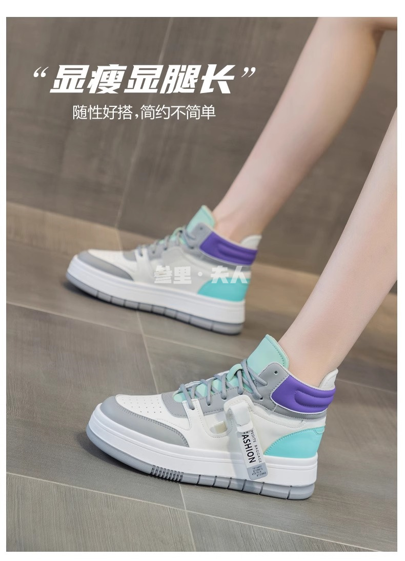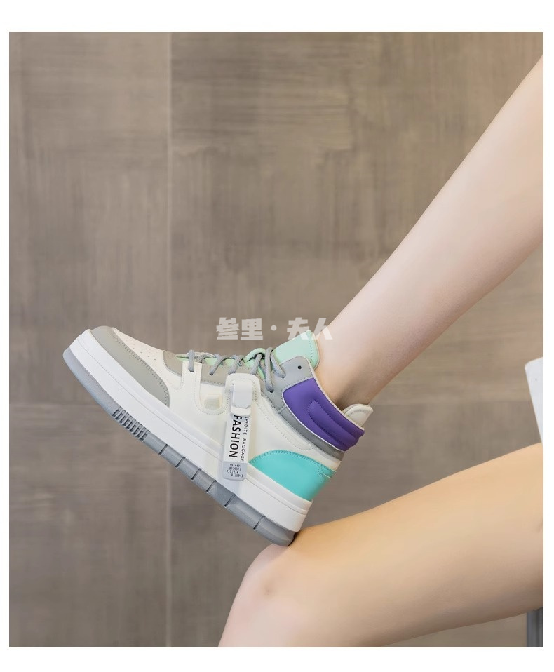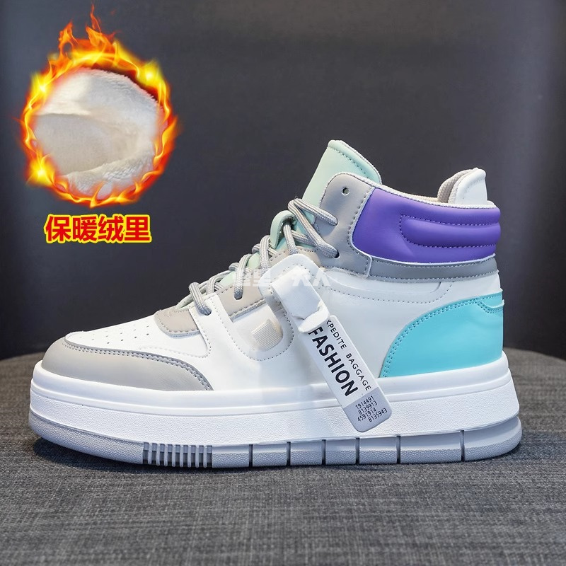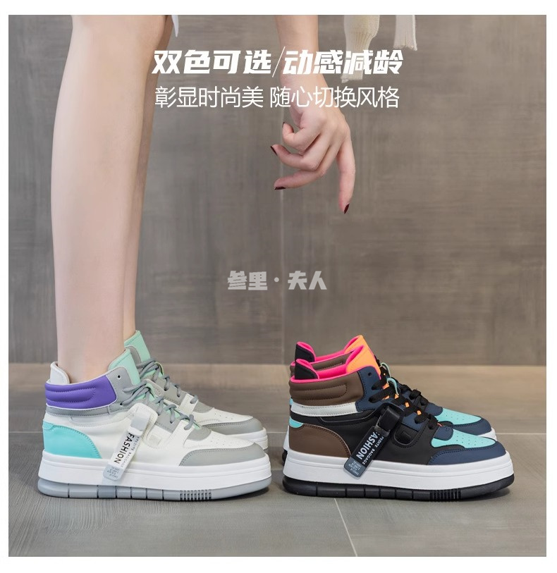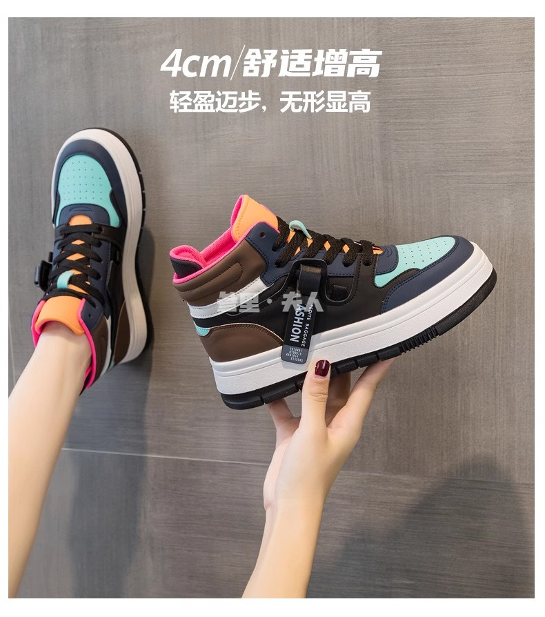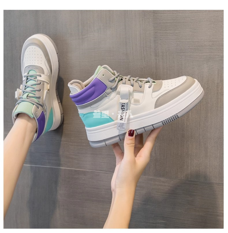 Sanli Fashion Lace-Up Sneakers for Women 2025 New Comfortable Versatile Round-Toe Fleece-Lined High-Top Shoes Color-Blocked Casual Shoes Trendy