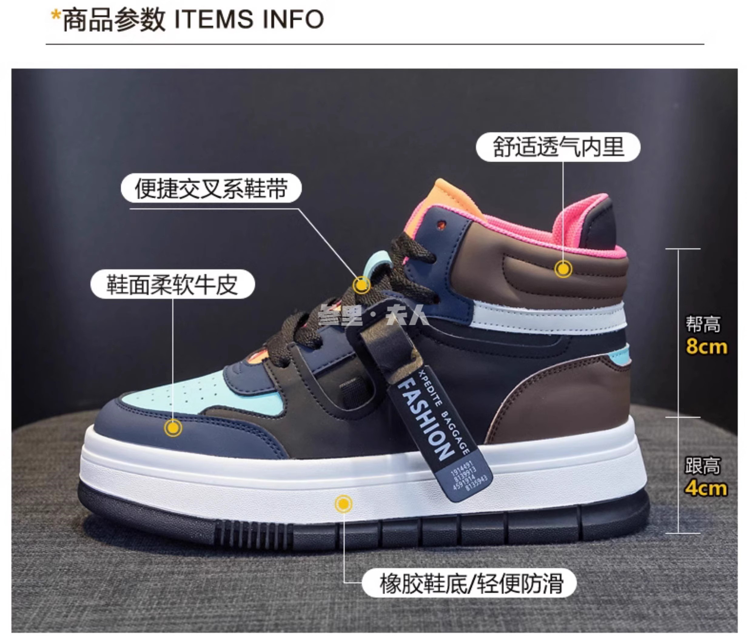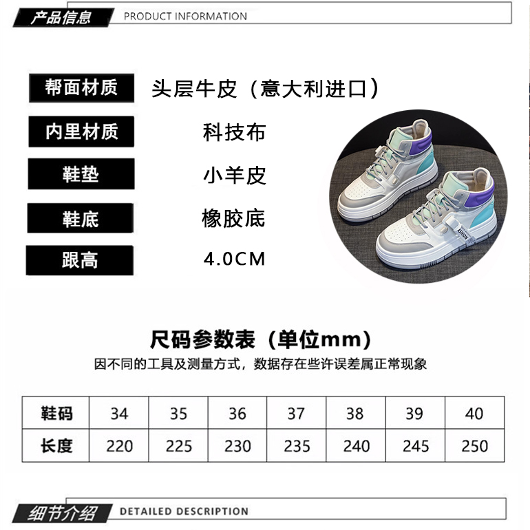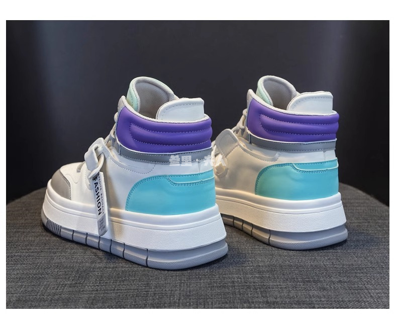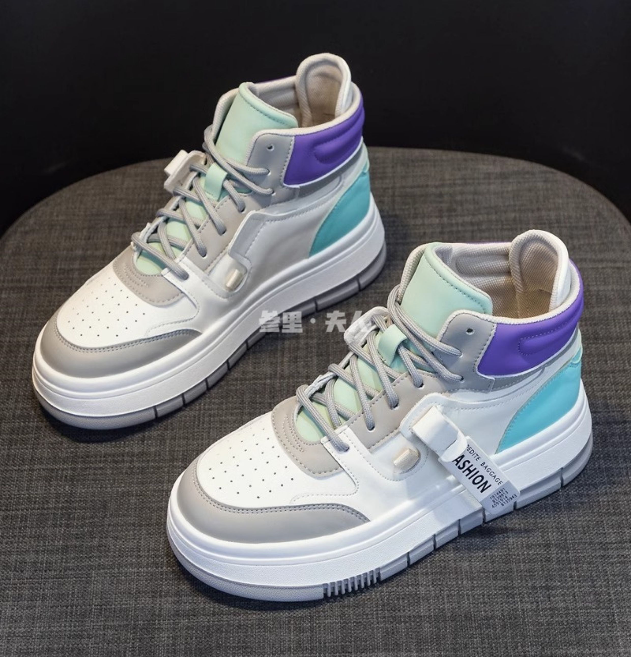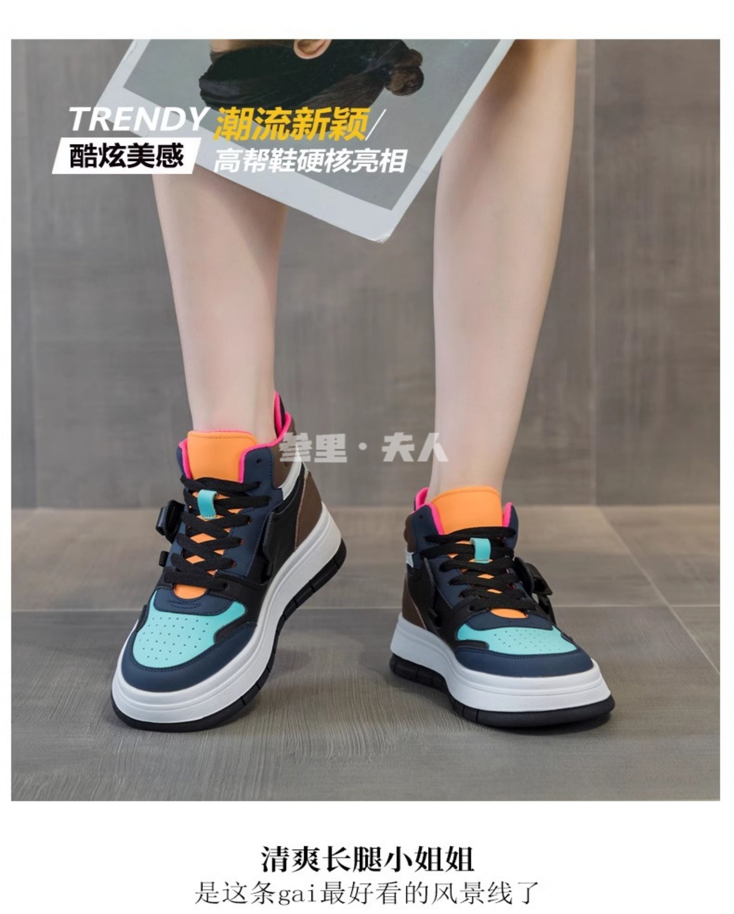 Sanli Fashion Lace-Up Sneakers for Women 2025 New Comfortable Versatile Round-Toe Fleece-Lined High-Top Shoes Color-Blocked Casual Shoes Trendy