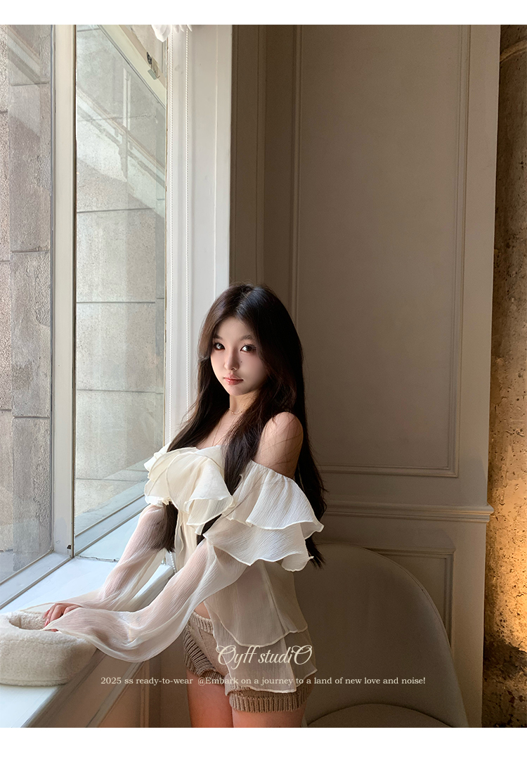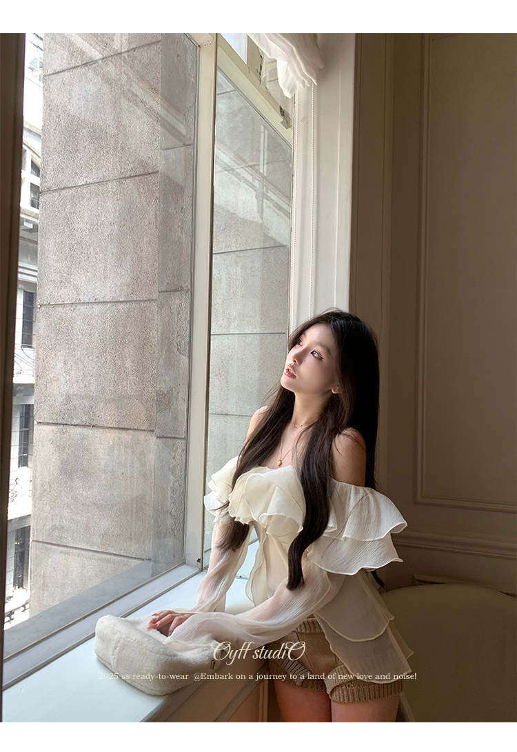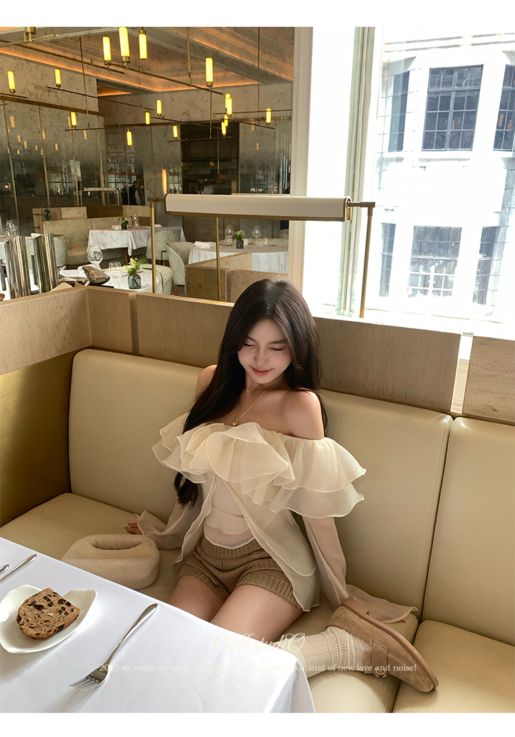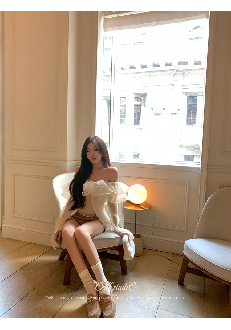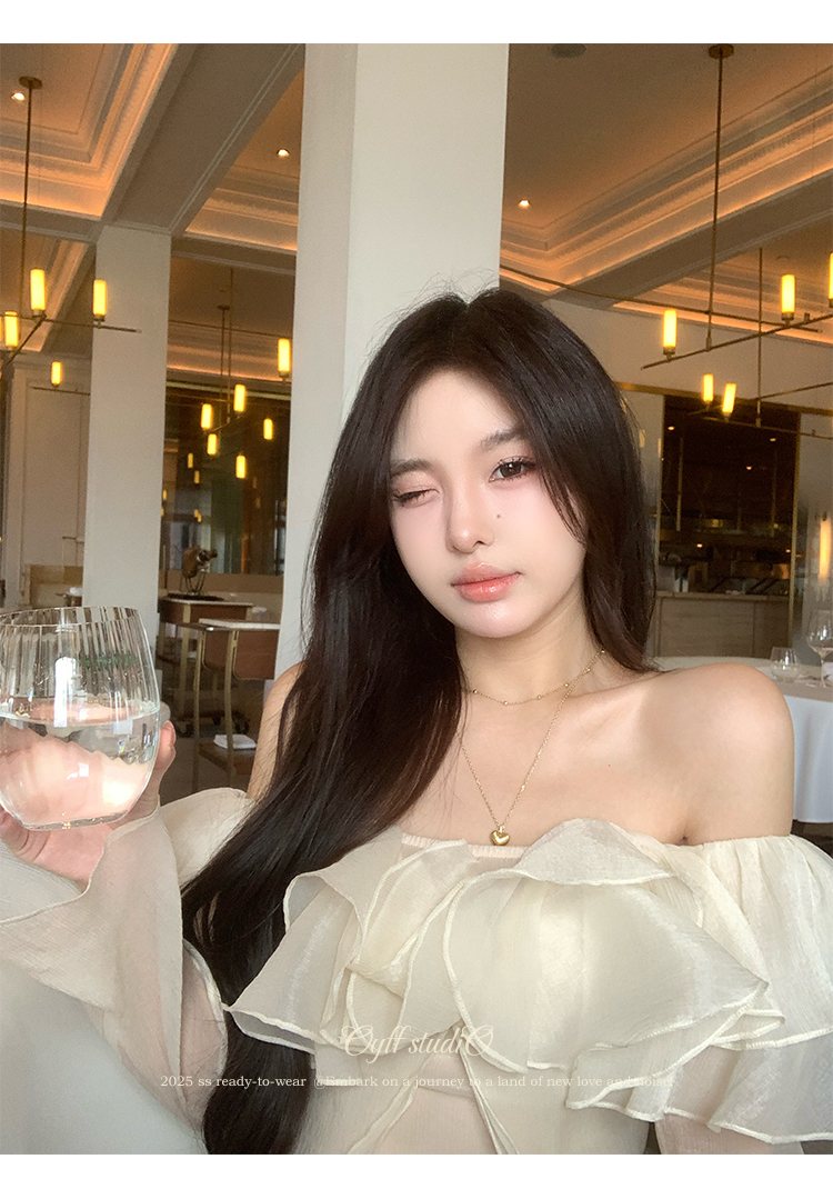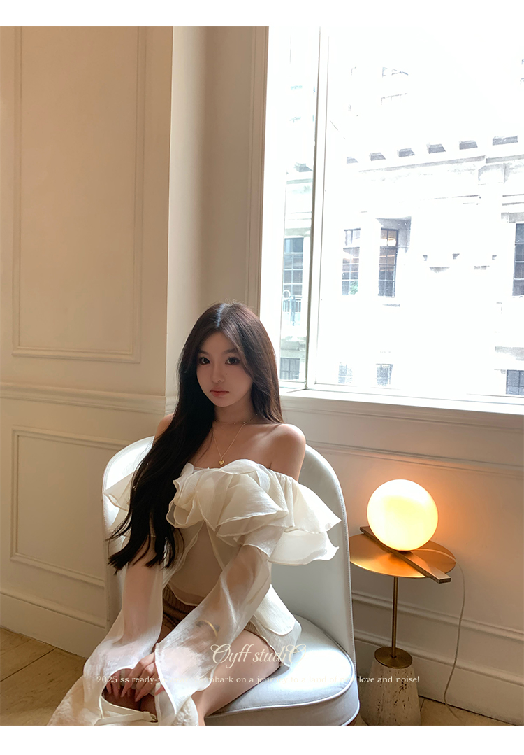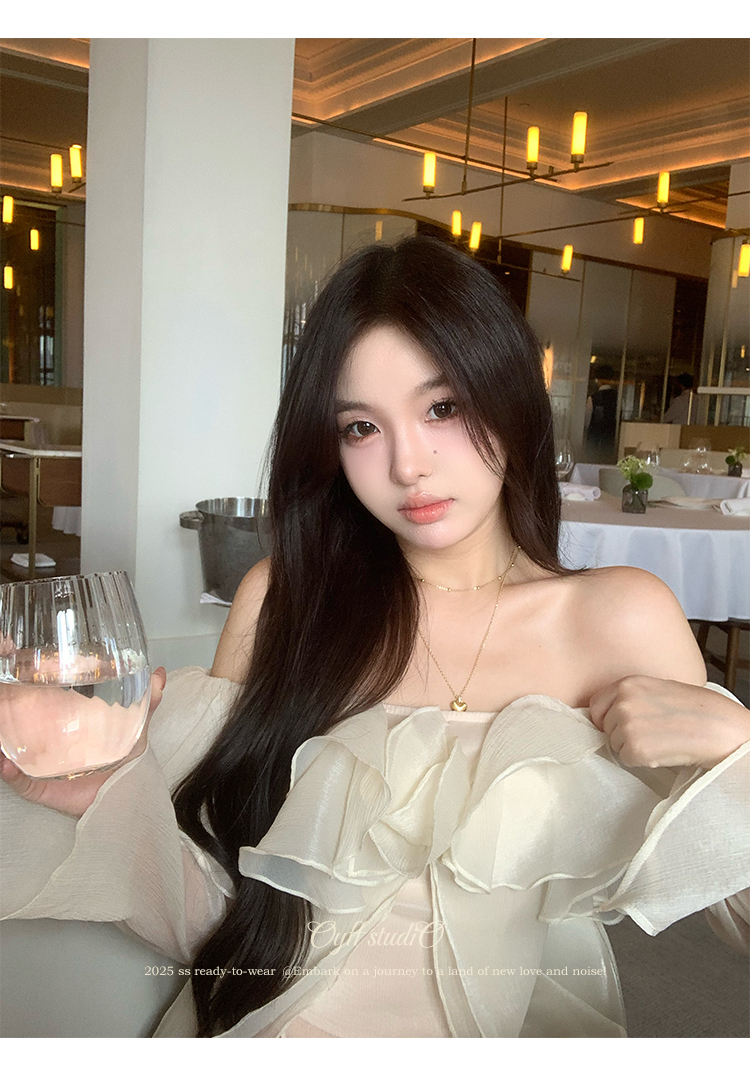 ①字肩 荷叶边把仙女氛围感从云端拽入日常