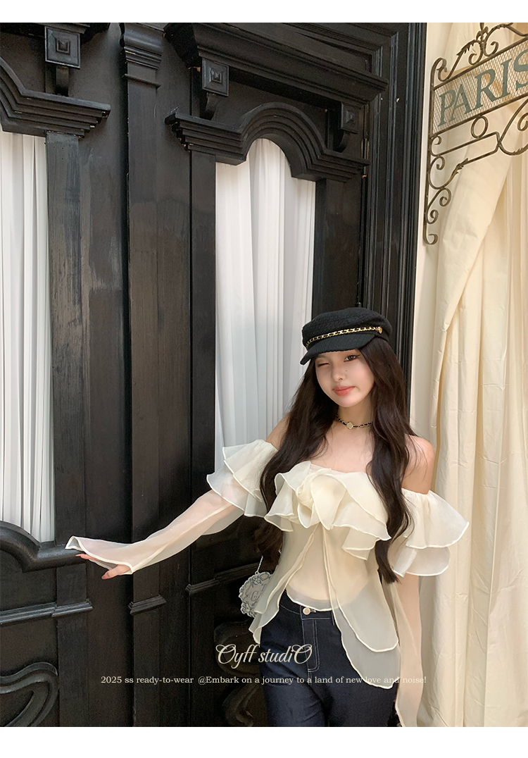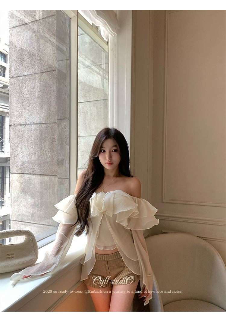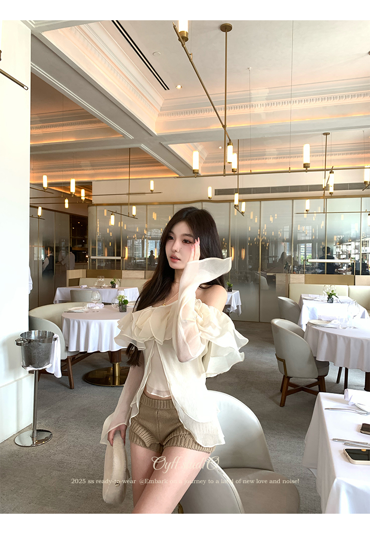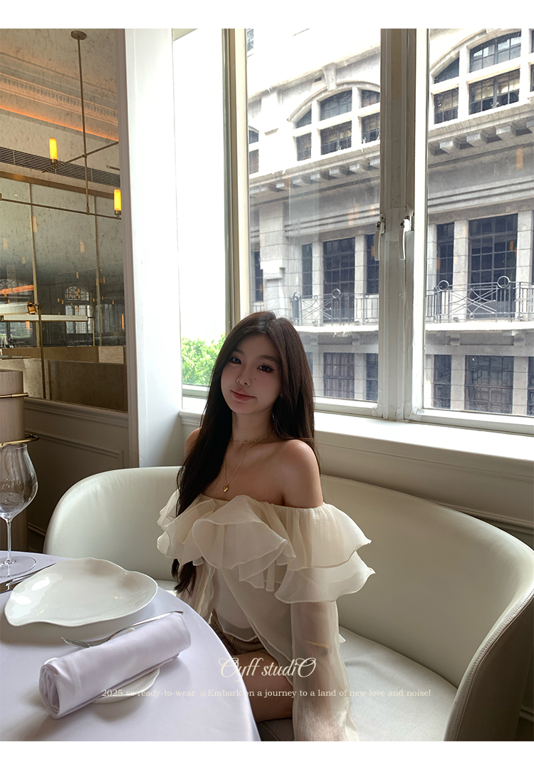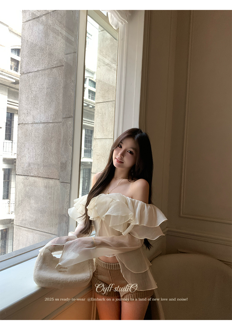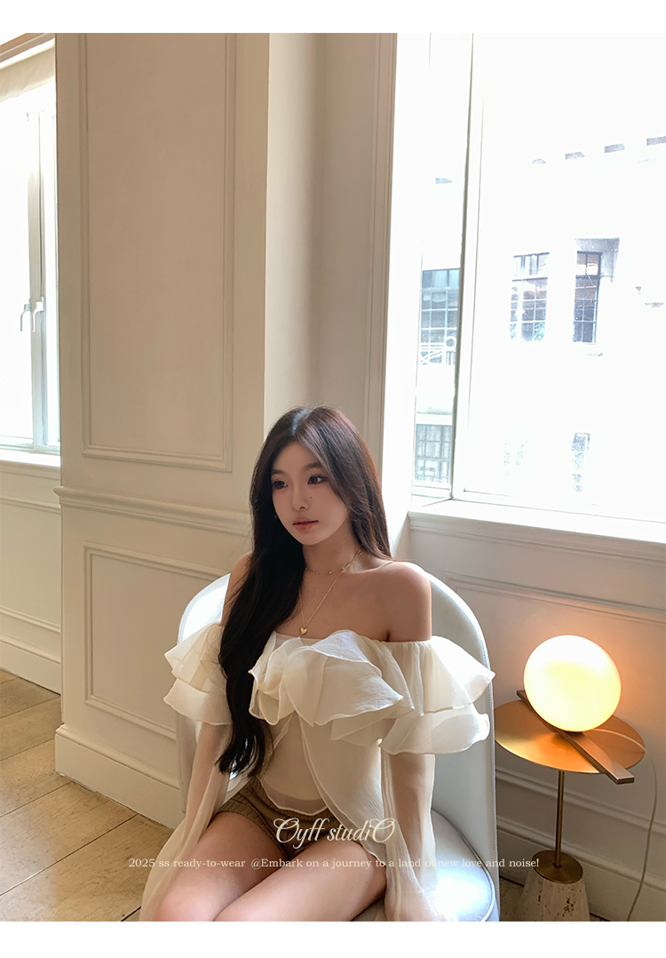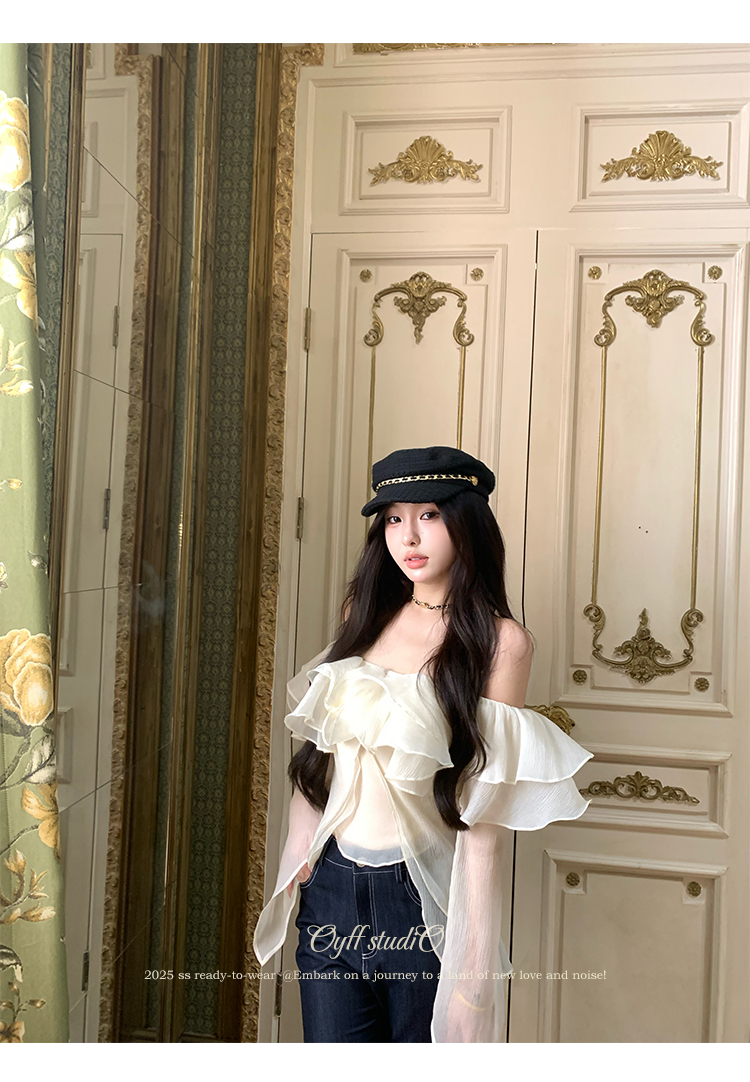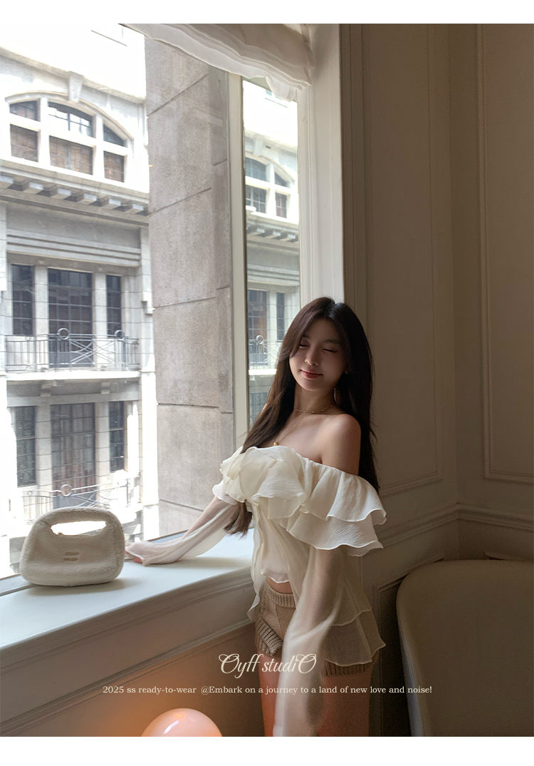 ①字肩 荷叶边把仙女氛围感从云端拽入日常