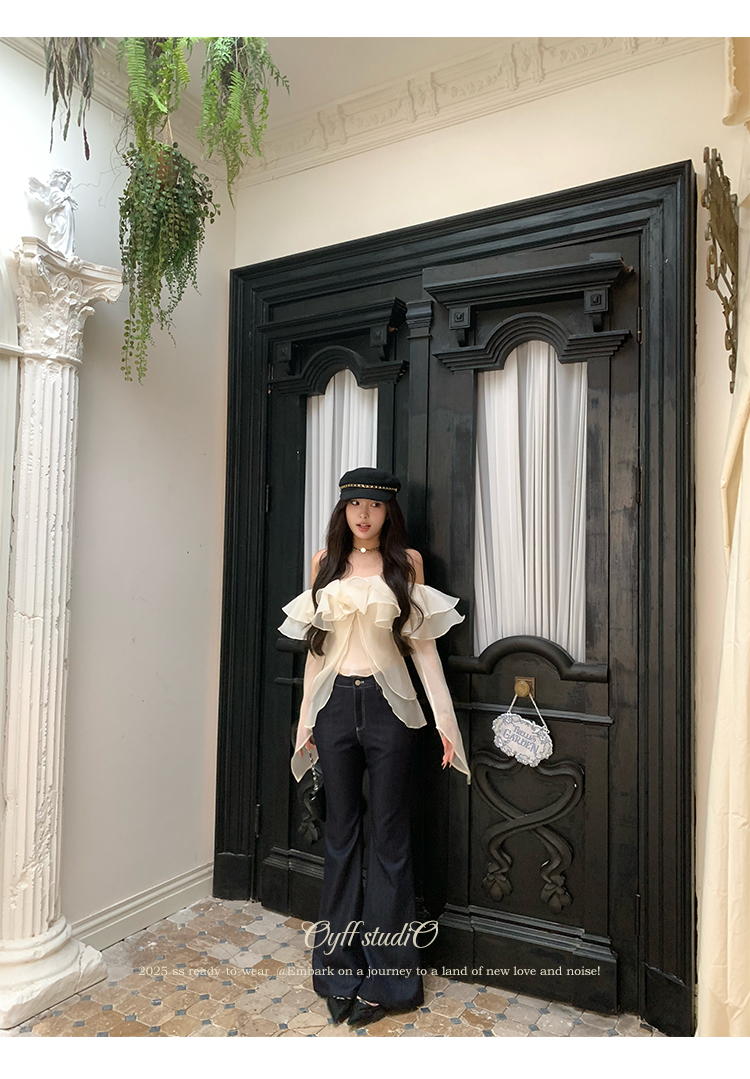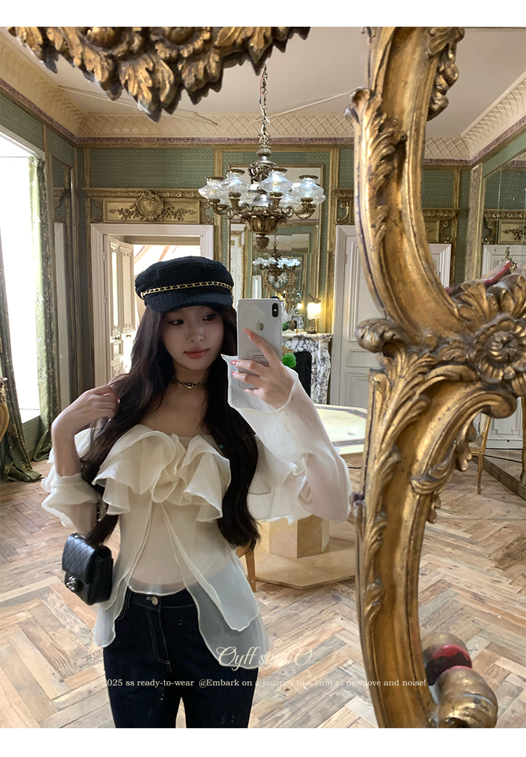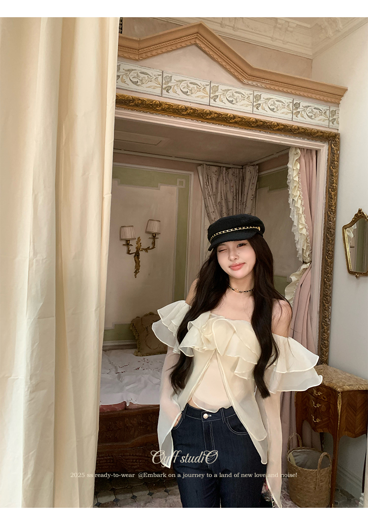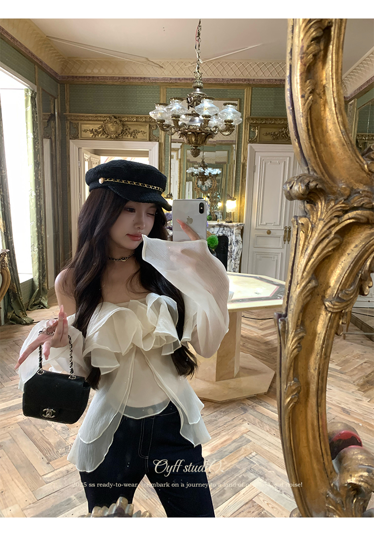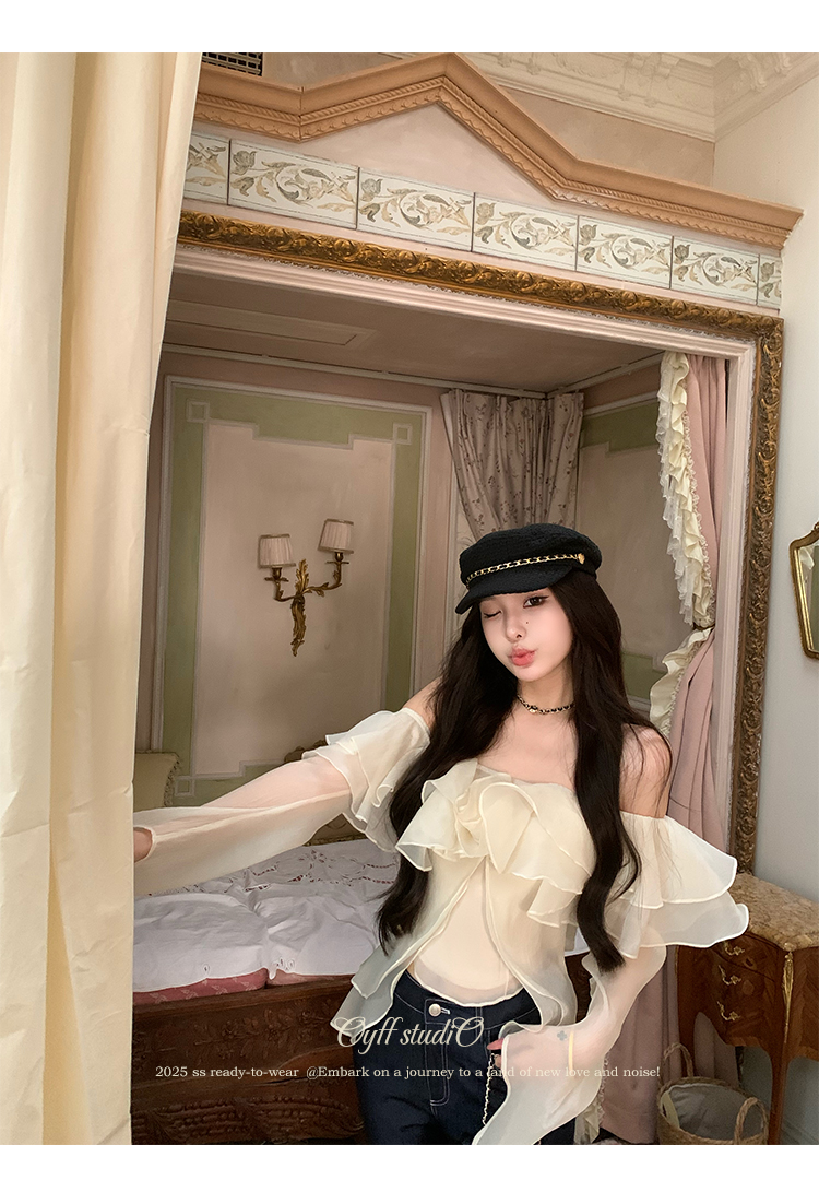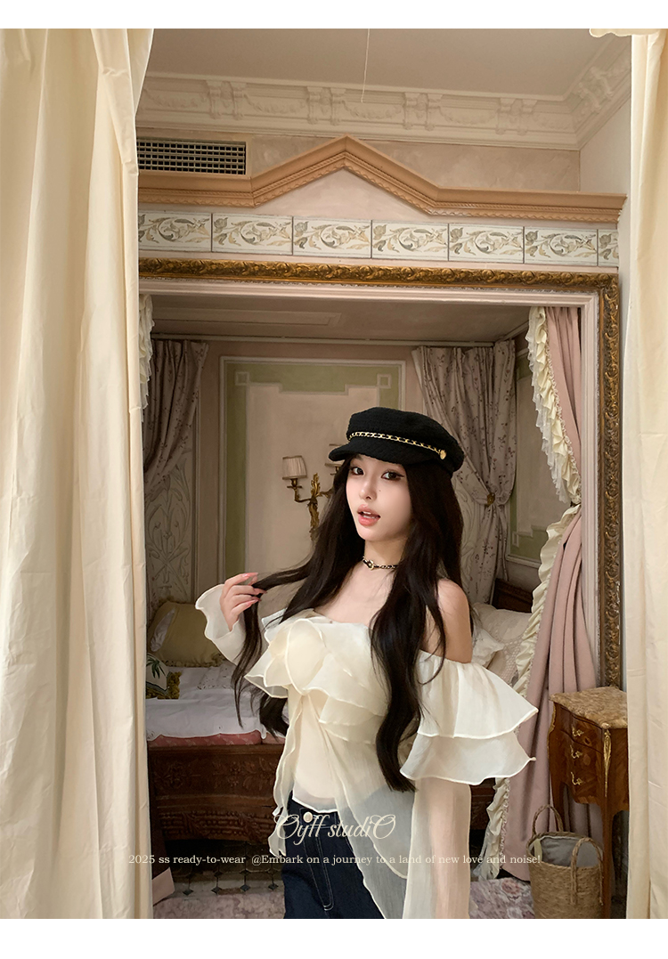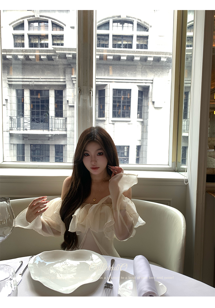 ①字肩 荷叶边把仙女氛围感从云端拽入日常