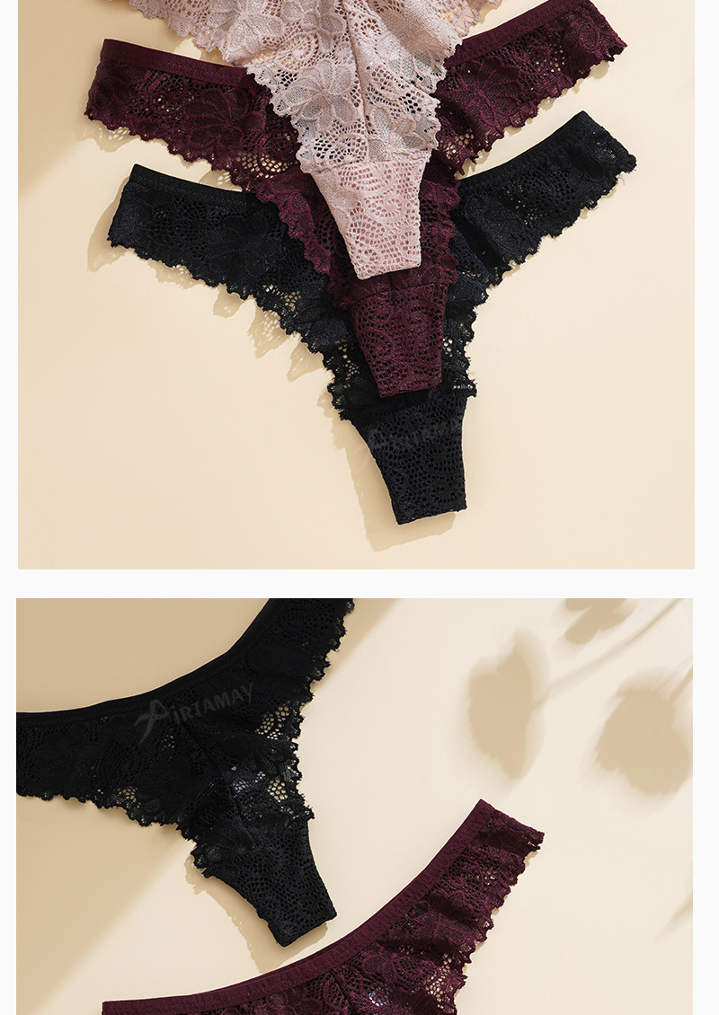 4 Pieces - Sexy Full Lace Hollow-Out Thong Panties for Women, Breathable, Seamless, Sports Yoga, Plus Size T-Pants for Chubby Girls 100kg