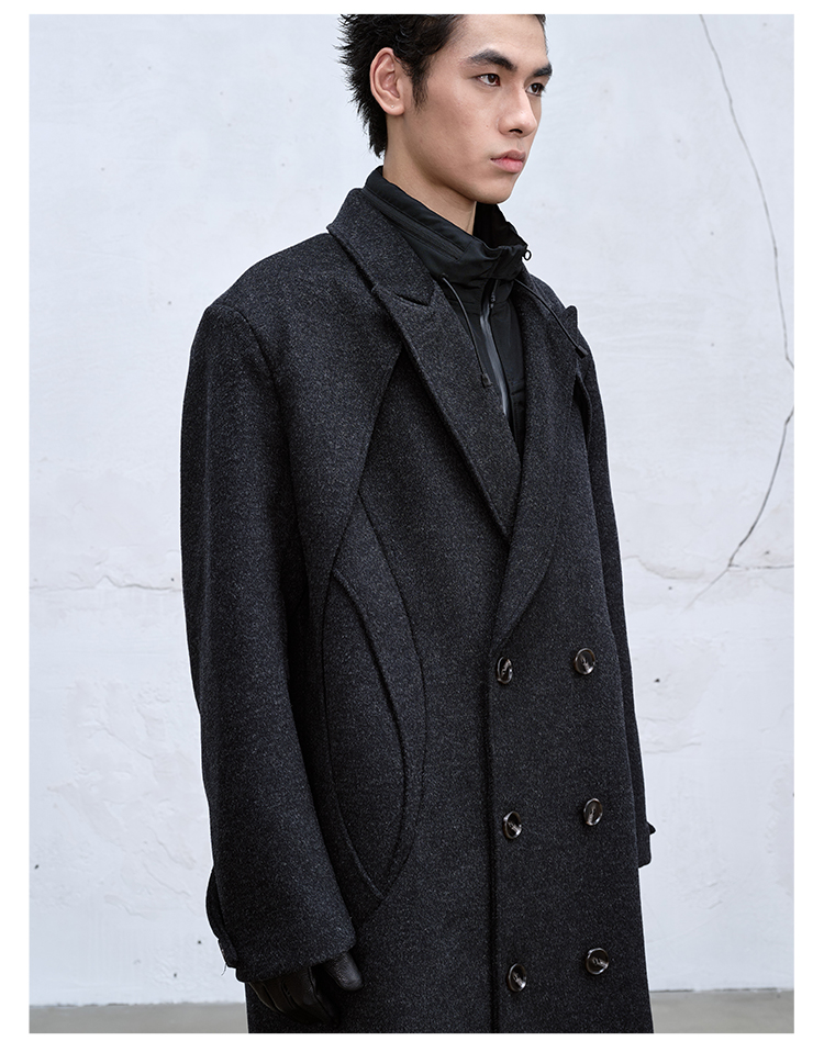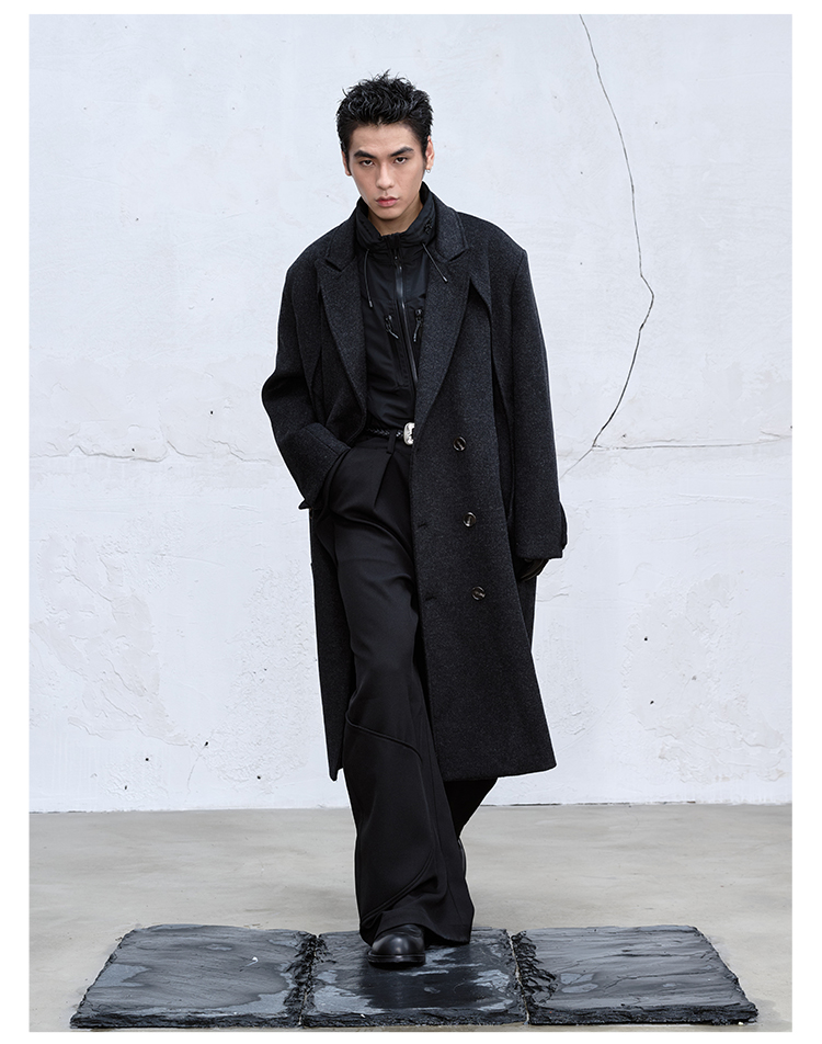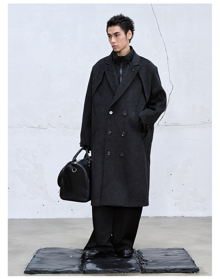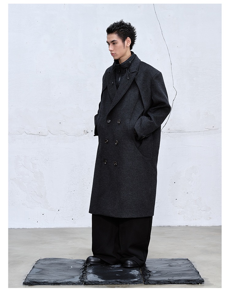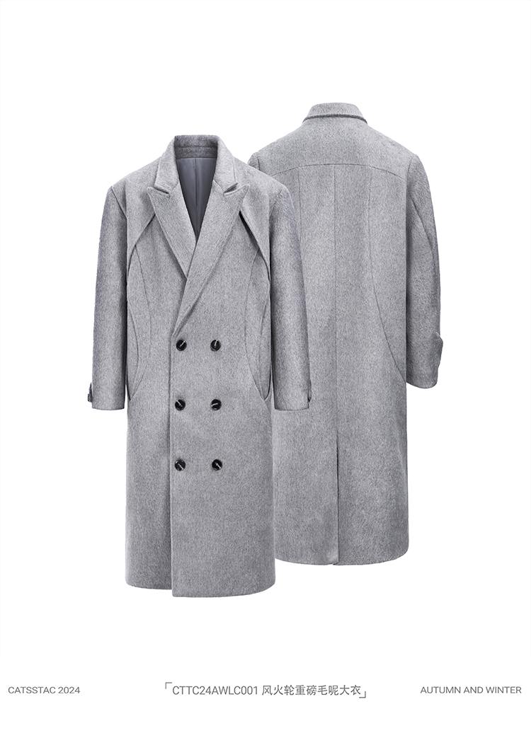 Catsstac Heavy Wool Coat for Men, Autumn and Winter, Thickened, High-End Design, Trench Coat, Woolen Jacket