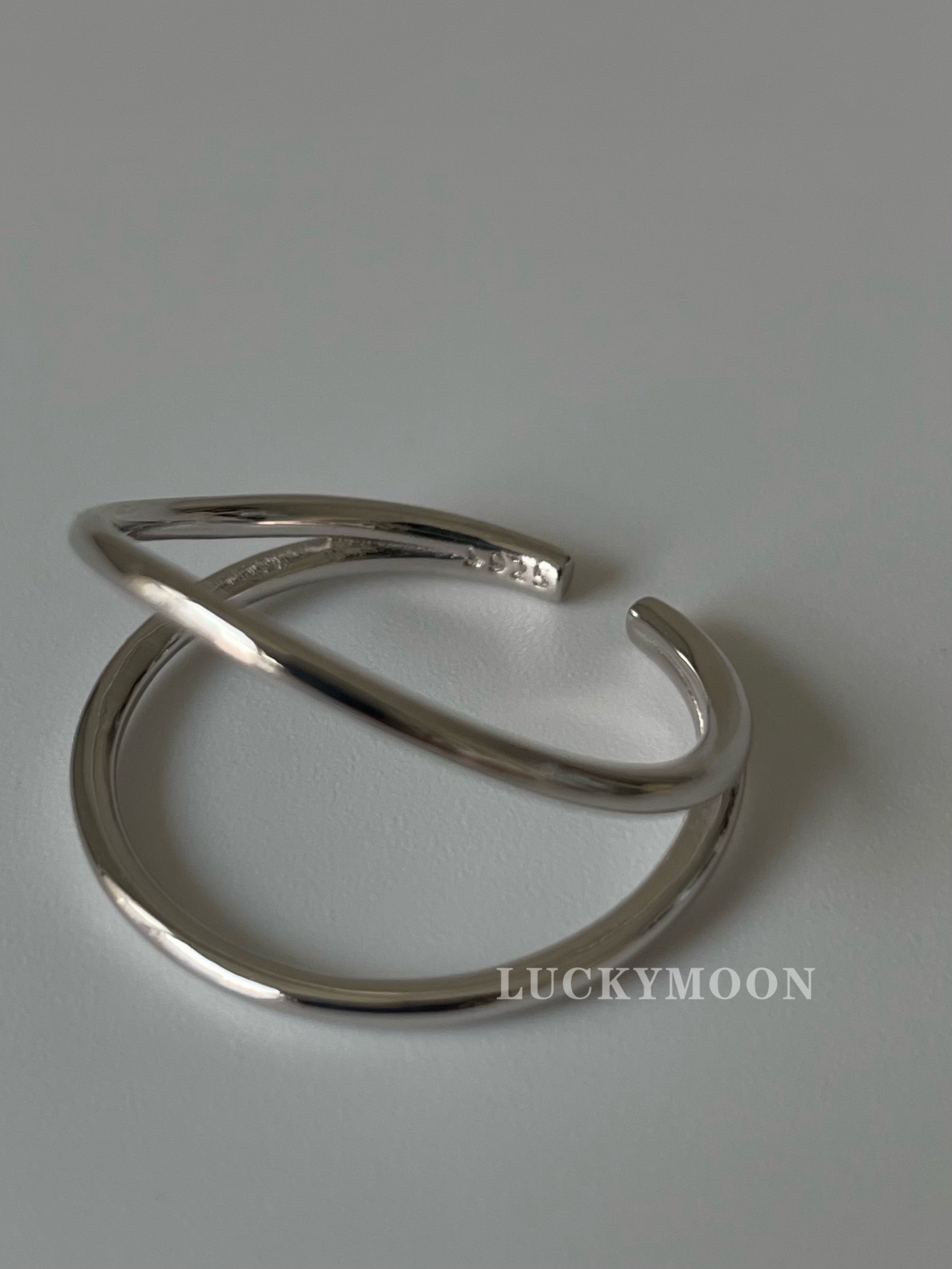 Luckymoon Minimalist Glossy Double-Layered Thin Line Open Ring S925 All-Over Sterling Silver R182